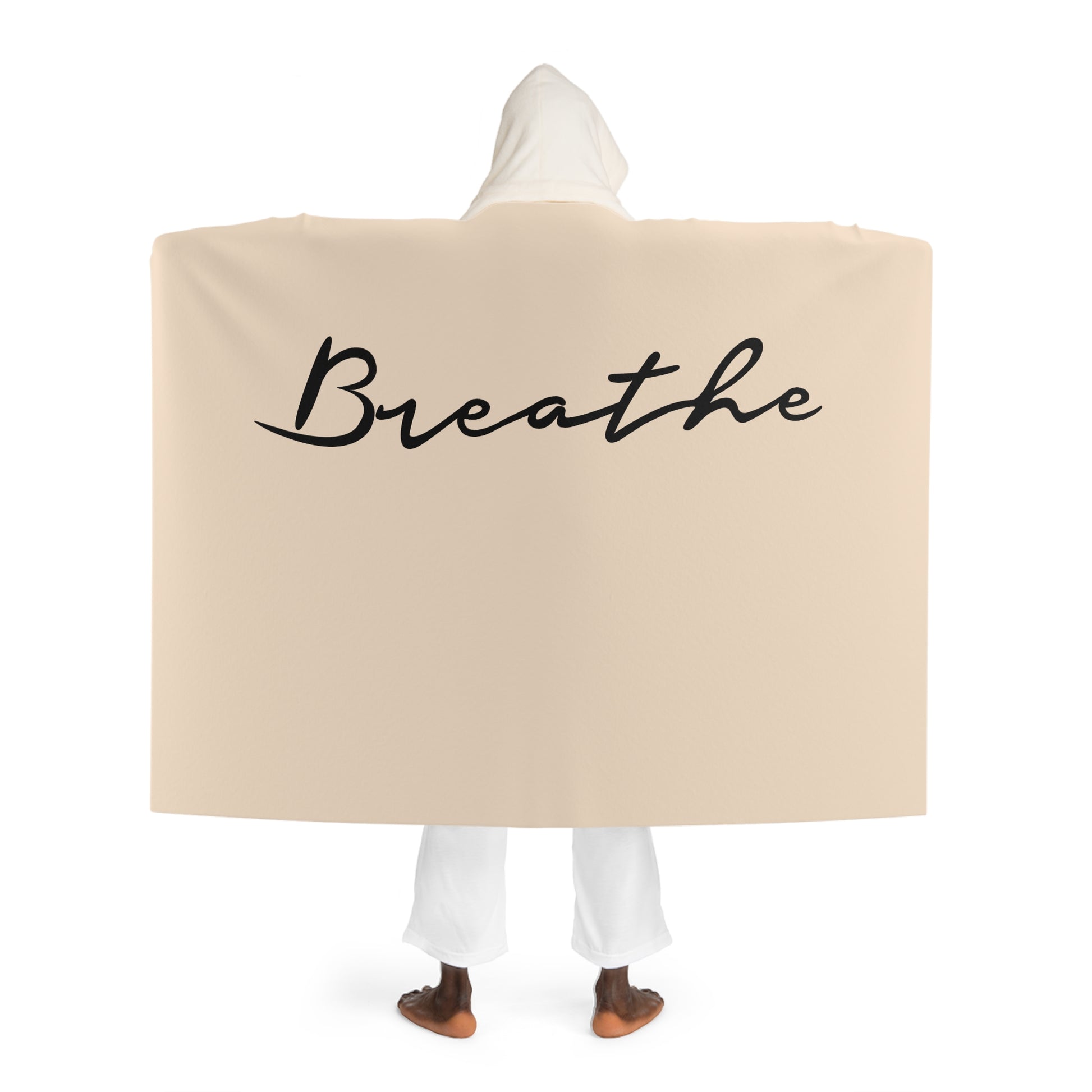 BREAHTE YOGA DECKE • Kapuzen Kuscheldecke Beige Creme • Wohndecke Sherpa 130cm x 180cm
