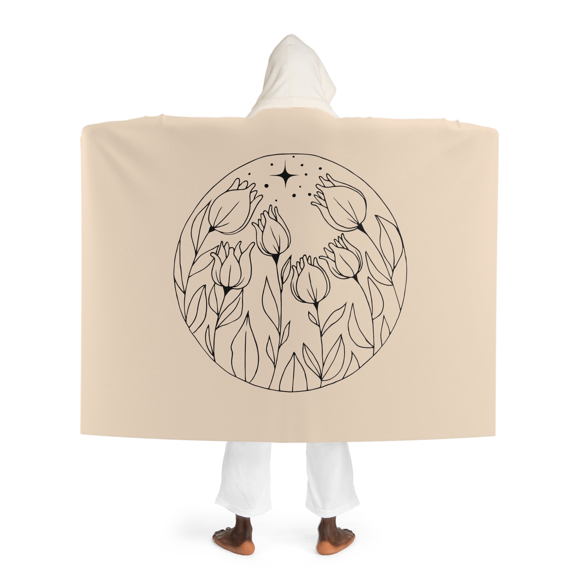 TULPEN UNTER STERNENHIMMEL • Kapuzen Kuscheldecke Beige Creme • Wohndecke Sherpa 130cm x 180cm