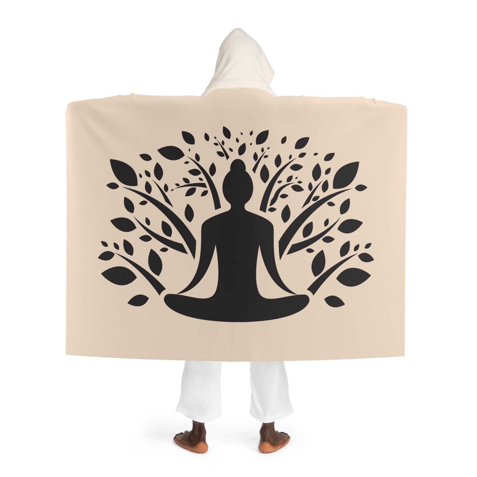 YOGA MEDITATION BAUM • Kapuzen Kuscheldecke Beige Creme • Wohndecke Sherpa 130cm x 180cm