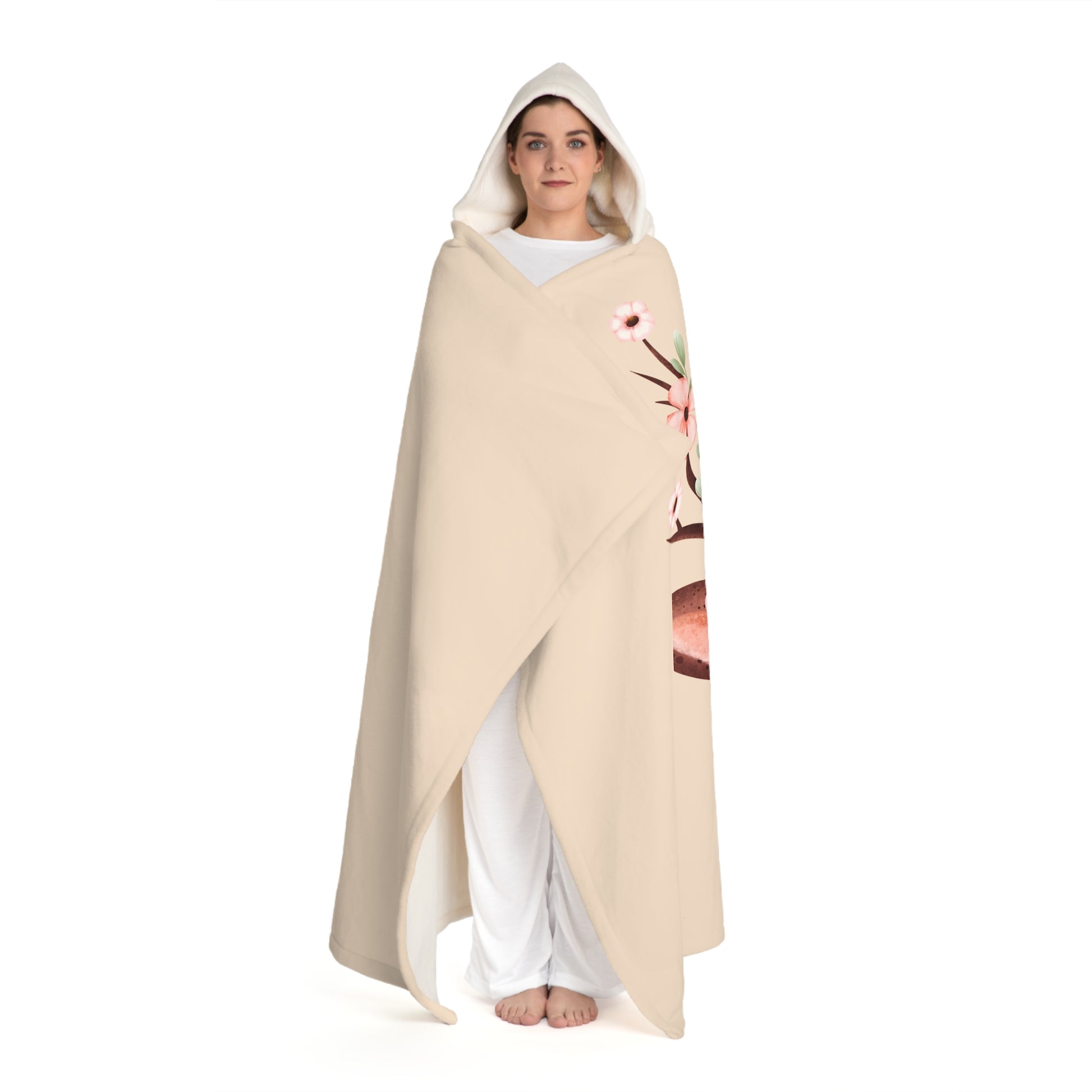 HIRSCH DECKE - REHKIDS MIT BLUMEN • Kapuzen Kuscheldecke Beige Creme • Wohndecke Sherpa 130cm x 180cm
