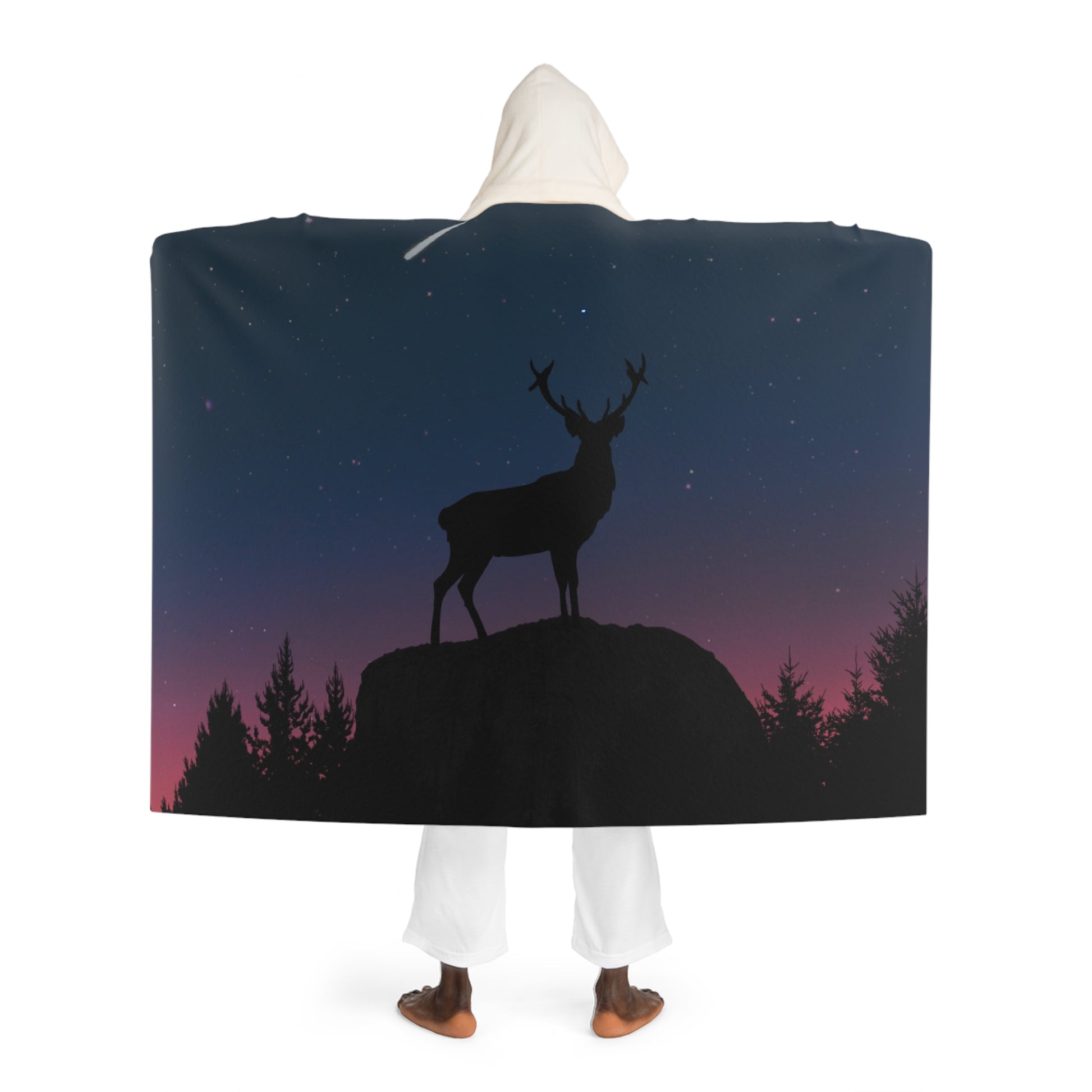 HIRSCH GEWEIH STERNSCHNUPPE • Kapuzen Kuscheldecke Beige Creme • Wohndecke Sherpa 130cm x 180cm