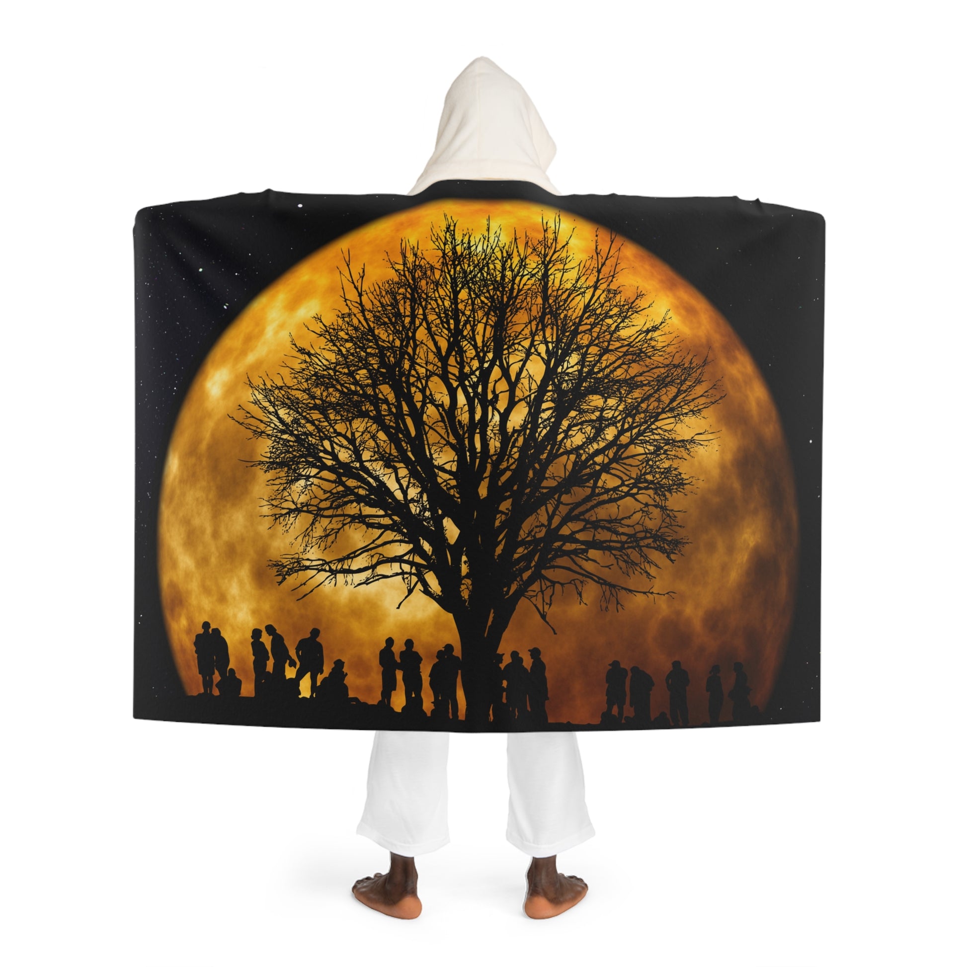 MOND TRIBE BAUM KREIS • Kapuzen Kuscheldecke Beige Creme • Wohndecke Sherpa 130cm x 180cm
