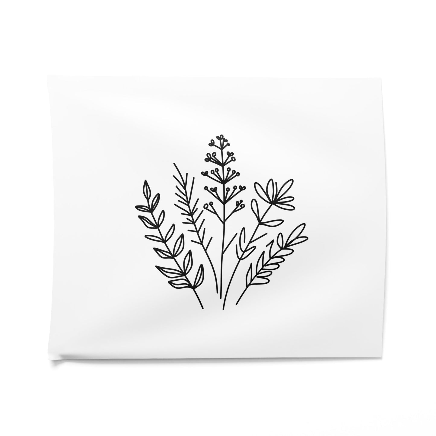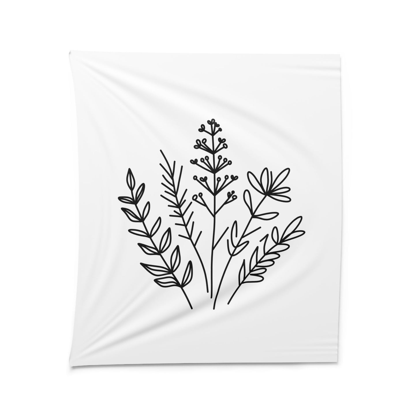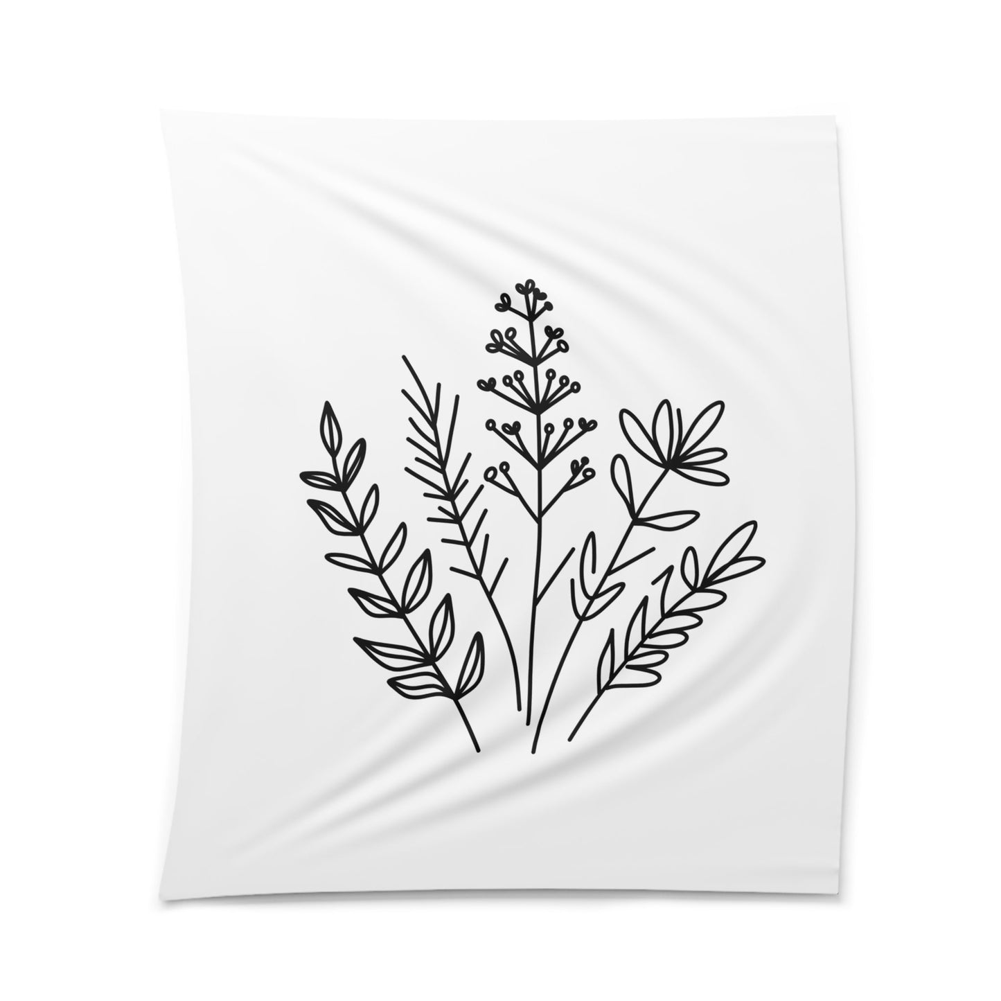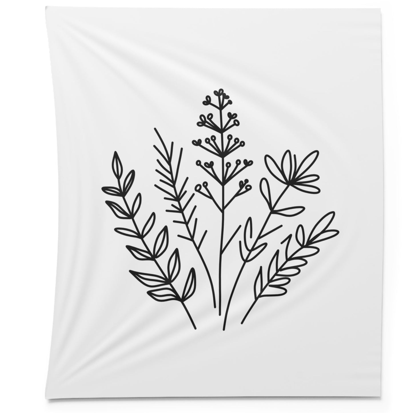 BLUMENSTRAUSS ZEICHNUNG • Wandtuch • Wandttepich Schwarz Weiß • Wanddekor in v. Größen bis XXL