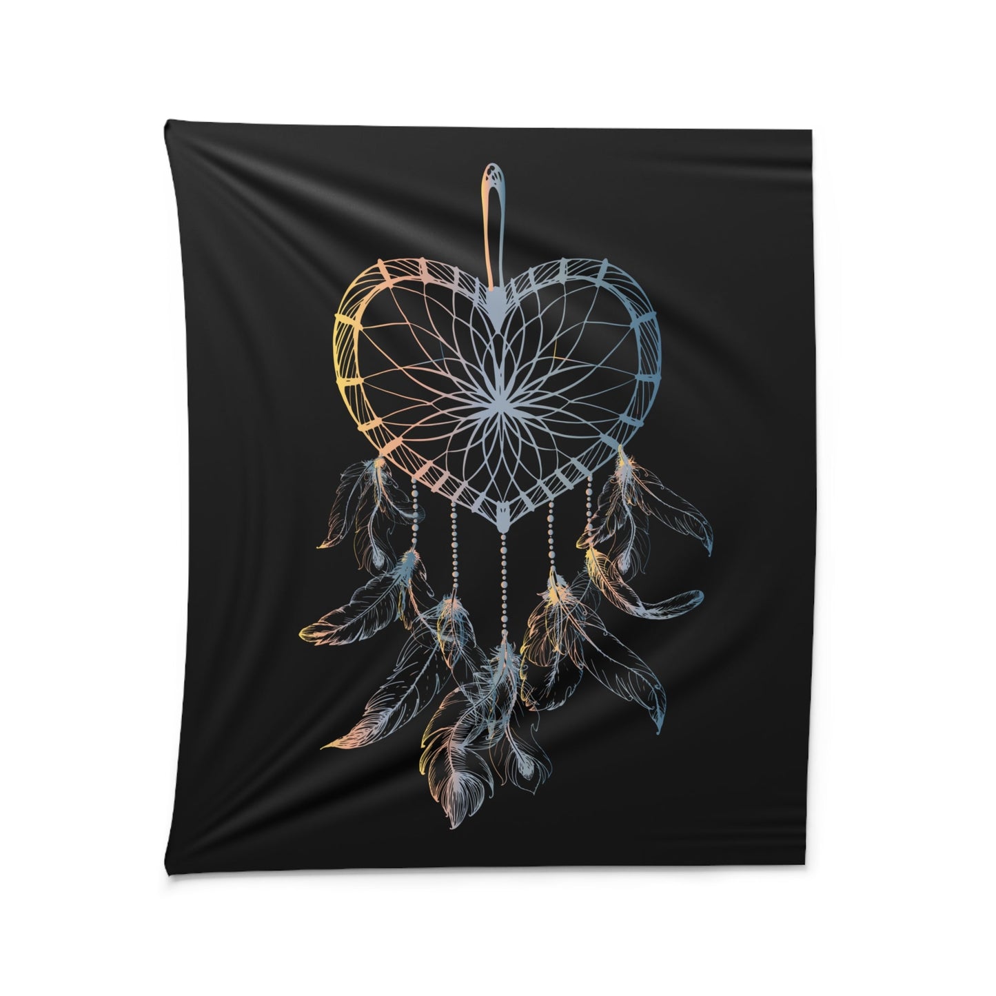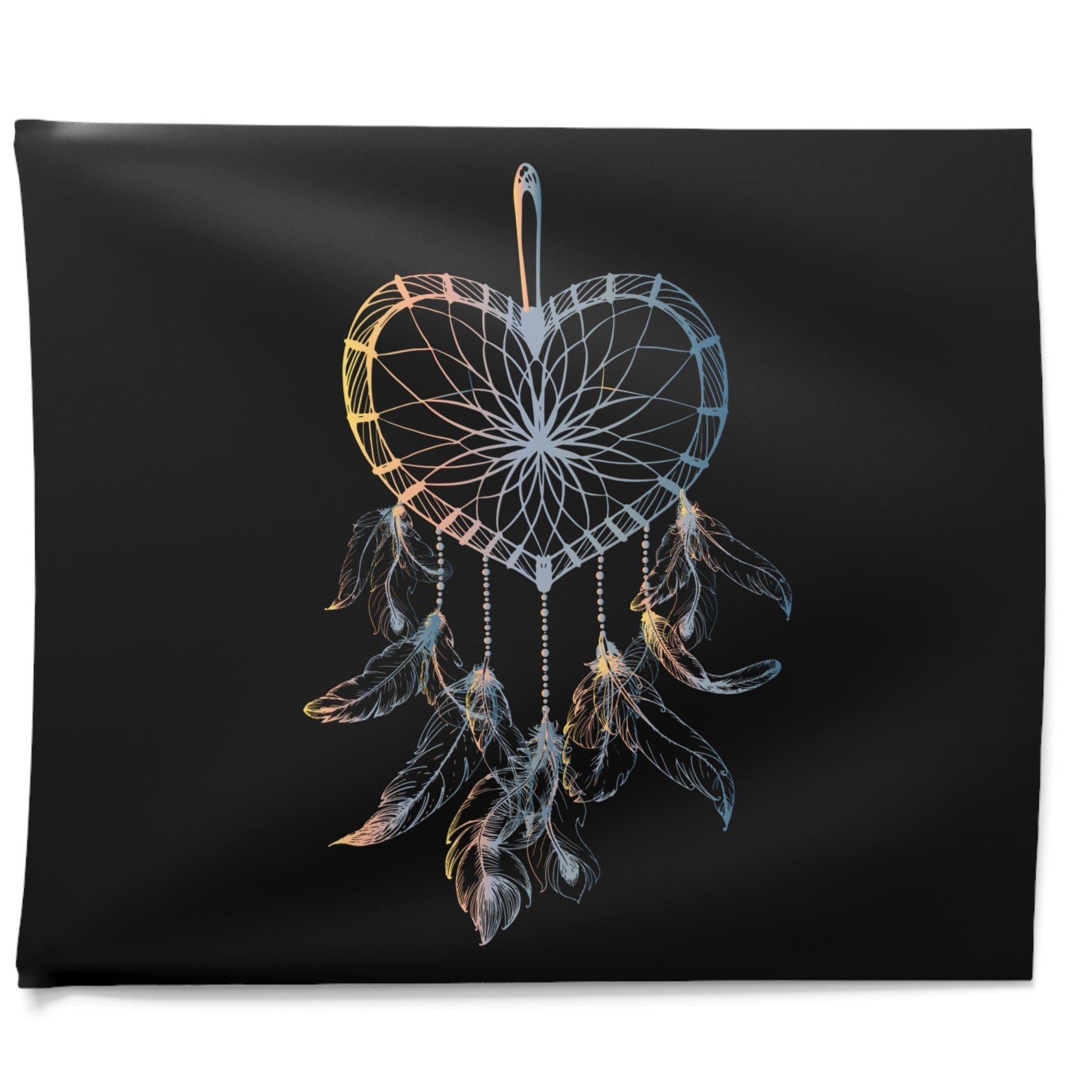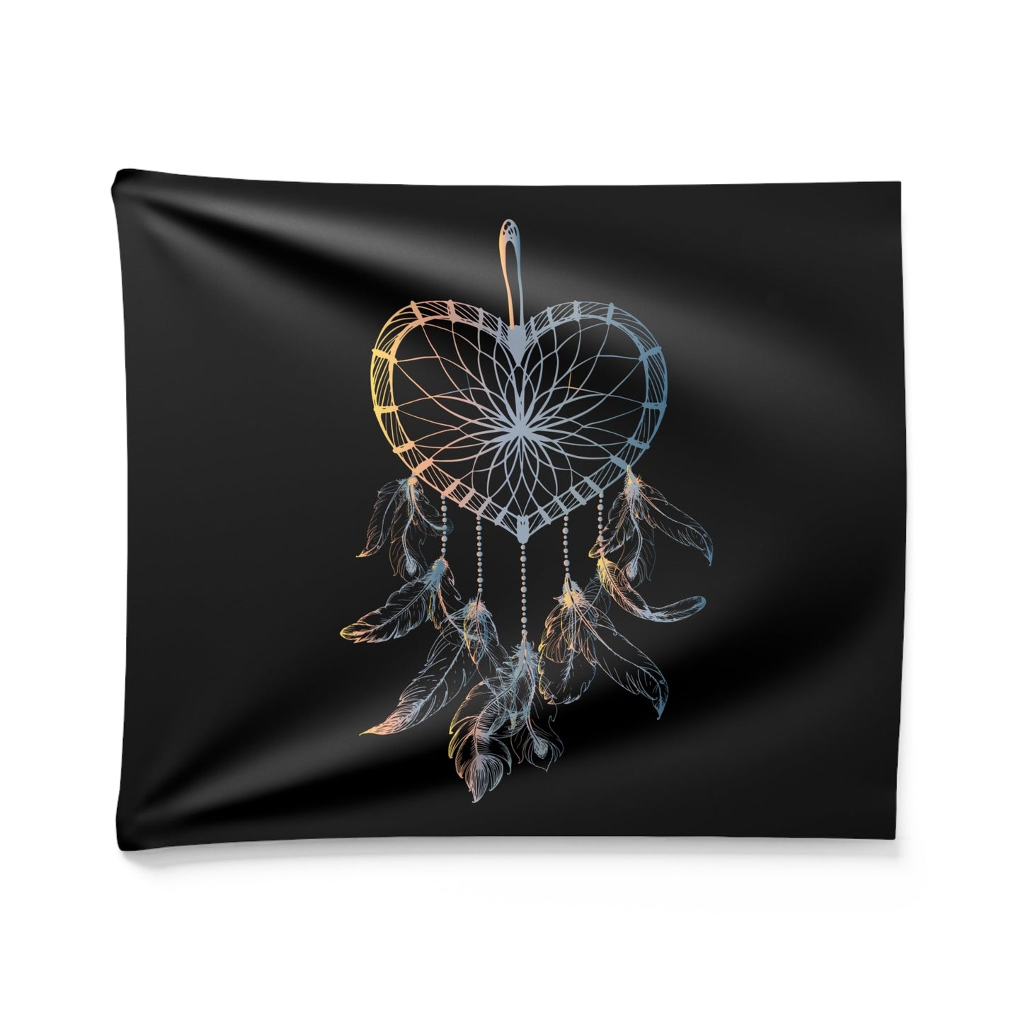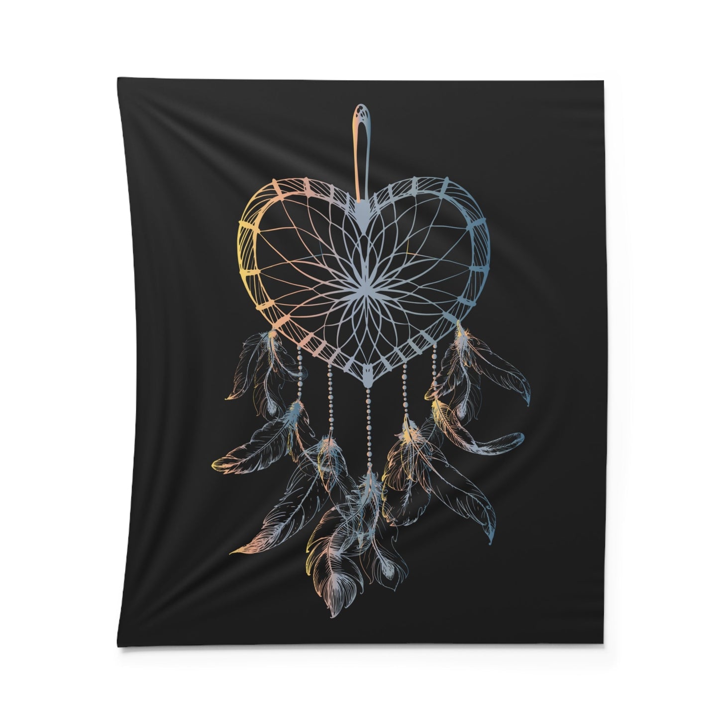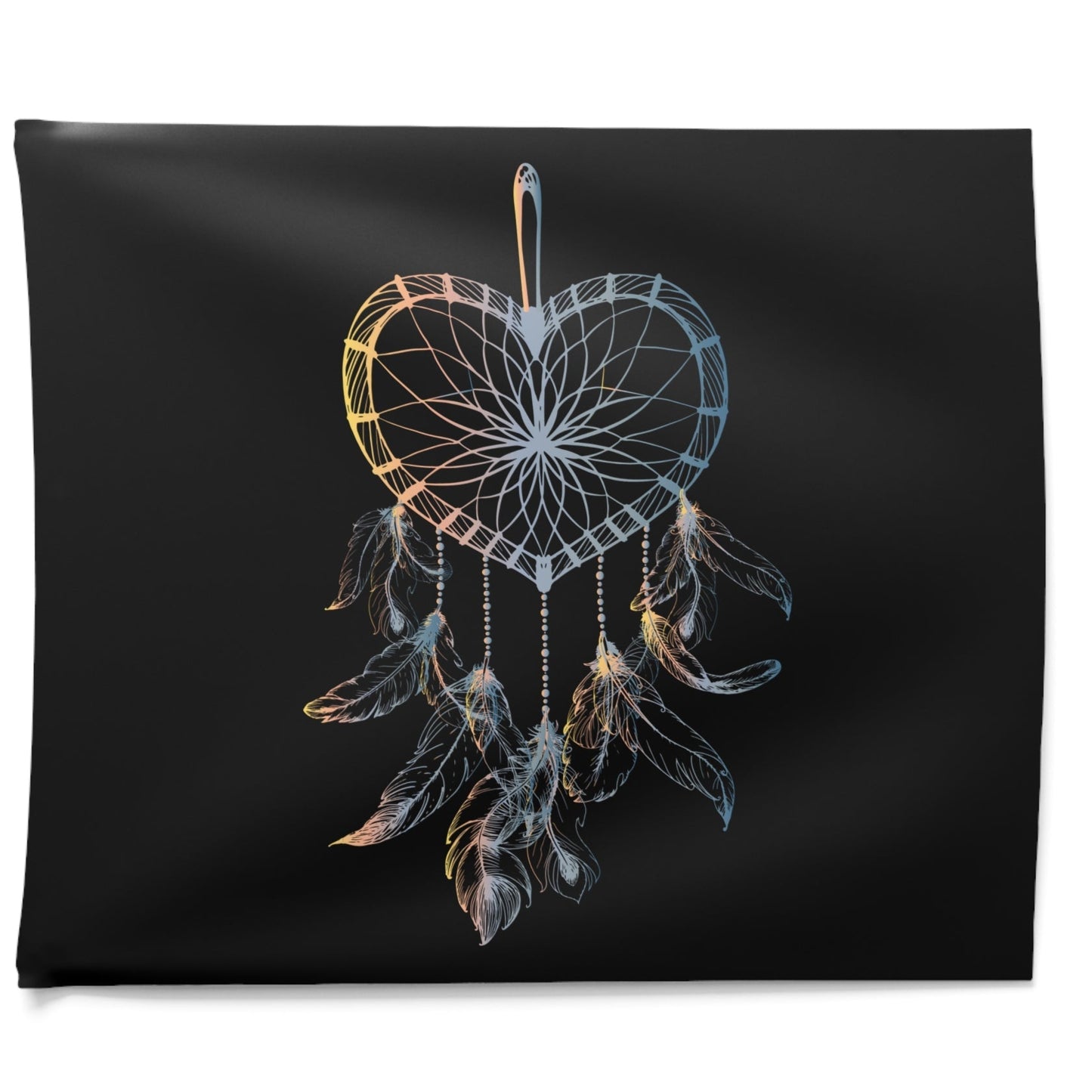 TRAUMFÄNGER HERZFORM INDIANERFERDERN • Wandtuch • Wandttepich Schwarz Weiß • Wanddekor in v. Größen bis XXL