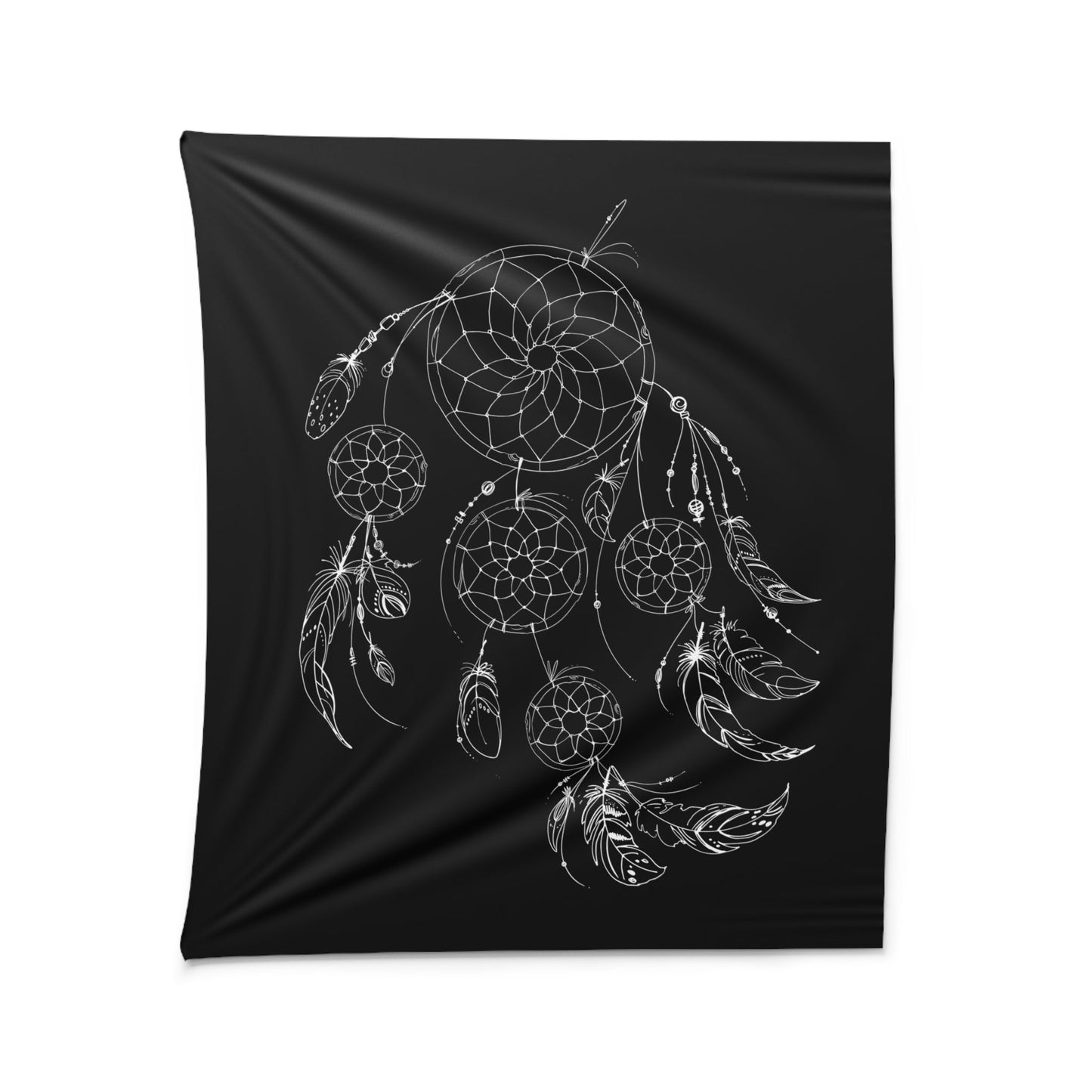 TRAUMFÄNGER SPIRITUELLES MOTIV • Wandtuch • Wandttepich Schwarz Weiß • Wanddekor in v. Größen bis XXL