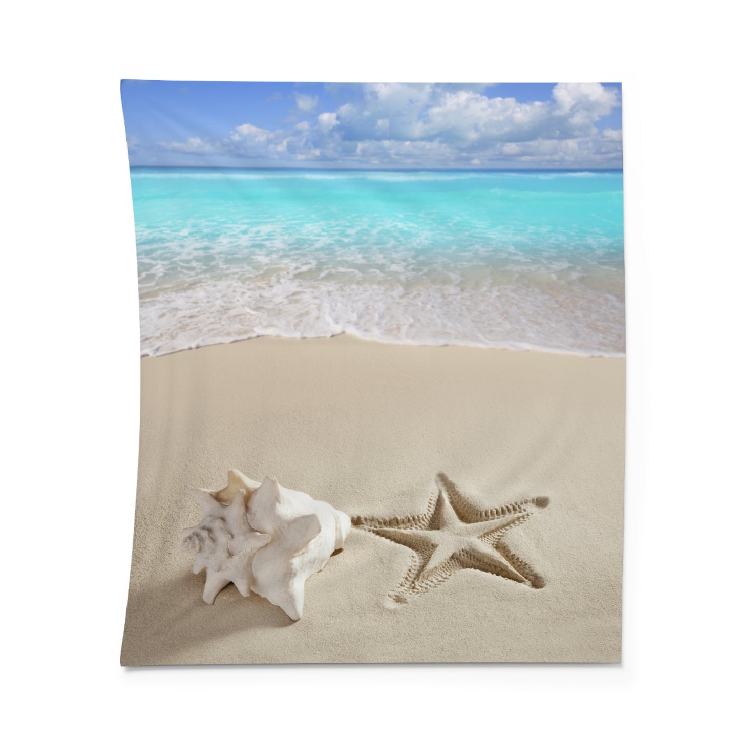 KARIBIK STRAND MEER TÜRKIS SEESTERN MUSCHEL • Urlaubsmotiv • Wandtuch • Wandttepich • Wanddekor in v. Größen bis XXL