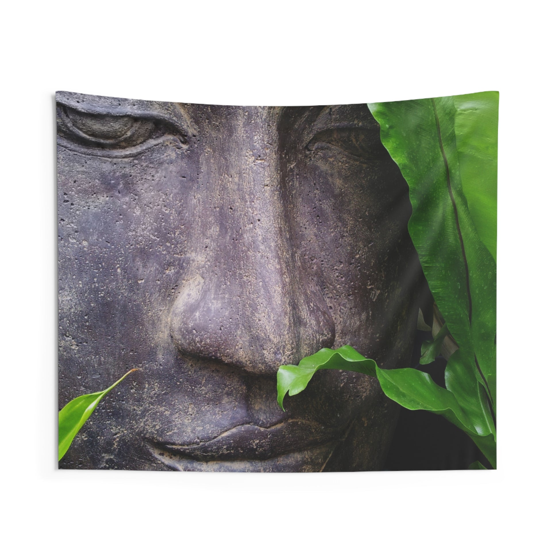 BUDDHA FIGUR VOR GRÜNEN BLÄTTERN • Wandtuch • Wandttepich • Wanddekor in v. Größen bis XXL