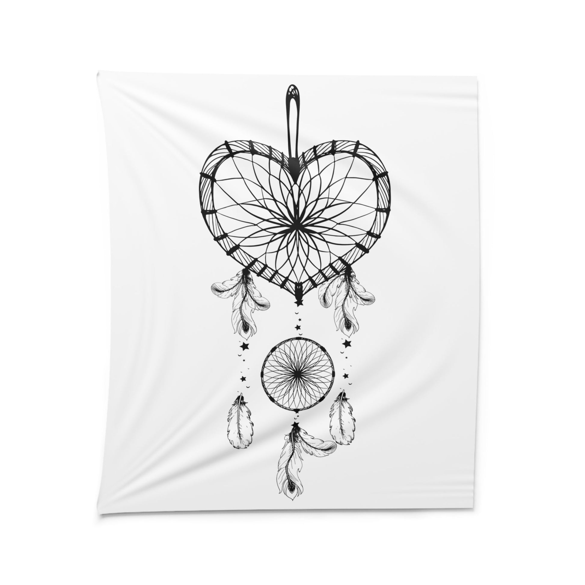 TRAUMFÄNGER HERZ FEDERN INDIANER • Wandtuch • Wandttepich Schwarz Weiß • Wanddekor in v. Größen bis XXL