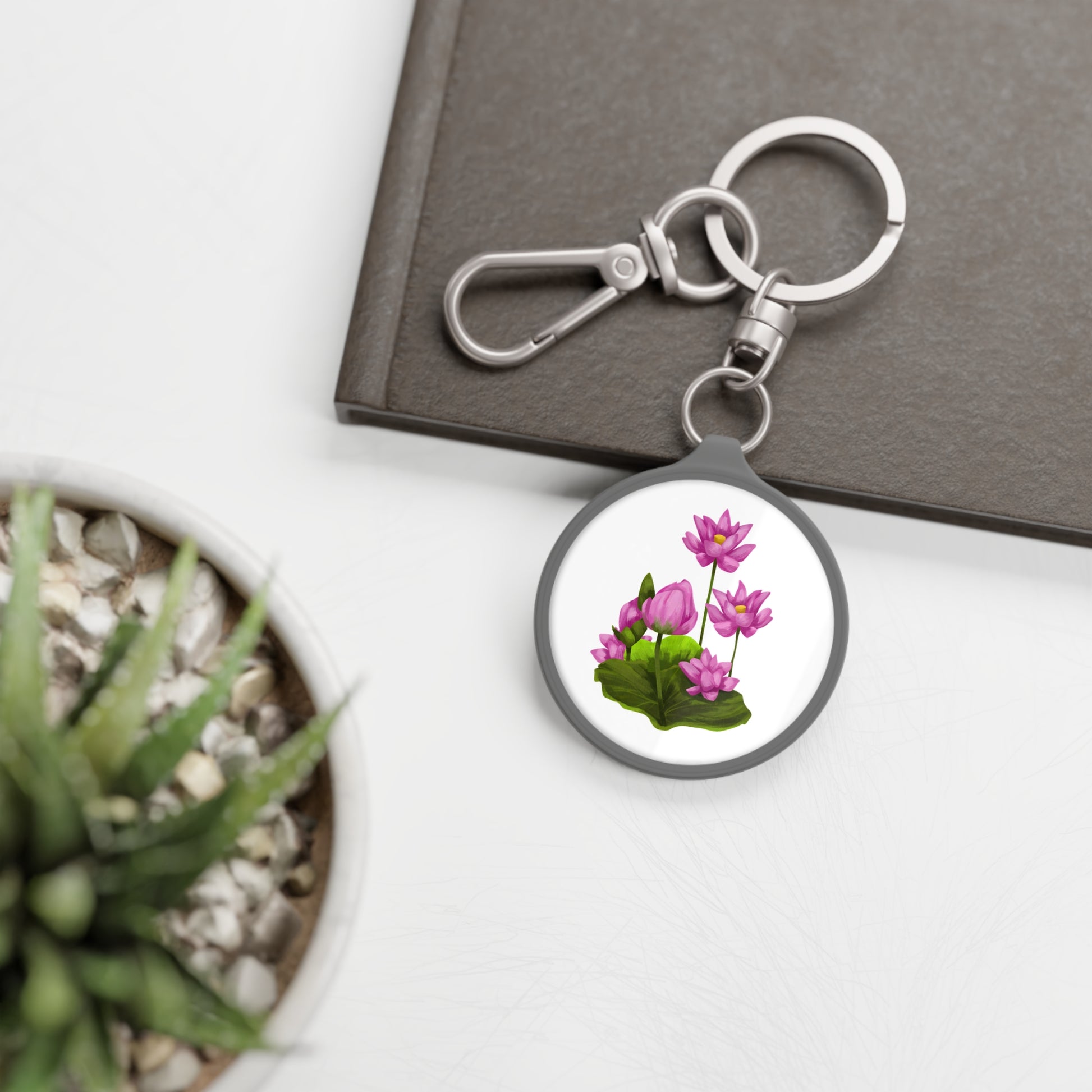 LOTUS BLUMEN • Edler Luxus Schlüsselanhänger mit Karabiner für Frauen & Männer