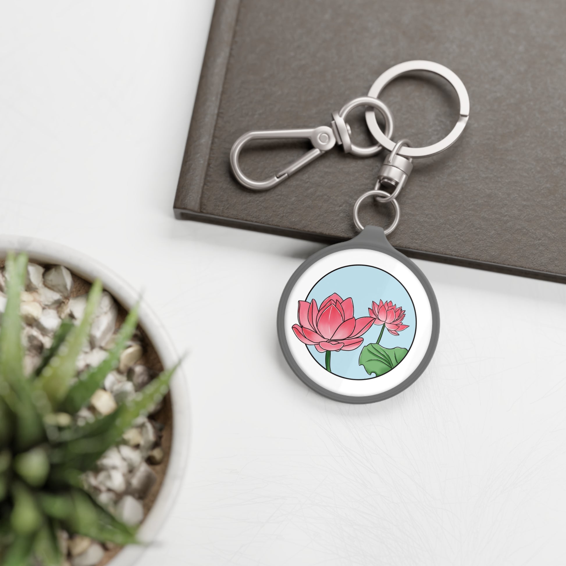 LOTUS BLUMEN ZEICHNUNG • Edler Luxus Schlüsselanhänger mit Karabiner für Frauen & Männer