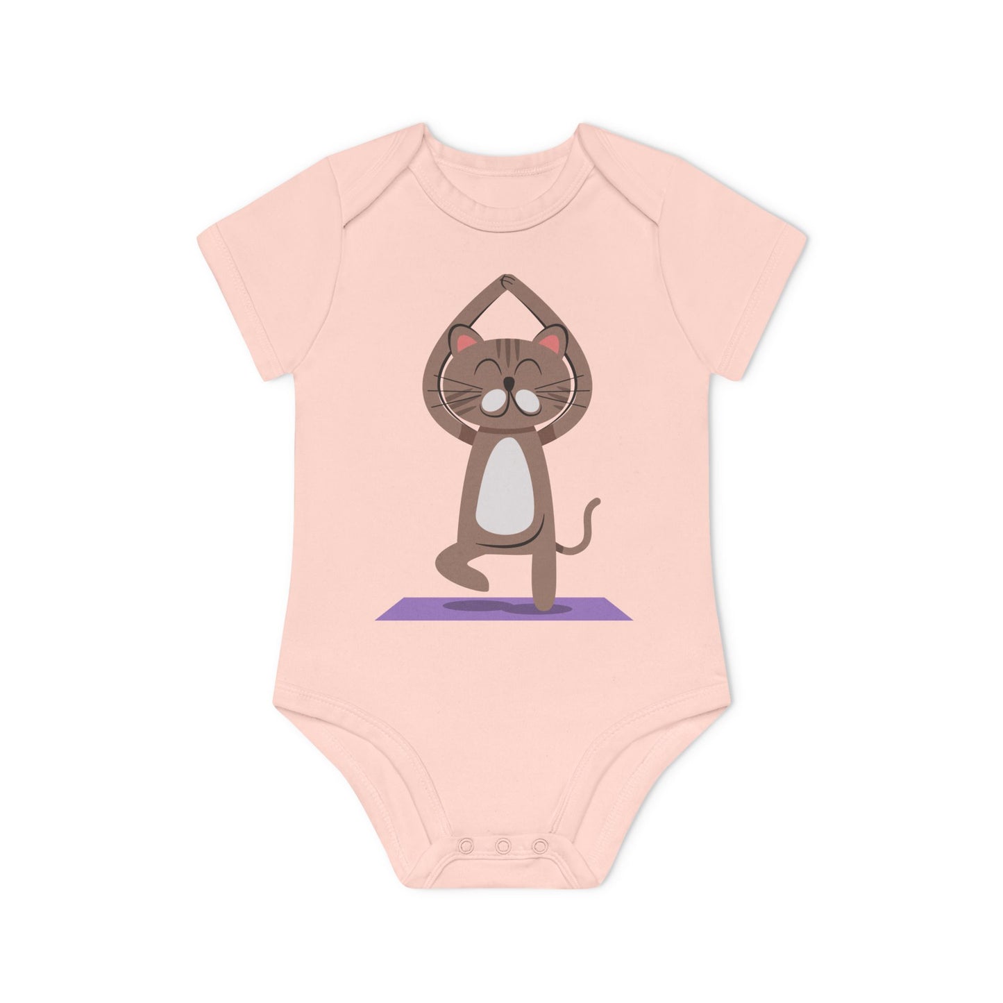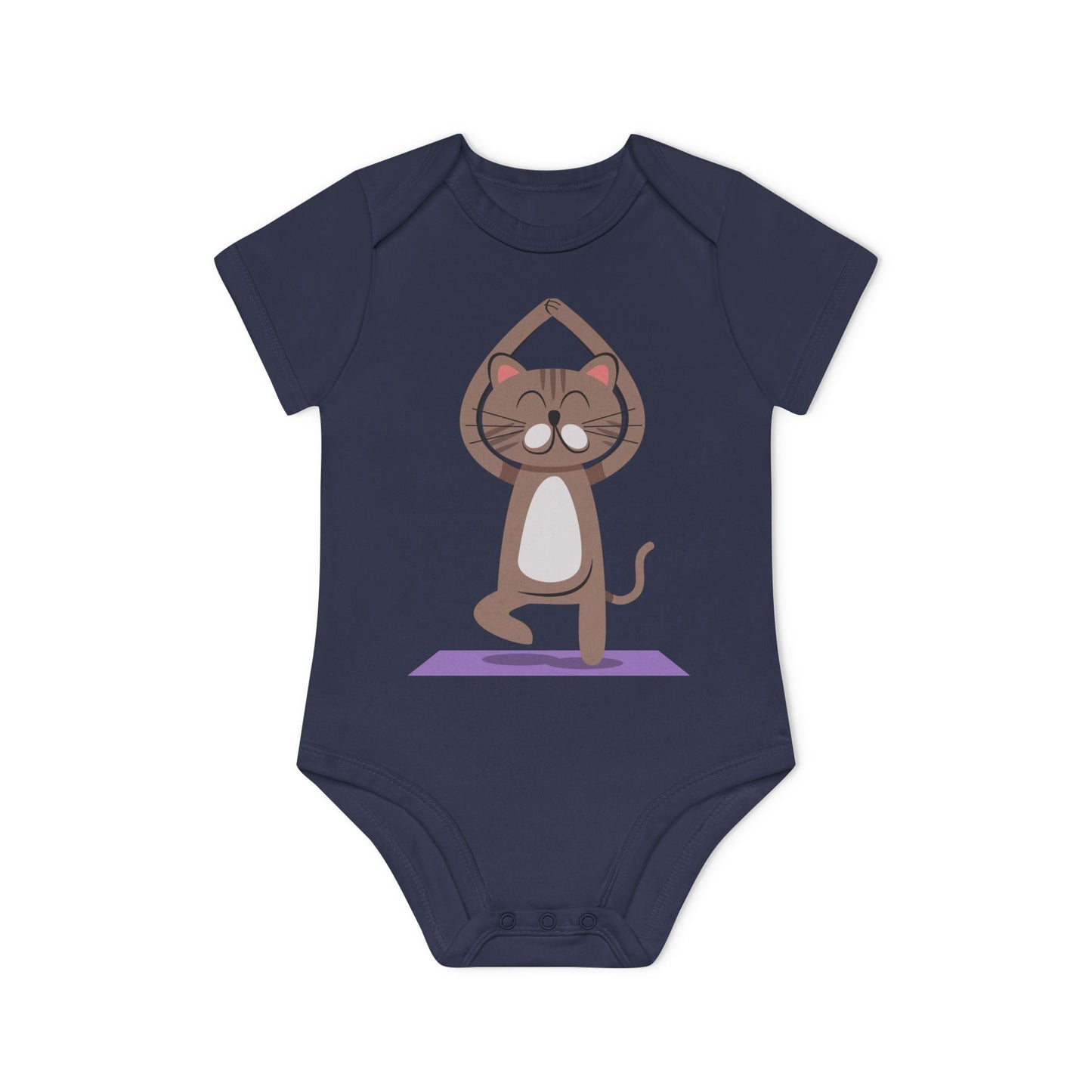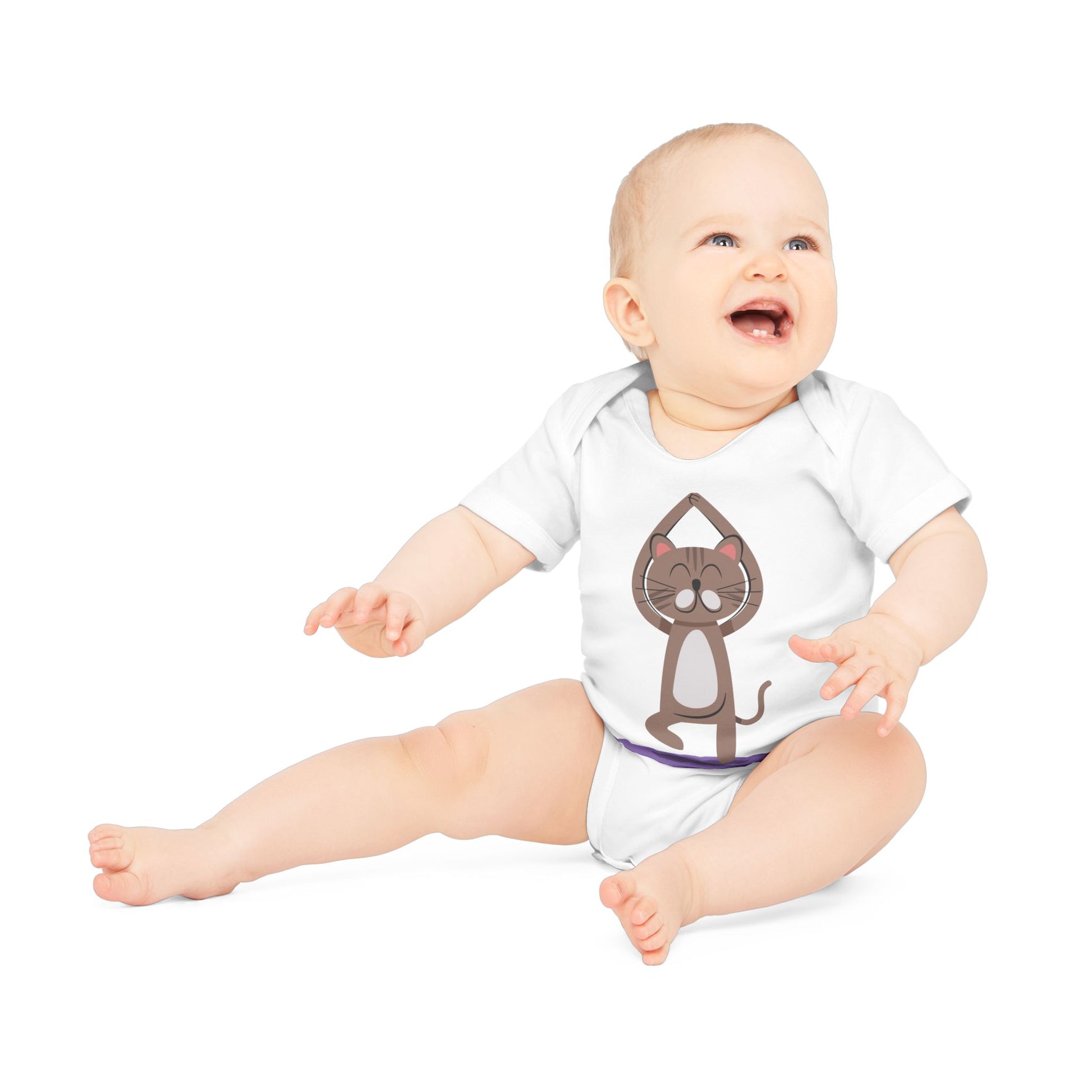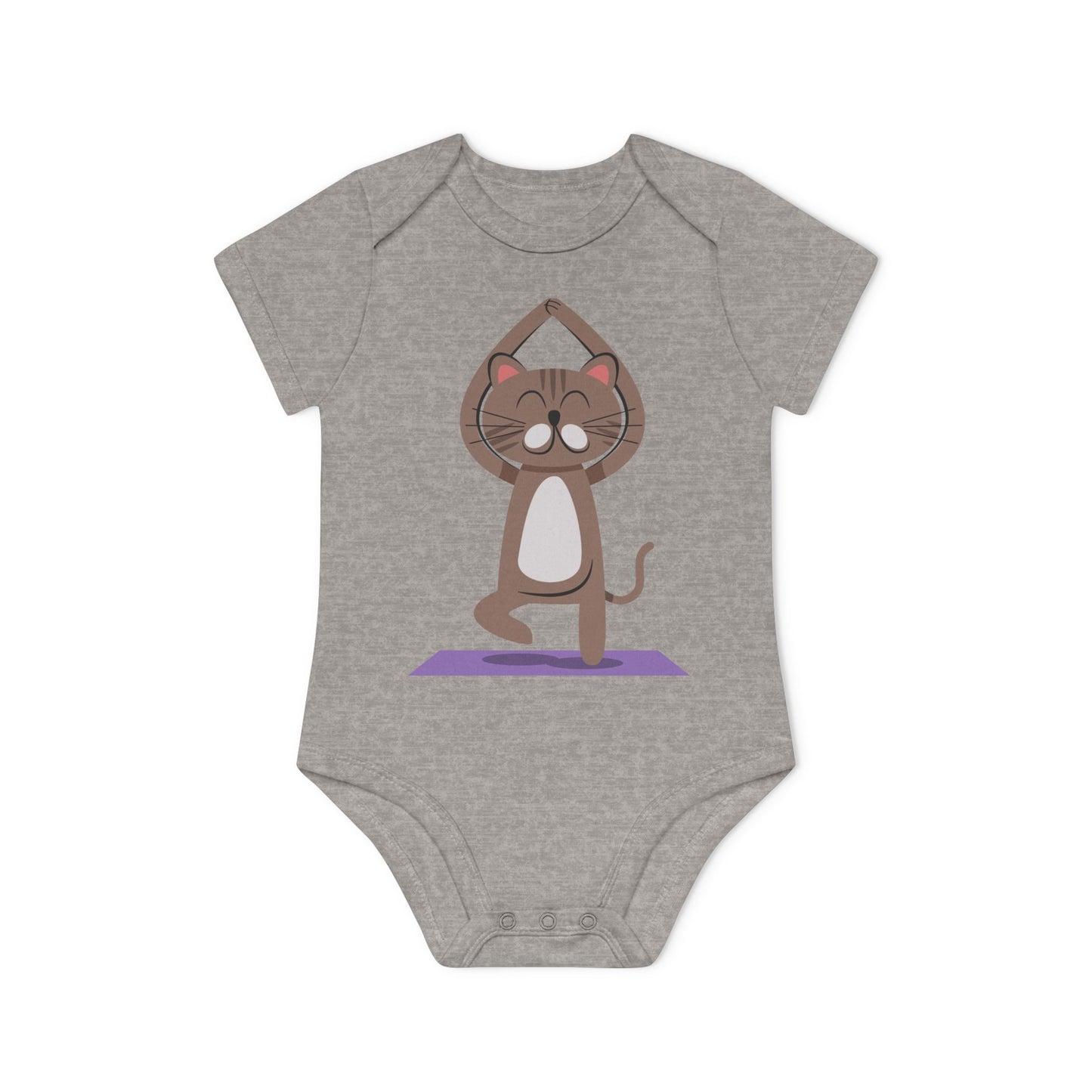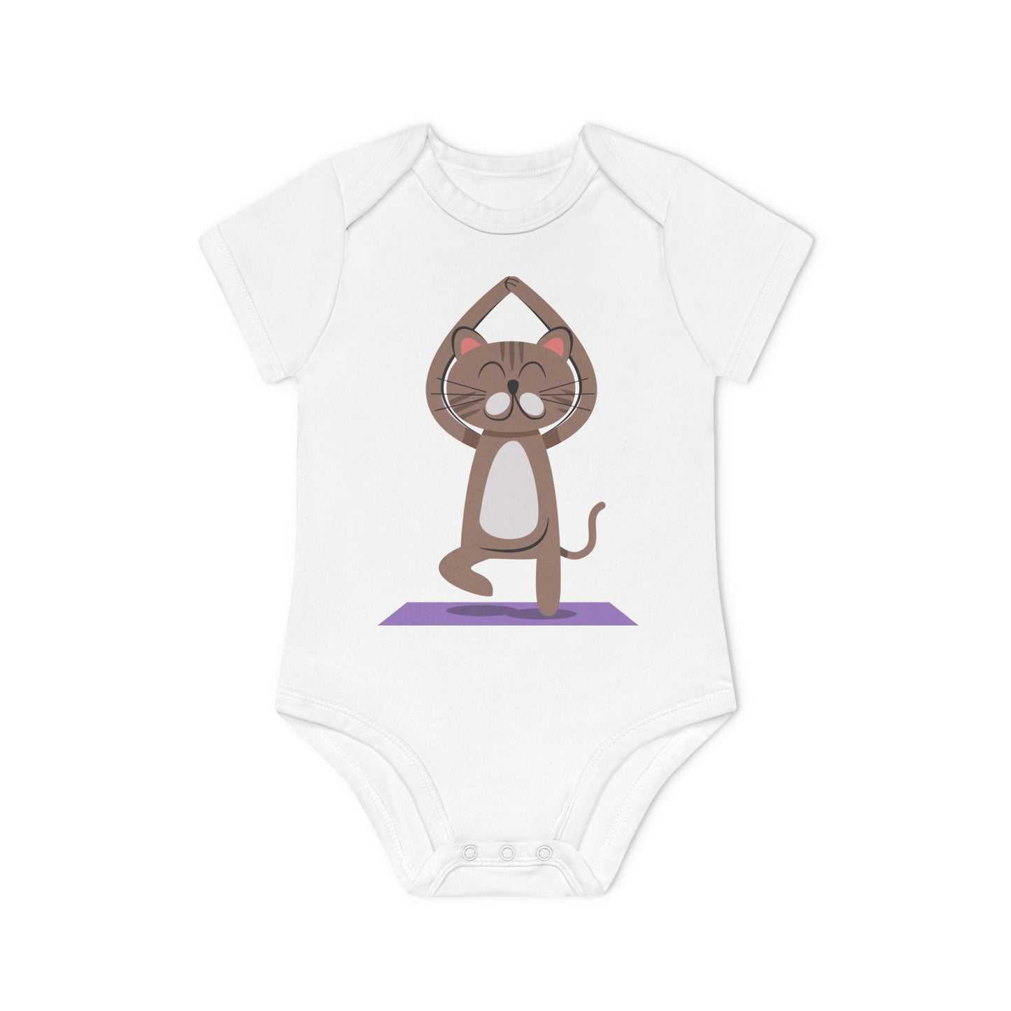 KATZE YOGA POSE BAUM TIERYOGA • Niedlich süßer Baby Body Kurzarm • Mädchen & Jungen • BIO Baumwolle 🌿