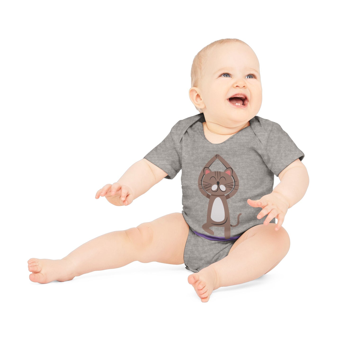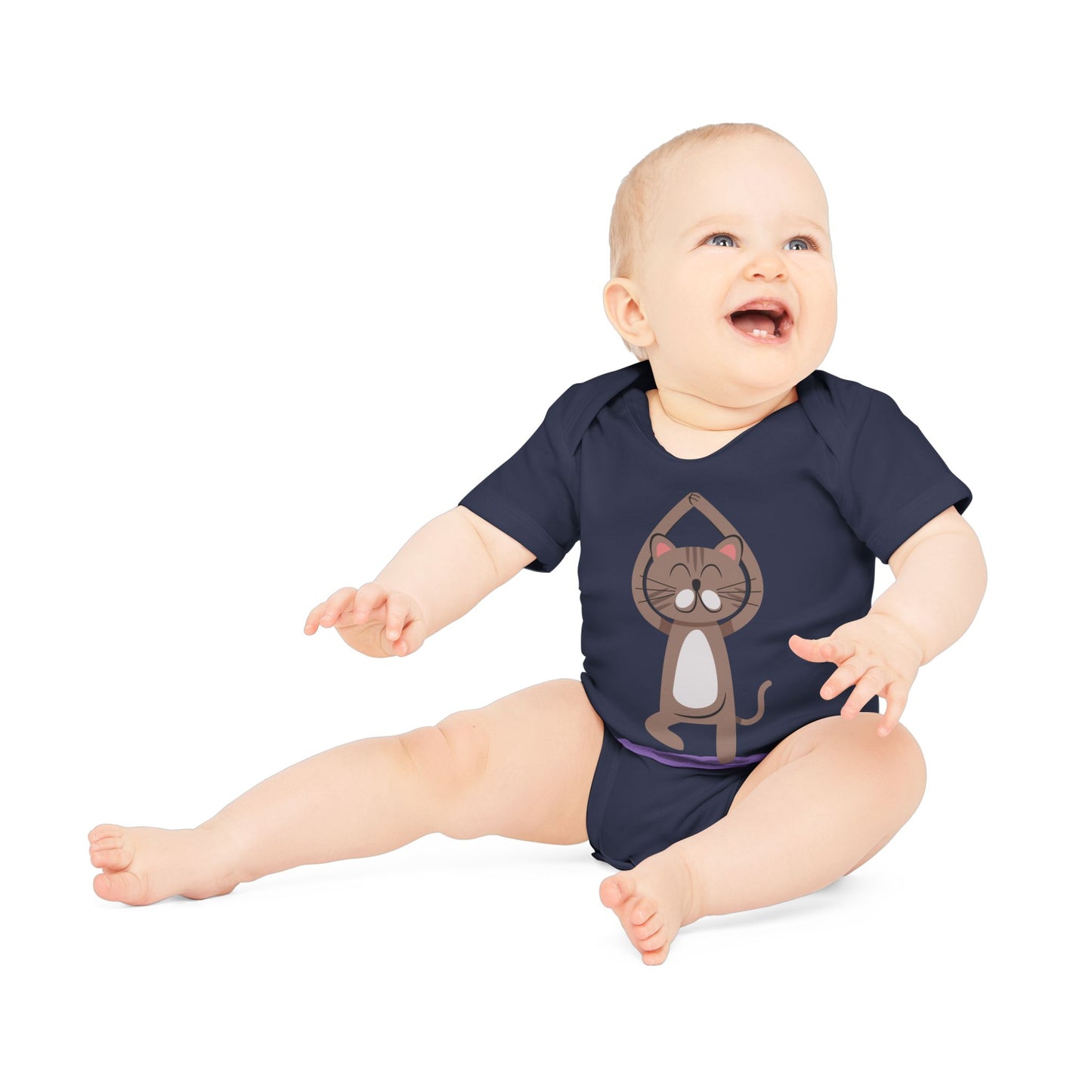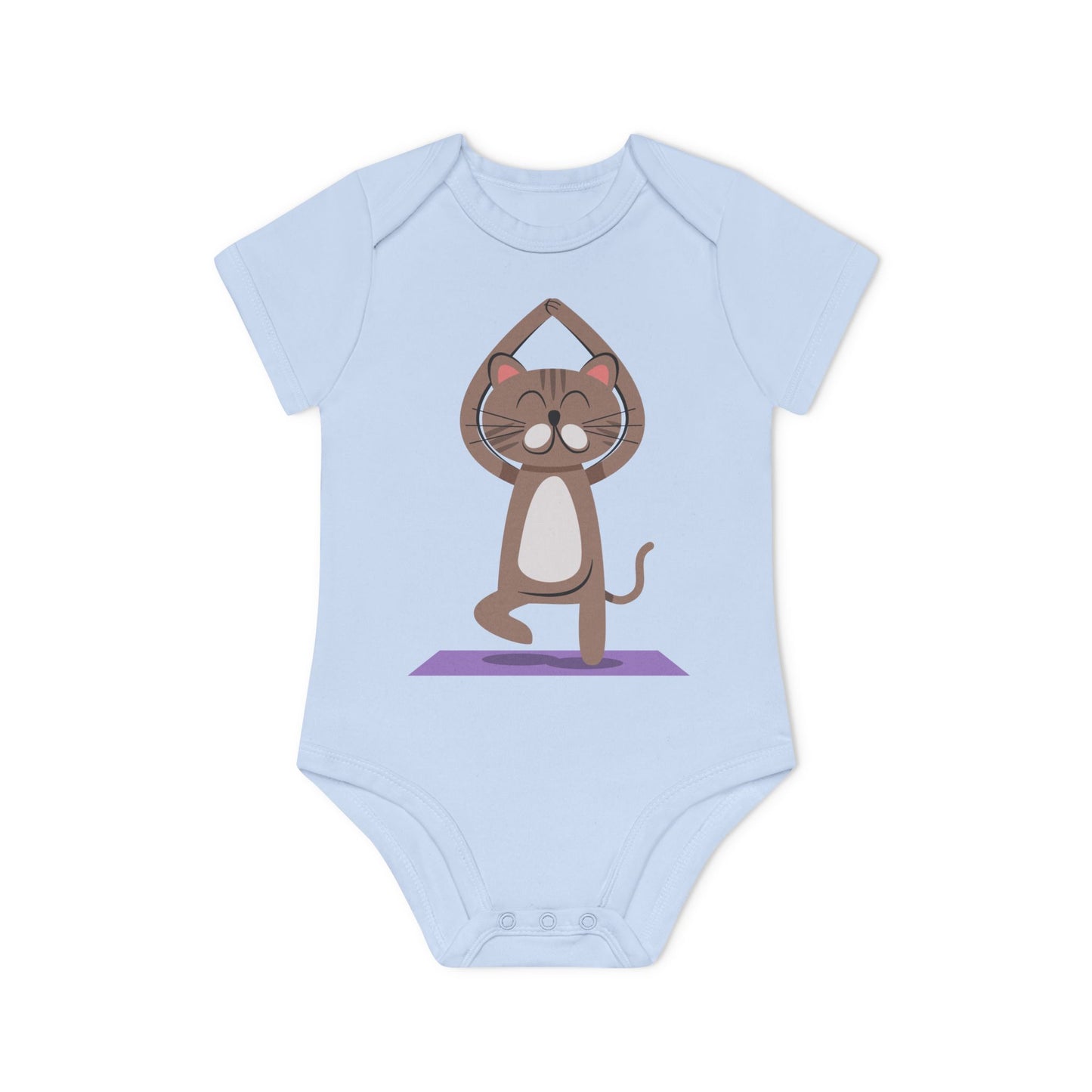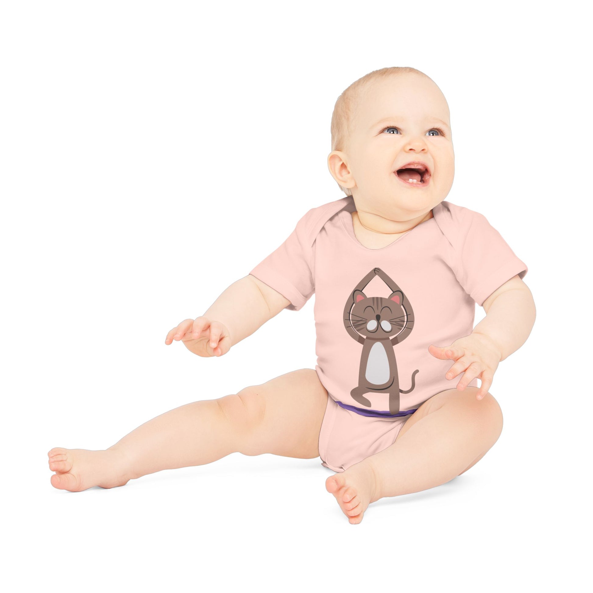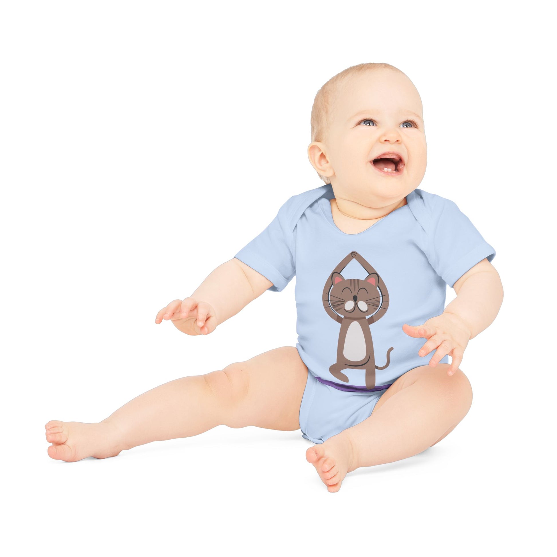 KATZE YOGA POSE BAUM TIERYOGA • Niedlich süßer Baby Body Kurzarm • Mädchen & Jungen • BIO Baumwolle 🌿