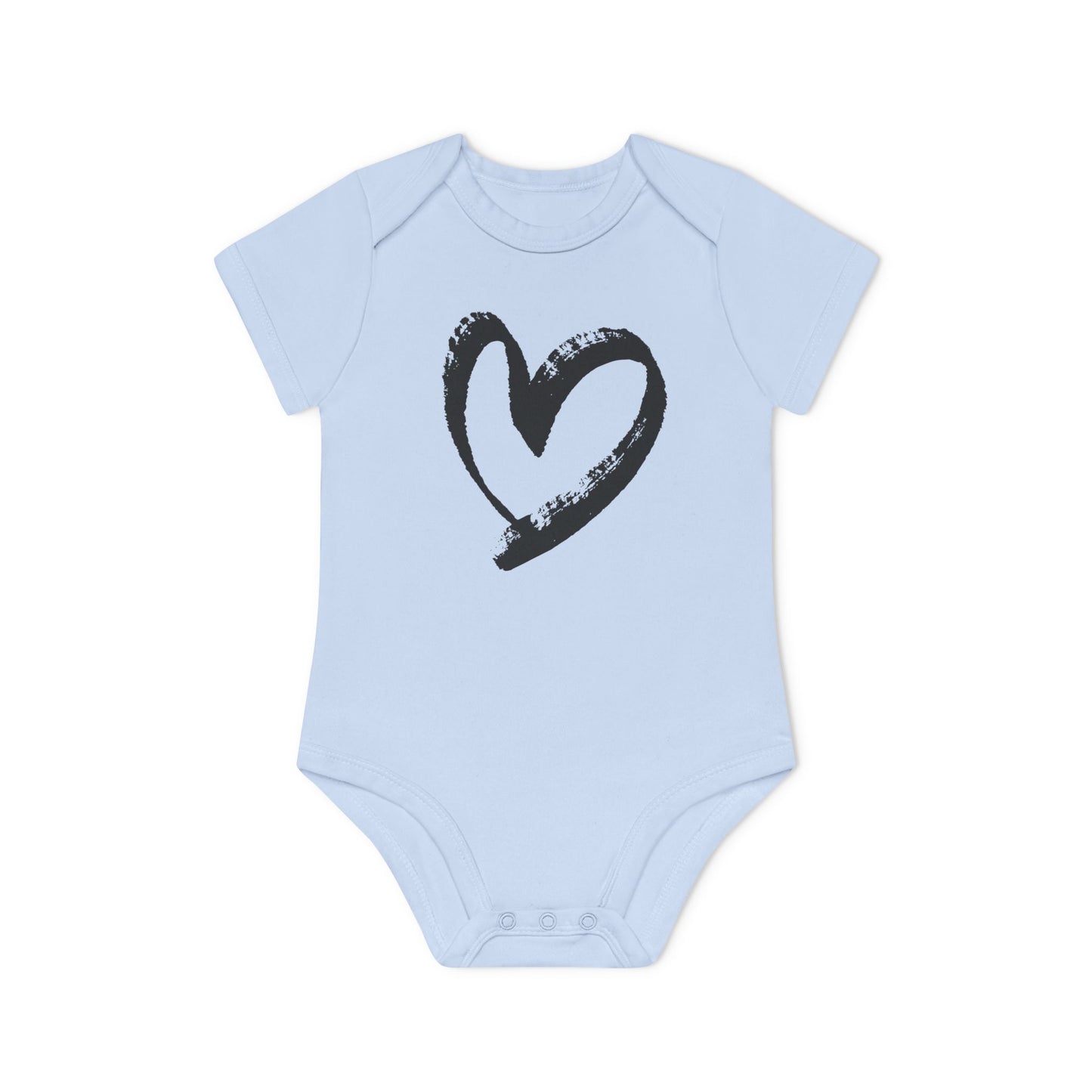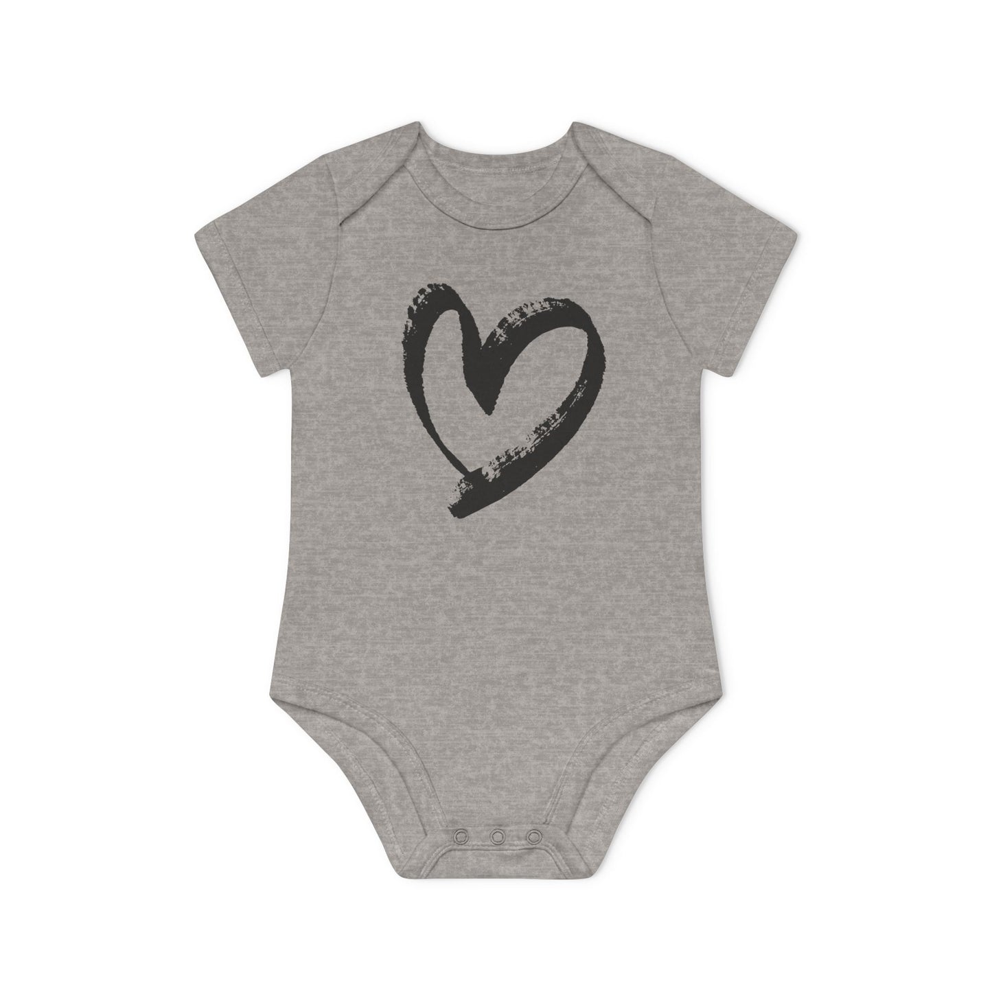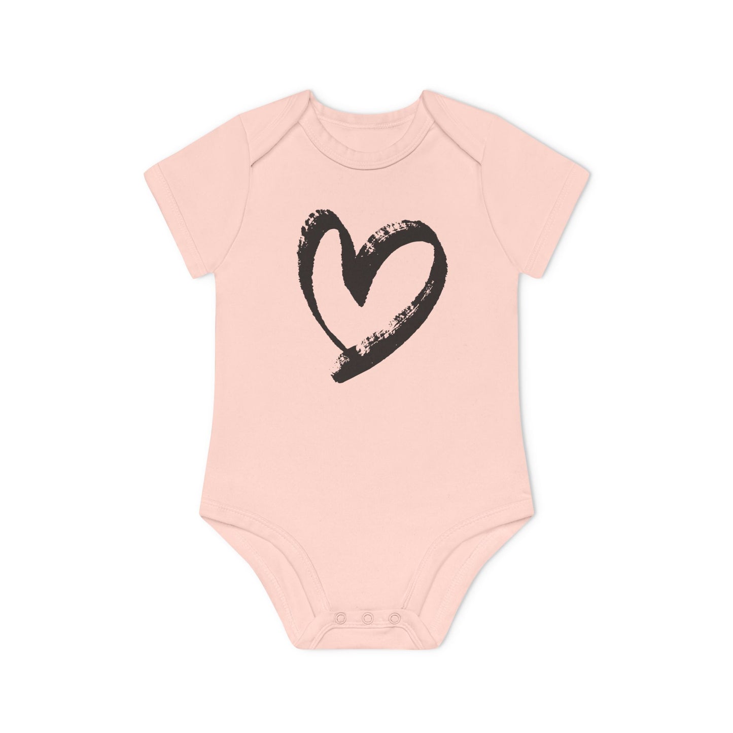 HERZ BILDCHEN HERZCHEN MOTIV HANDGEZEICHNET • Niedlich süßer Baby Body Kurzarm • Mädchen & Jungen • BIO Baumwolle 🌿