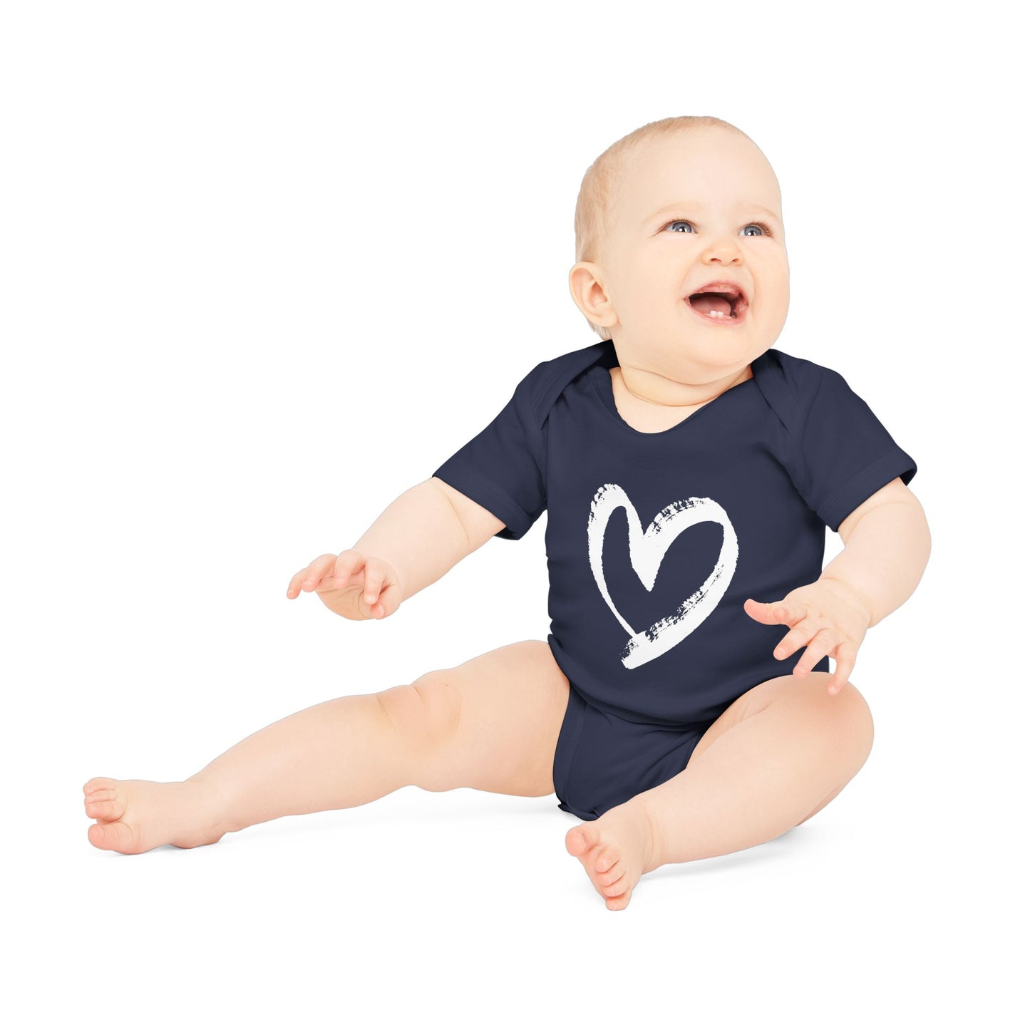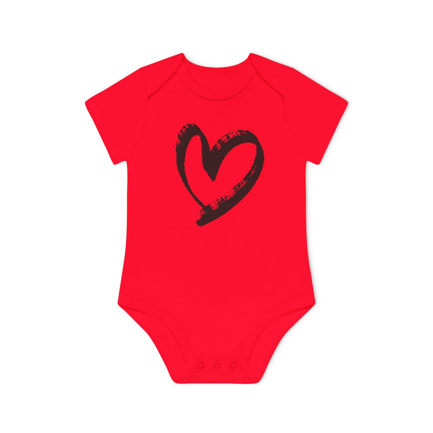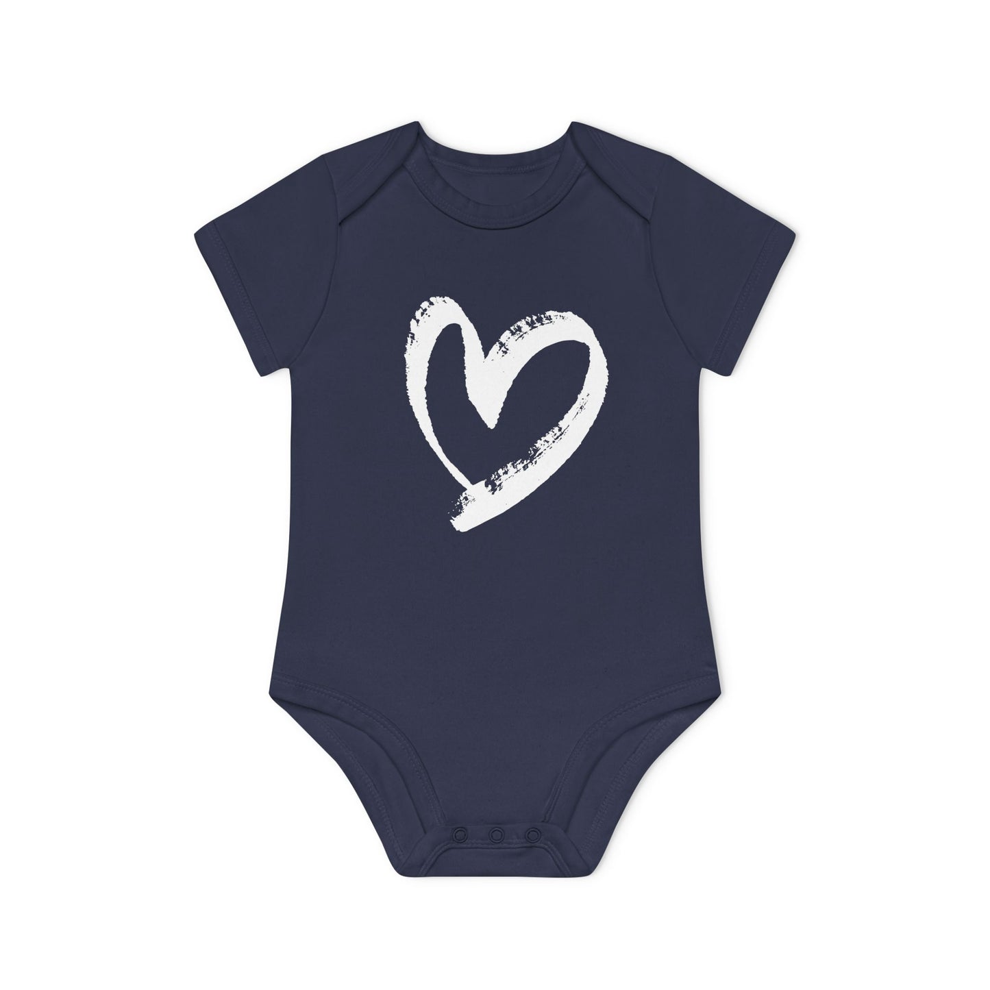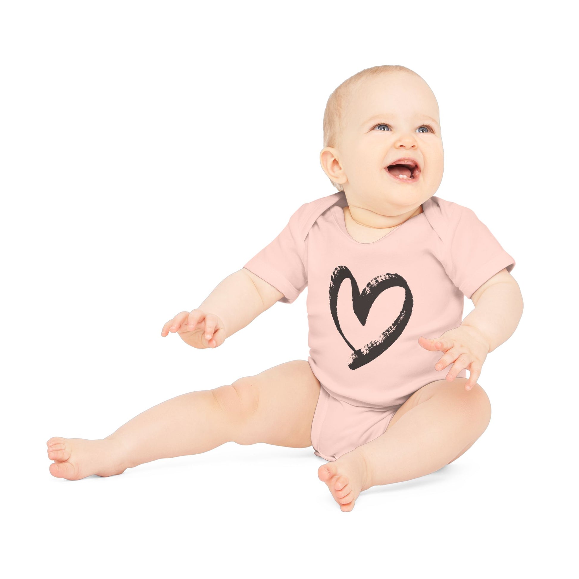HERZ BILDCHEN HERZCHEN MOTIV HANDGEZEICHNET • Niedlich süßer Baby Body Kurzarm • Mädchen & Jungen • BIO Baumwolle 🌿
