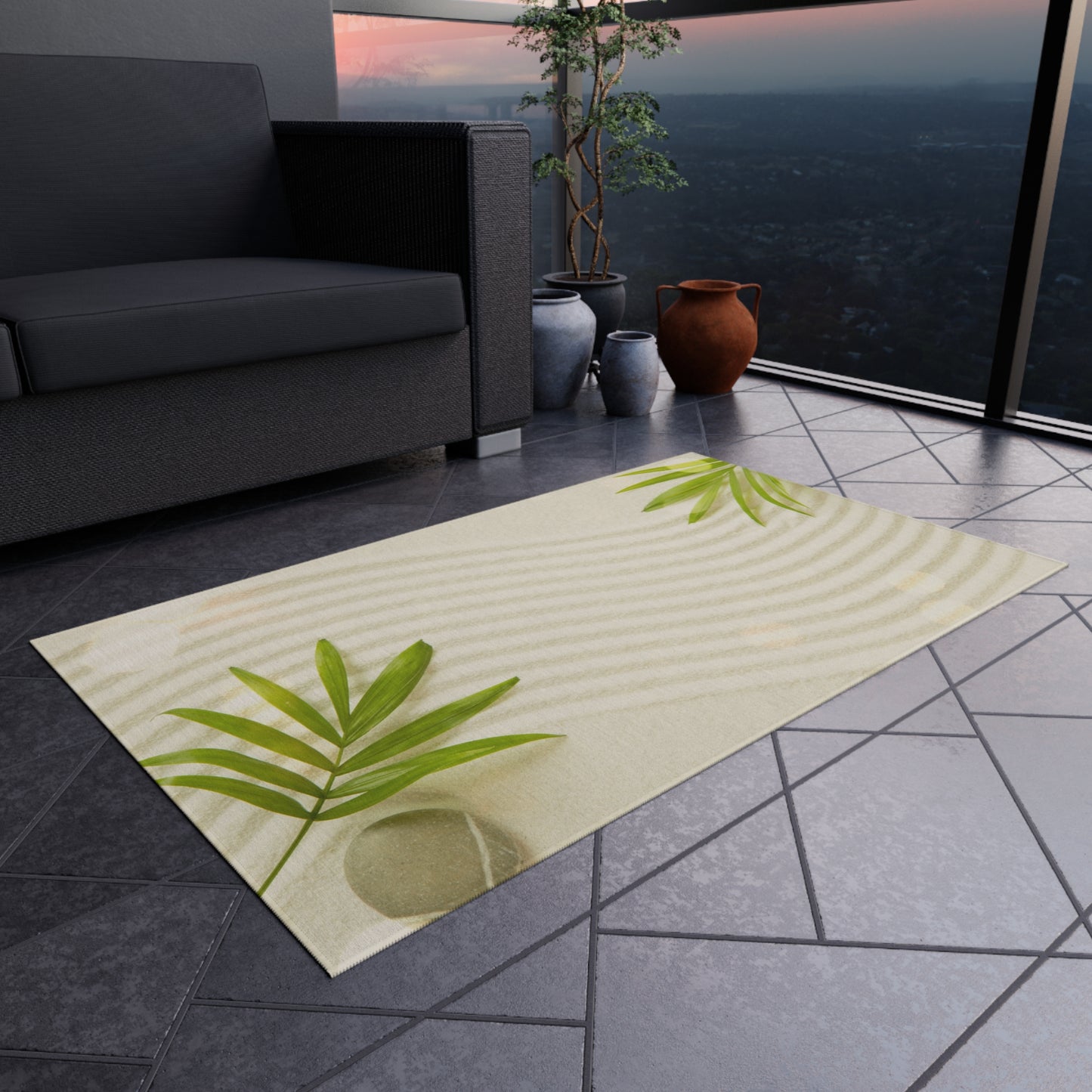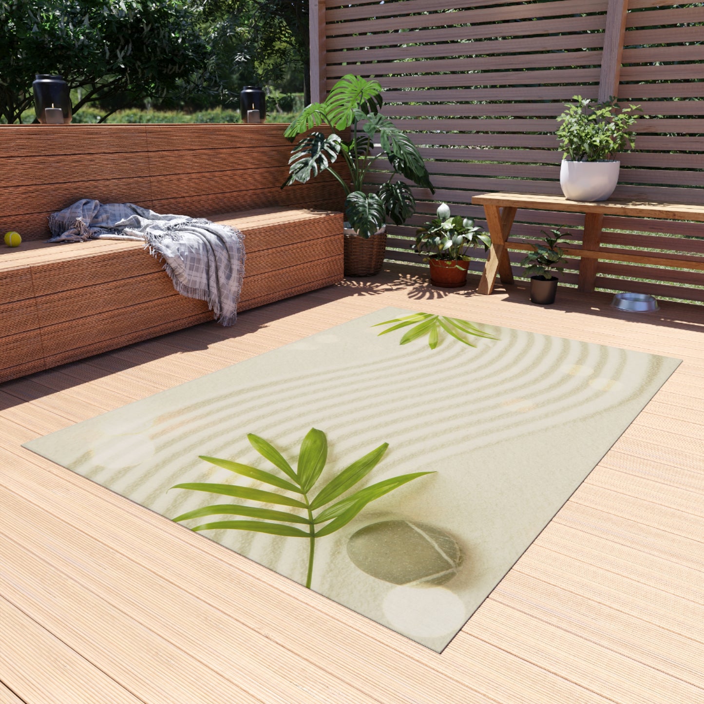 ZEN GARTEN mit GRÜNEN BLÄTTERN • Chenille Teppich • In v. Größen – Innen- & Außenbereich