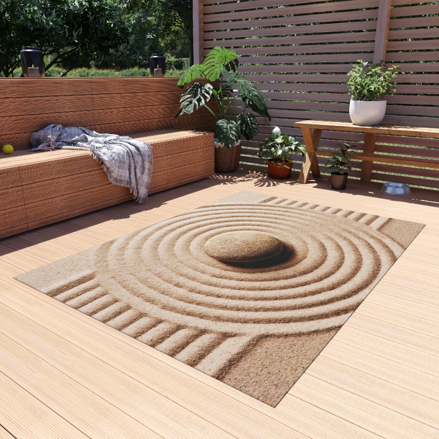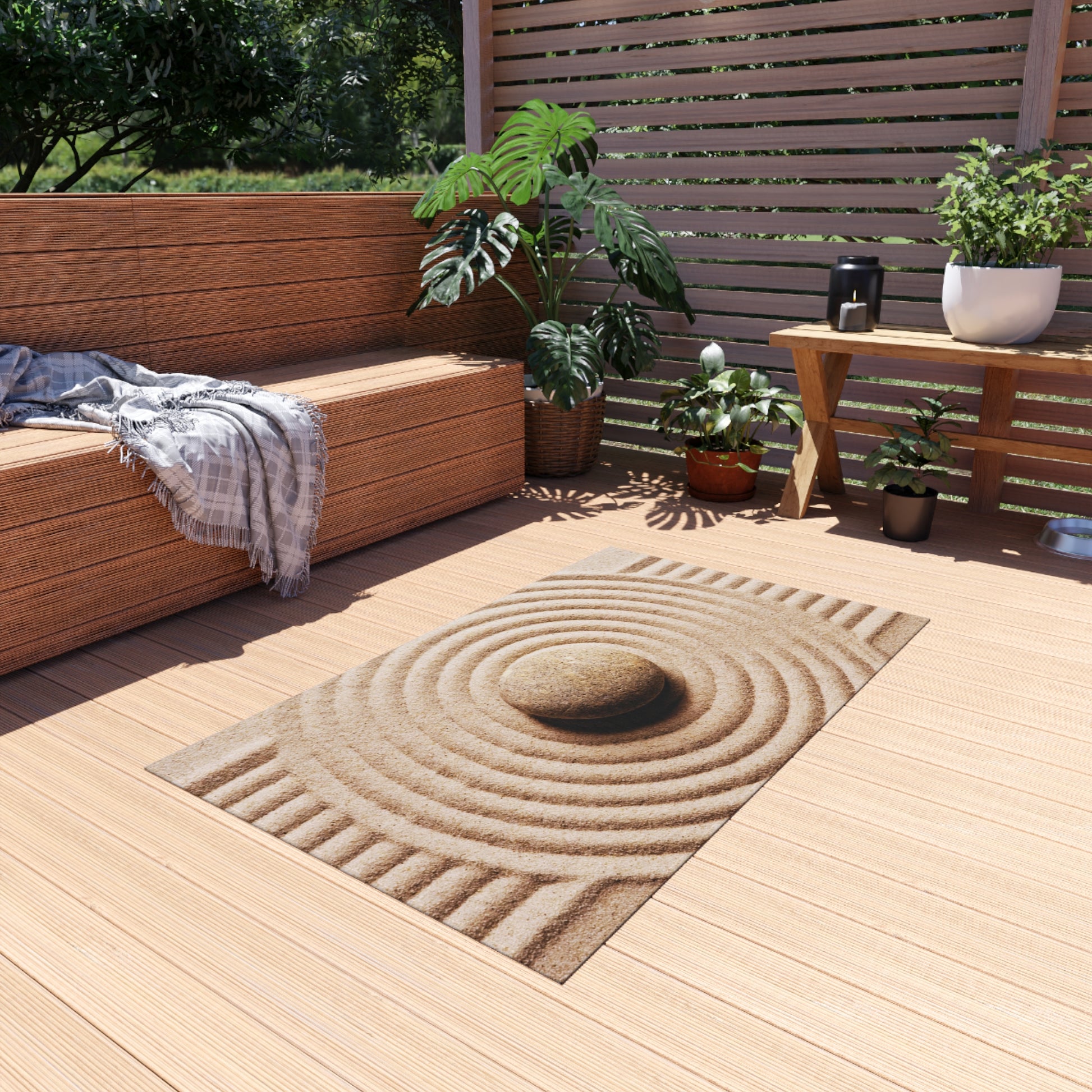 ZEN GARTEN - Buddhistisches Motiv • Chenille Teppich • In v. Größen – Innen- & Außenbereich