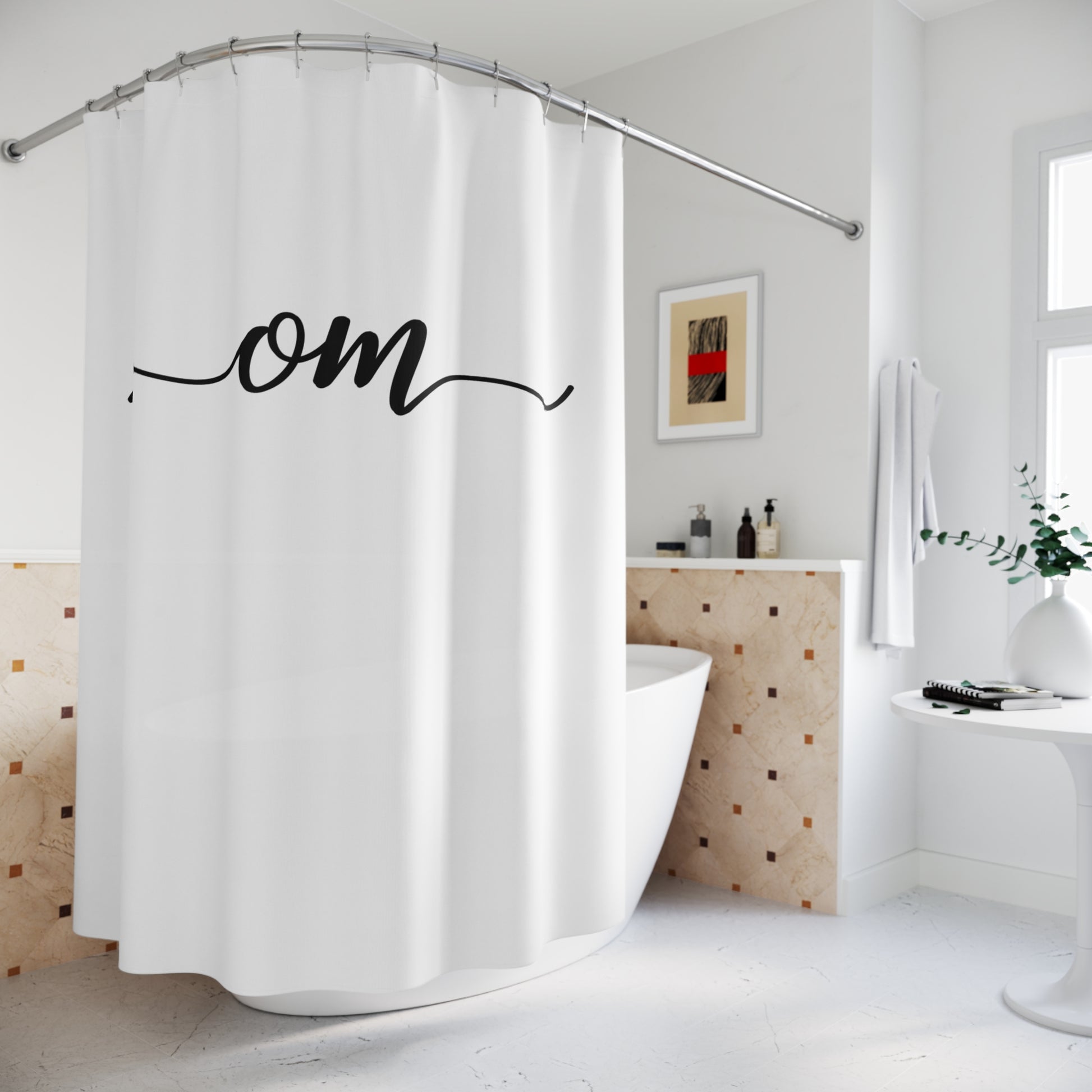 OM OHM - YOGA SPRUCH MEDITATION • Hochwertiger, Schöner Duschvorhang 180x200 cm Weiss