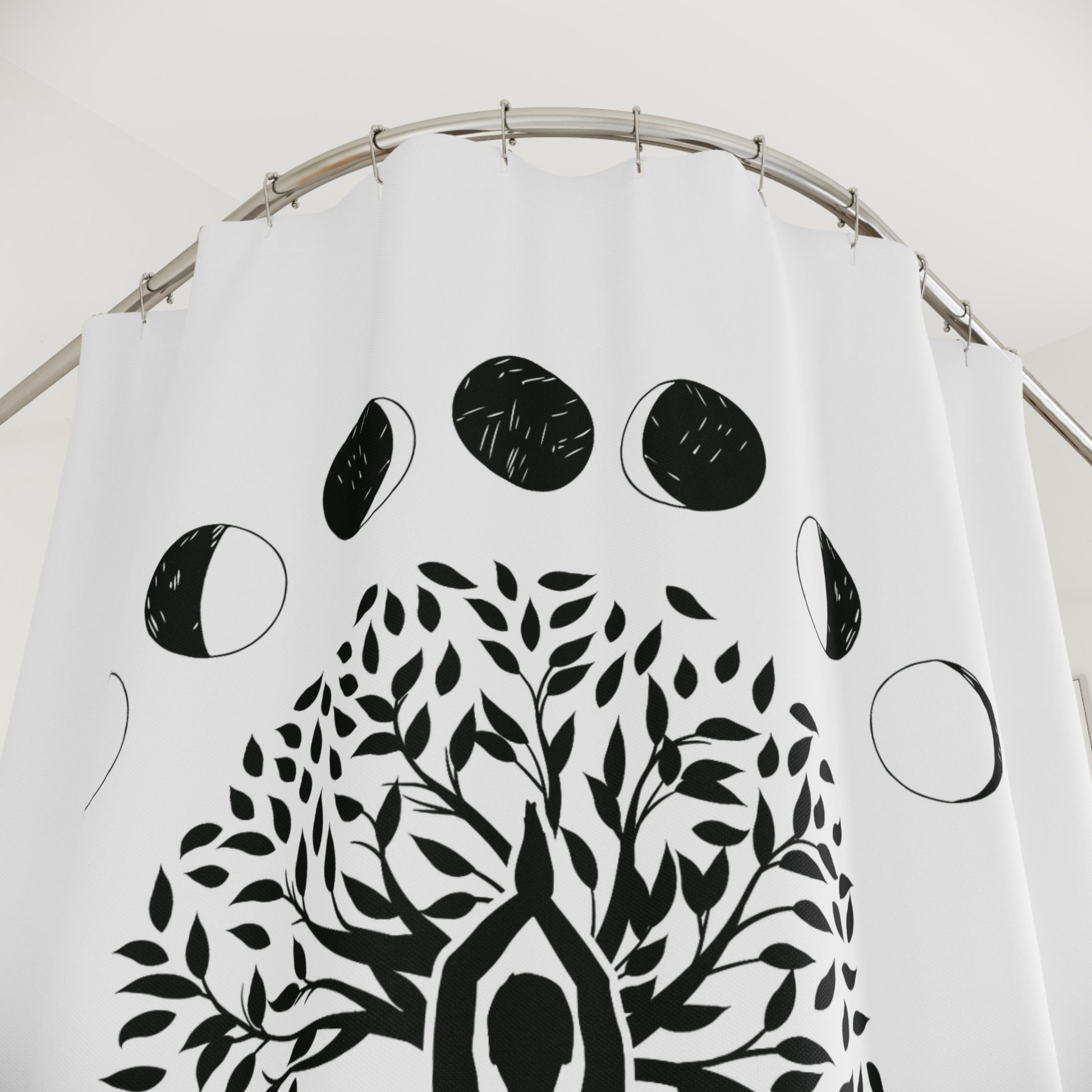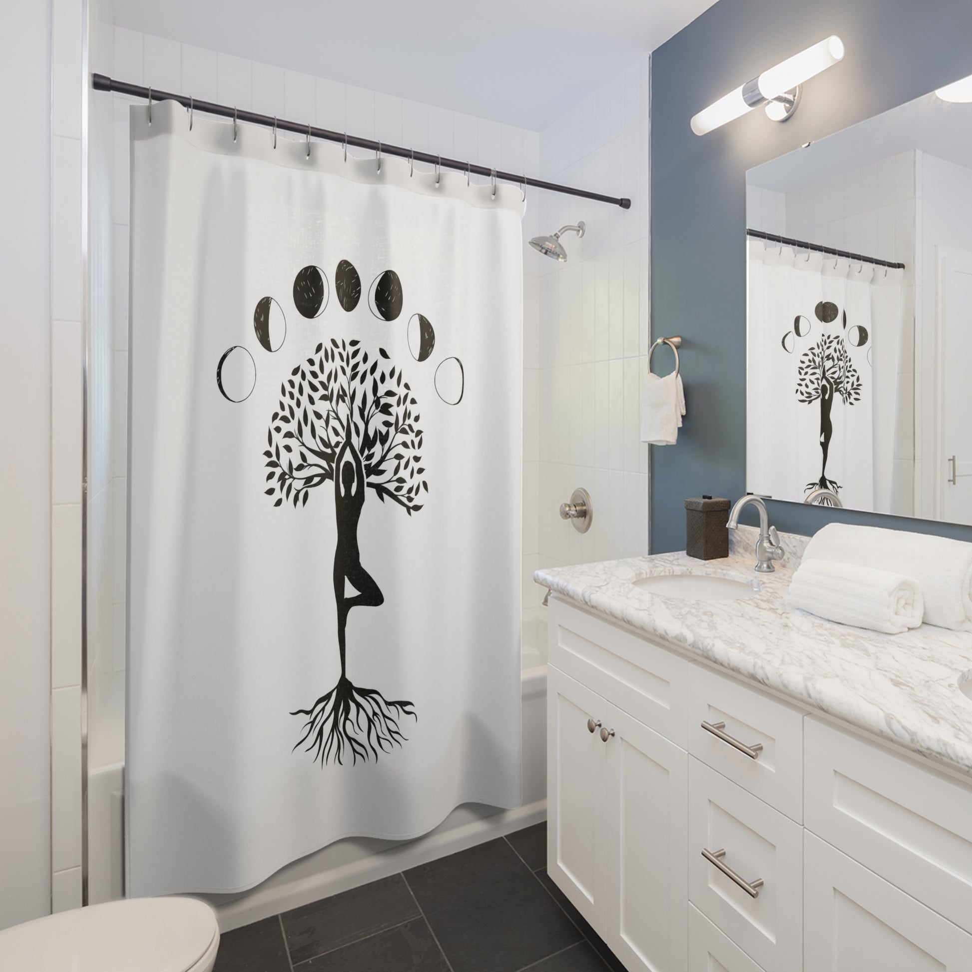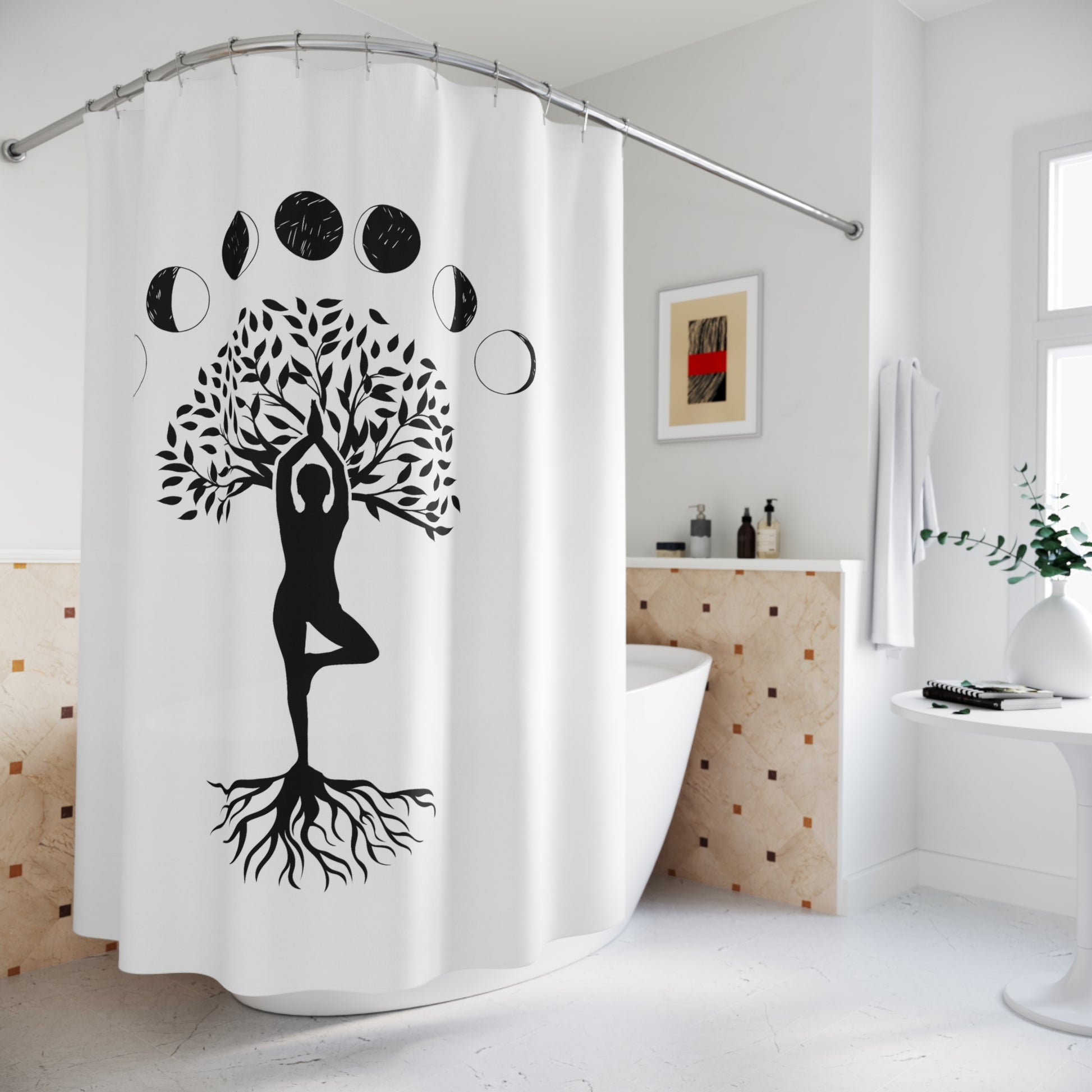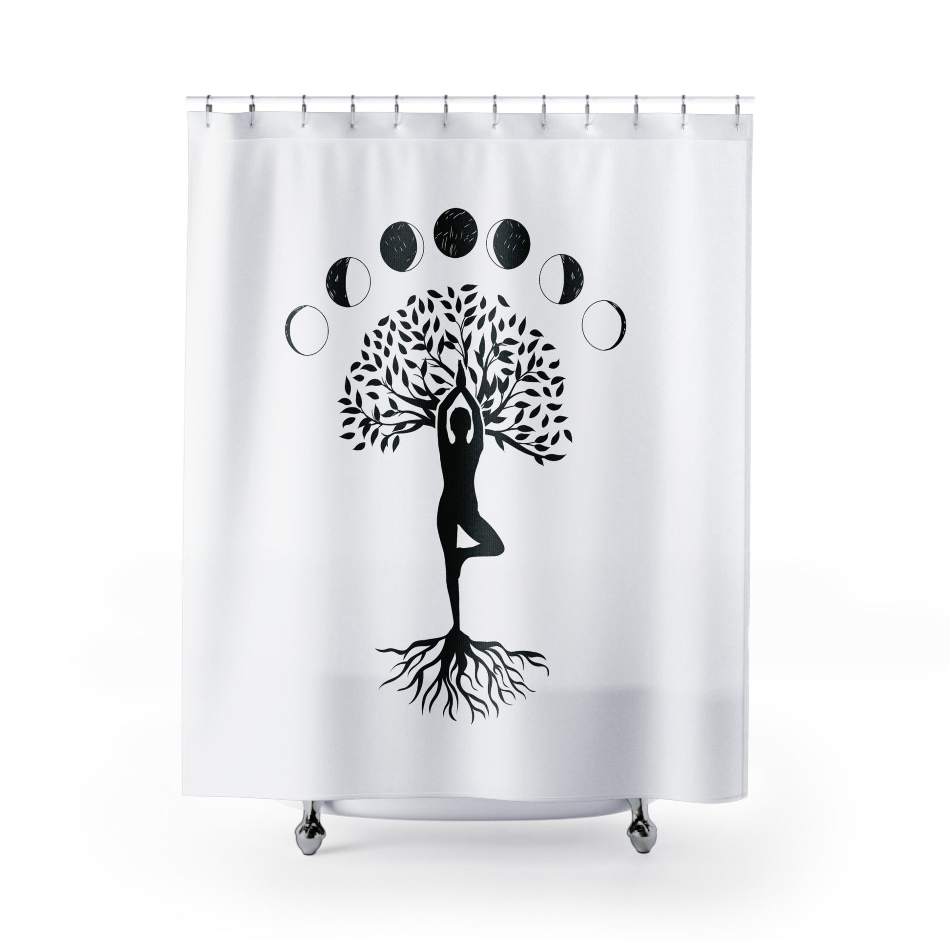 BAUM DES LEBENS MONDPHASEN • Yoga Pose Baum • Duschvorhang 180x200 cm Weiss