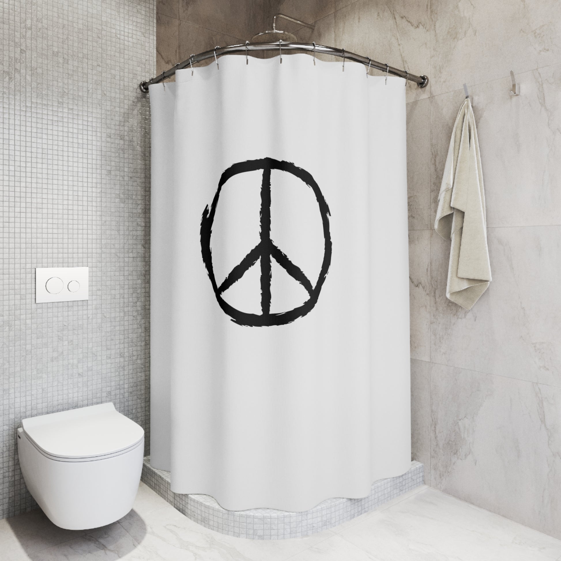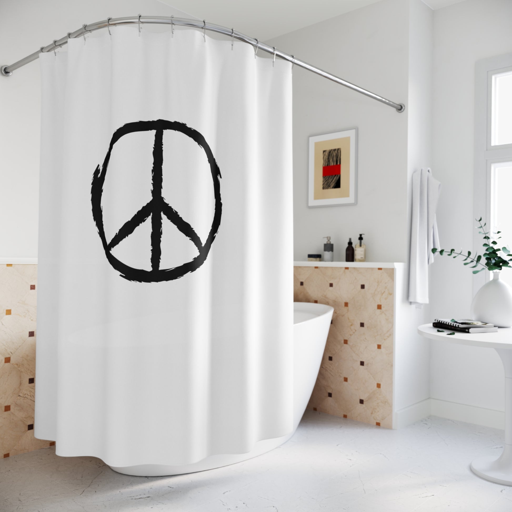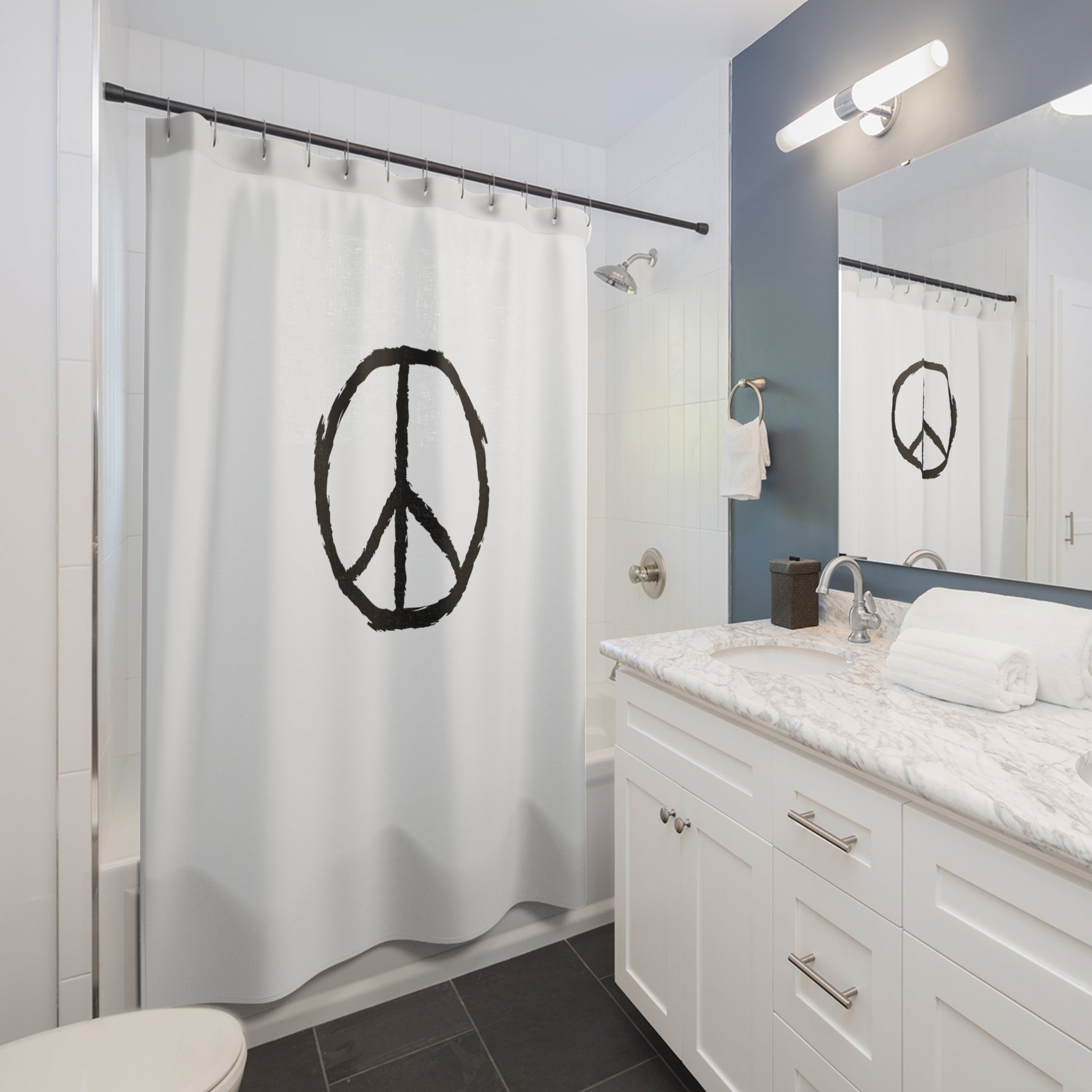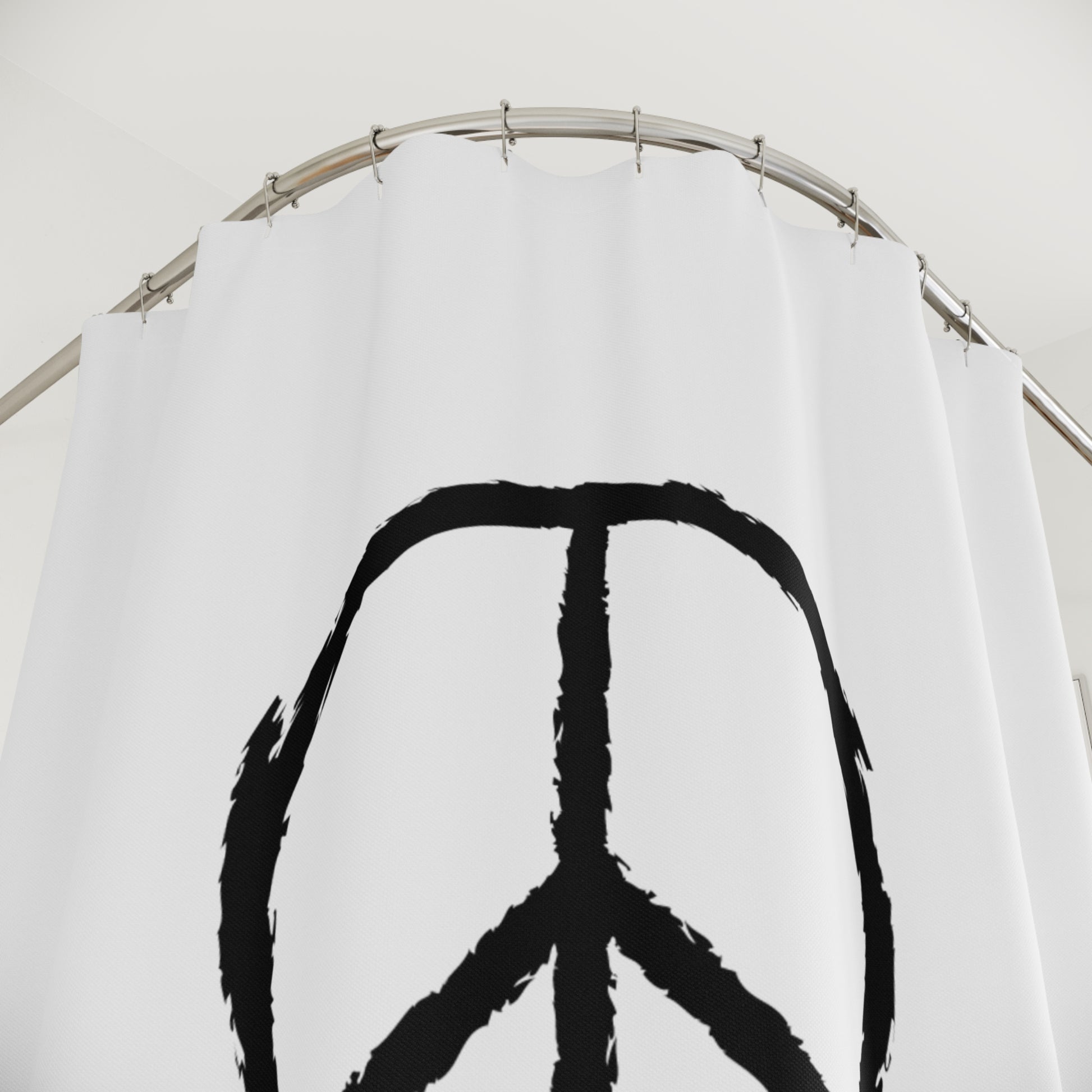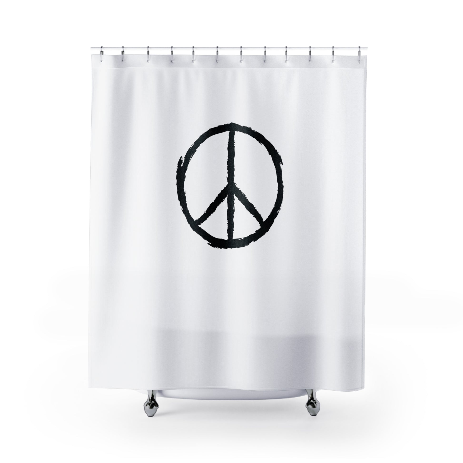 PEACE ZEICHEN FRIEDENSSYMBOL • Hochwertiger, Schöner Duschvorhang 180x200 cm Weiss
