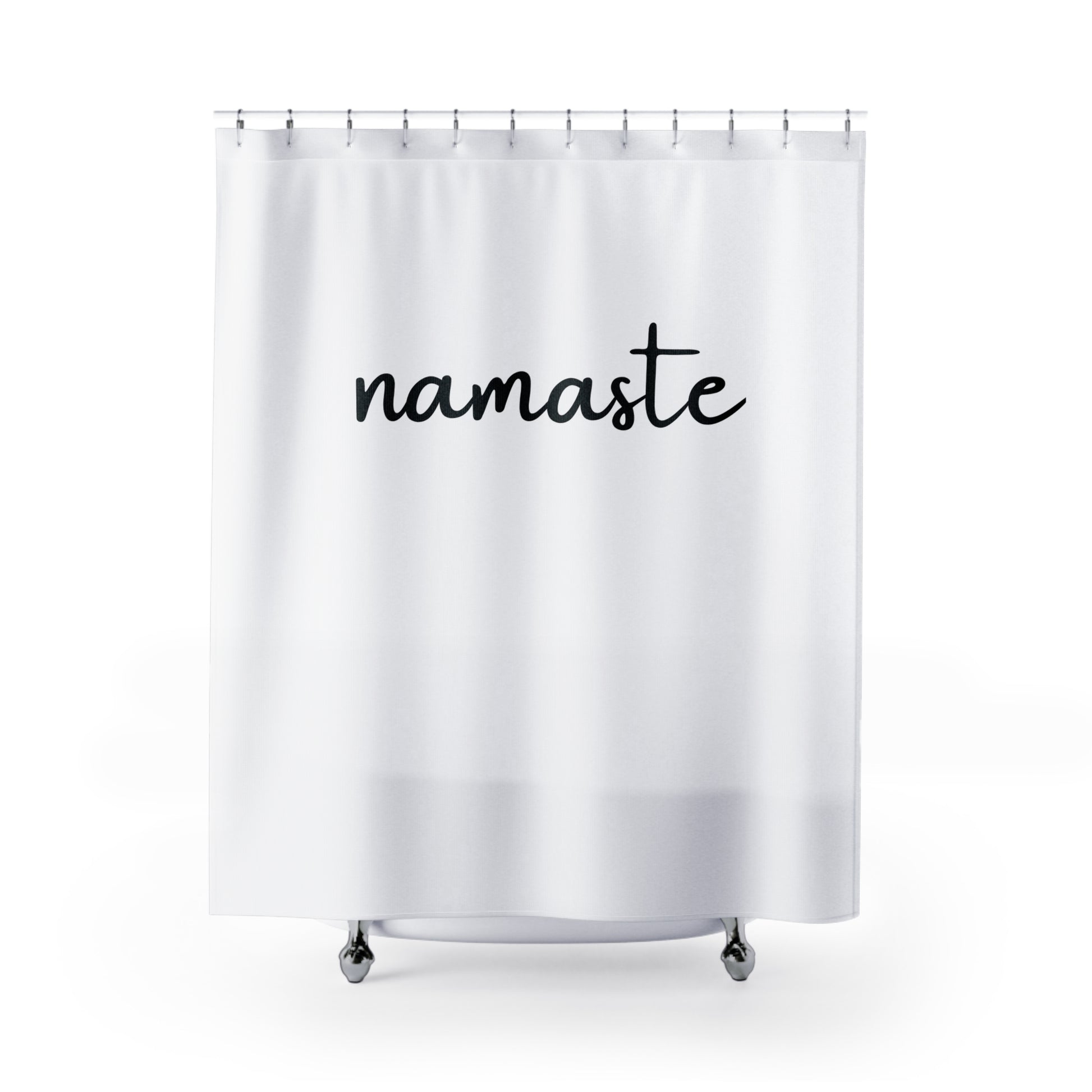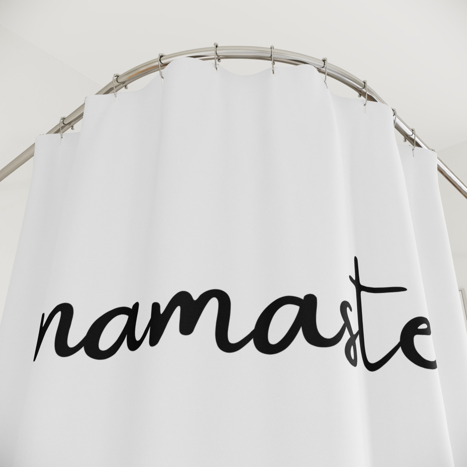 NAMASTE SPRUCH SCHRIFTZUG • Hochwertiger, Schöner Duschvorhang 180x200 cm Weiss