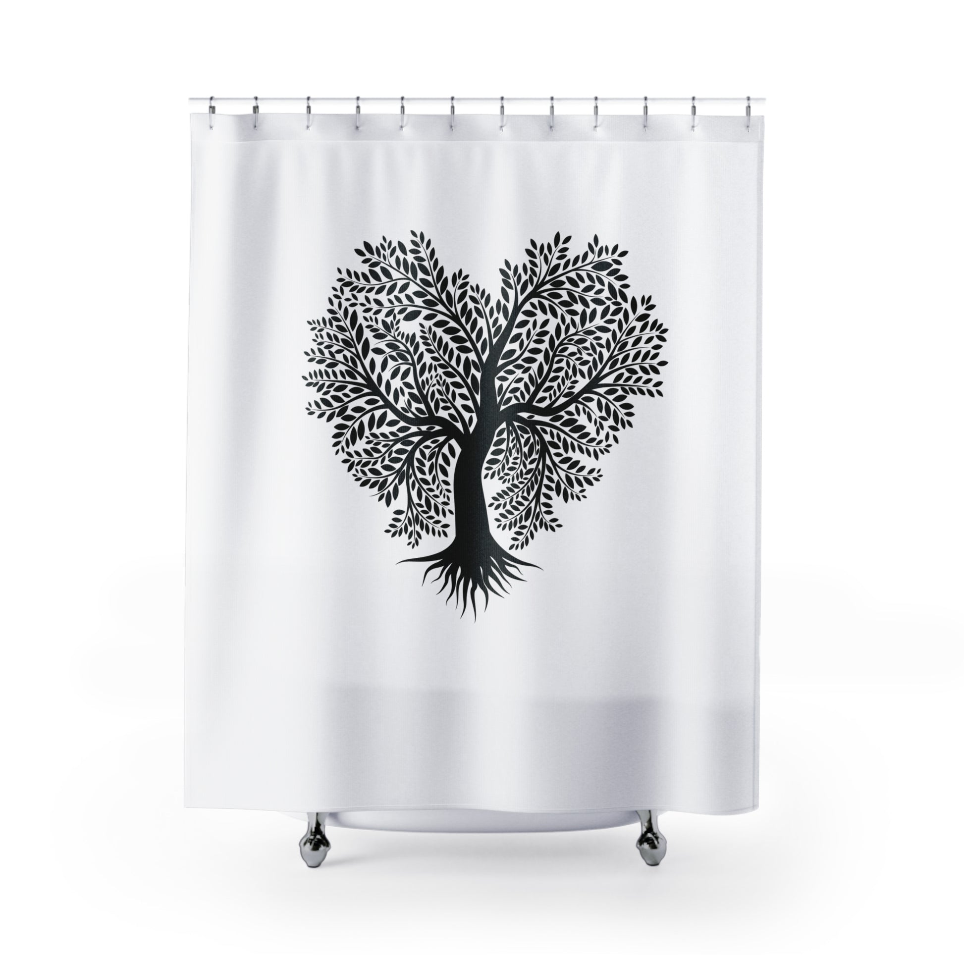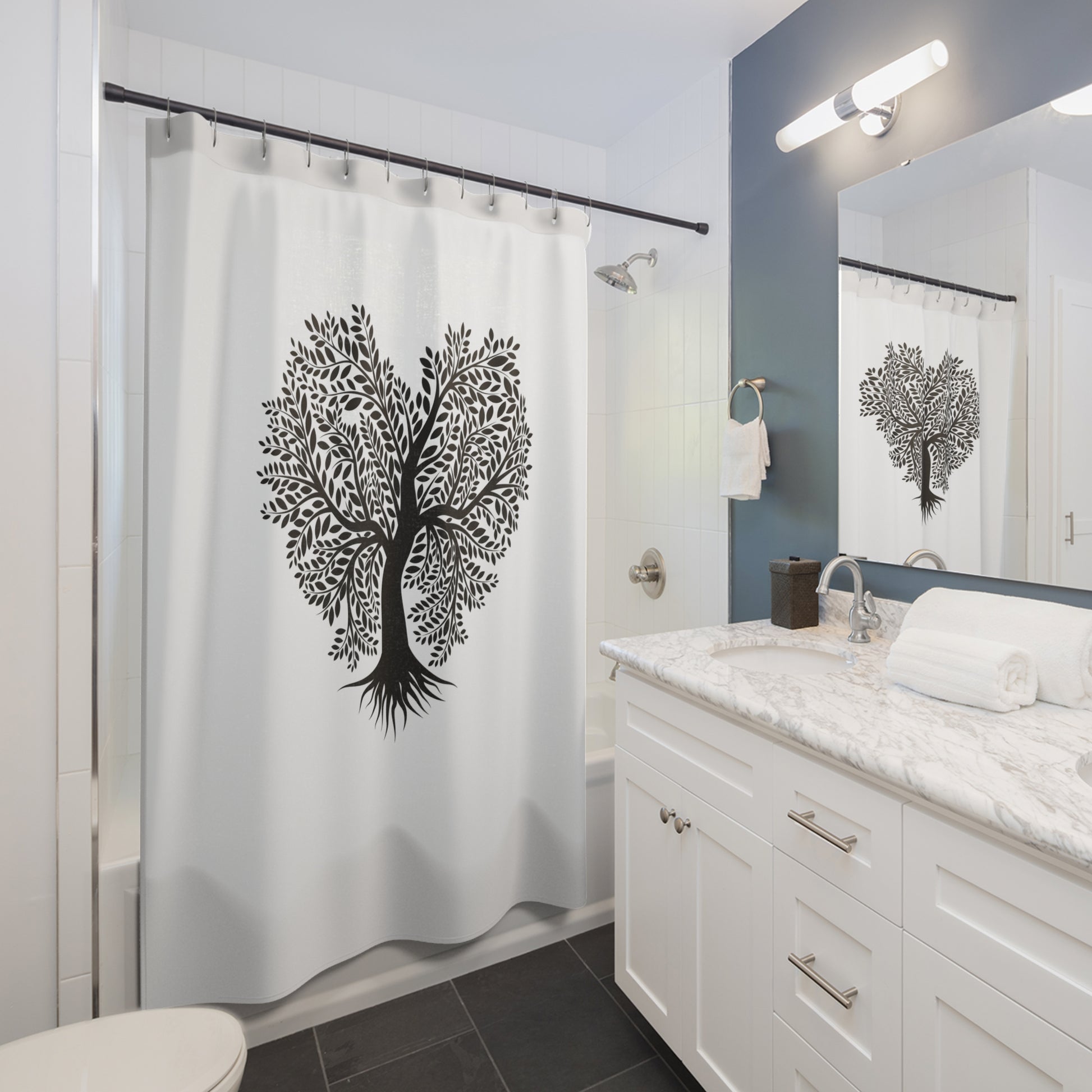 HERZ BAUM NATURLIEBHABER NATURMOTIV • Duschvorhang 180x200 cm Weiss