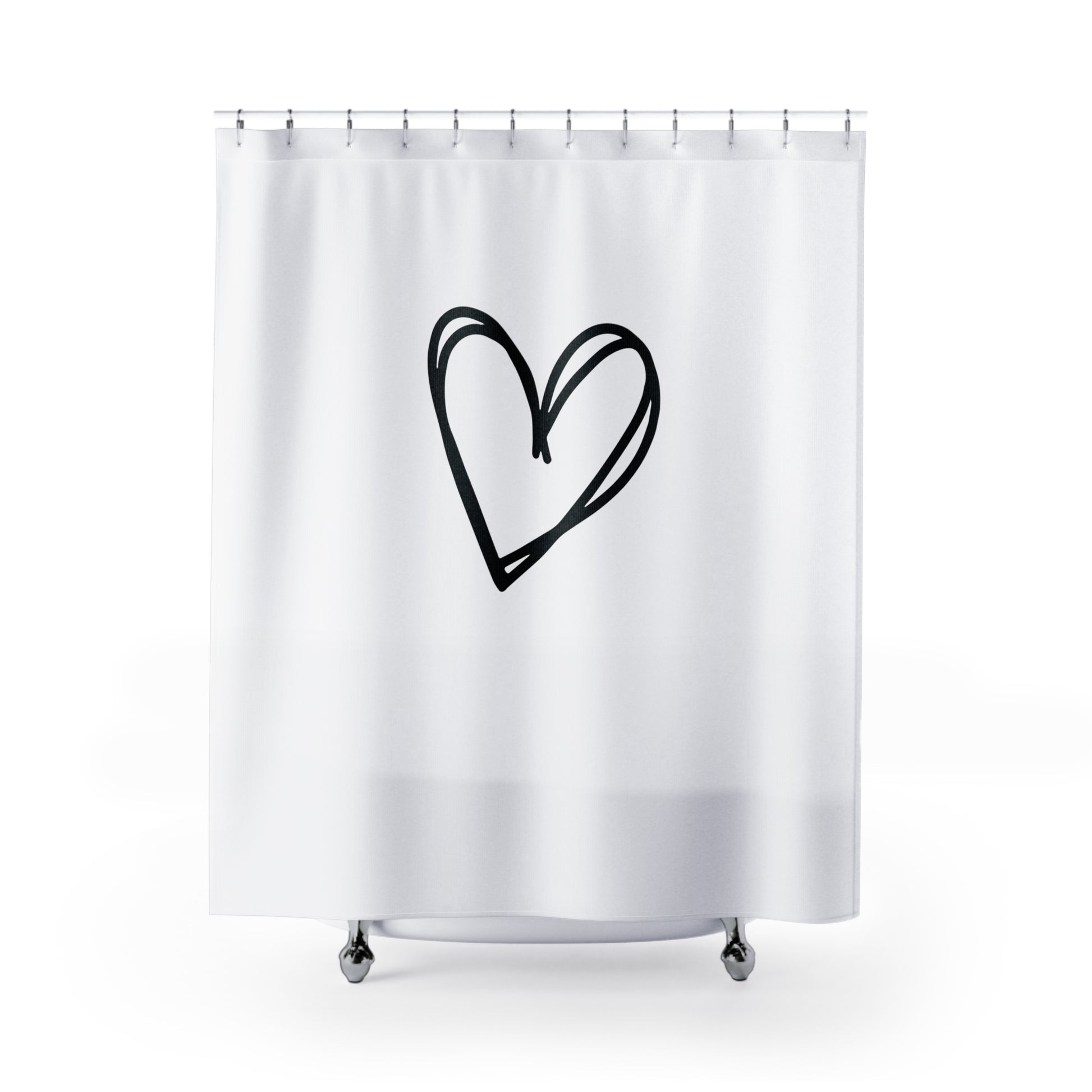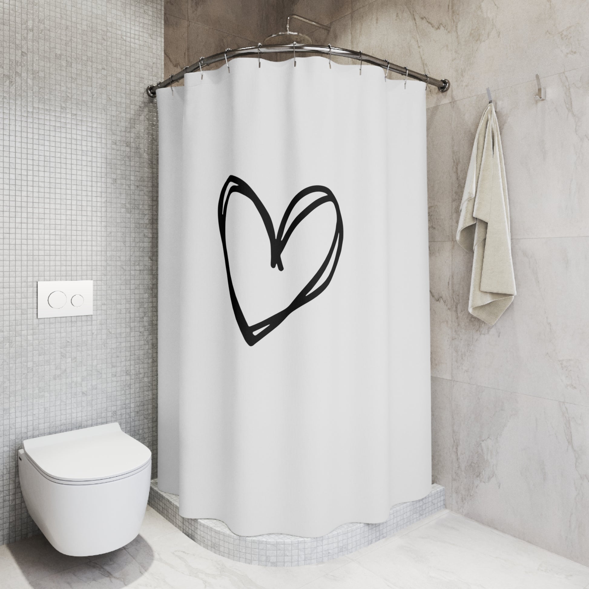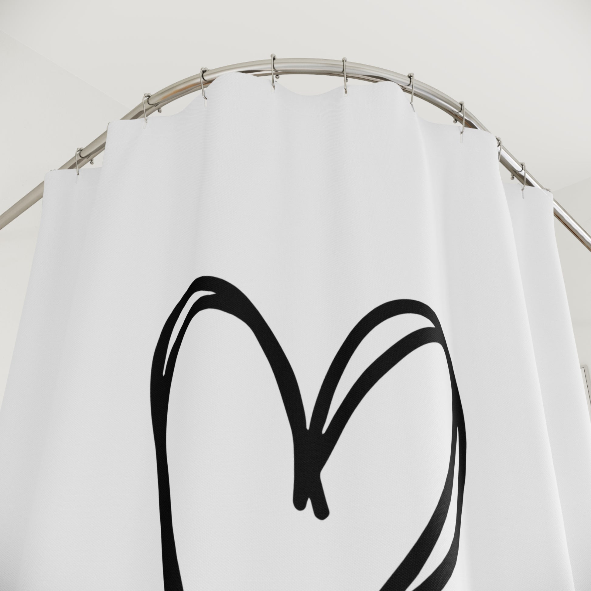 HERZ ZEICHNUNG • Liebesbeweis Geschenk, LOVE Liebesbotschaft • Duschvorhang 180x200 cm Weiss