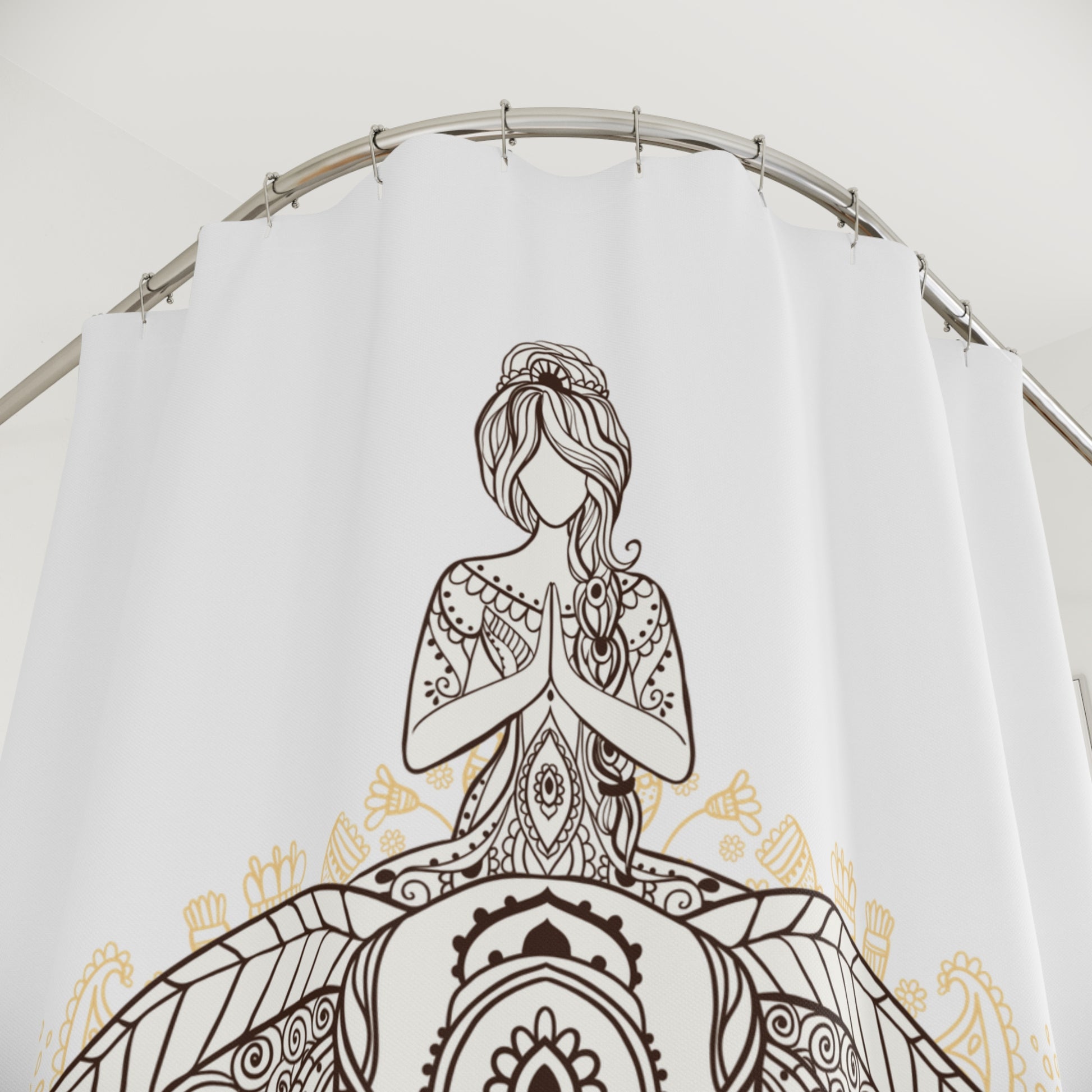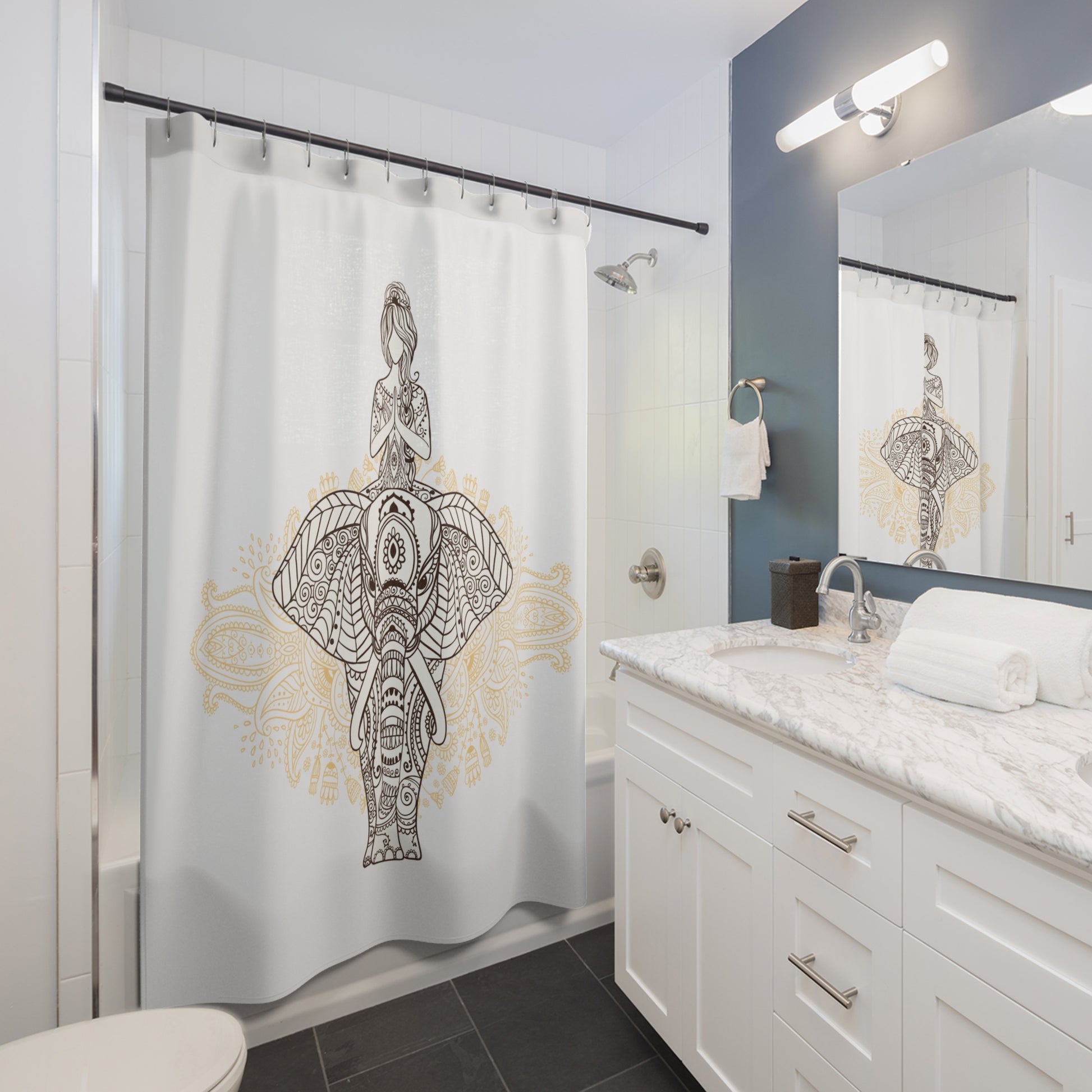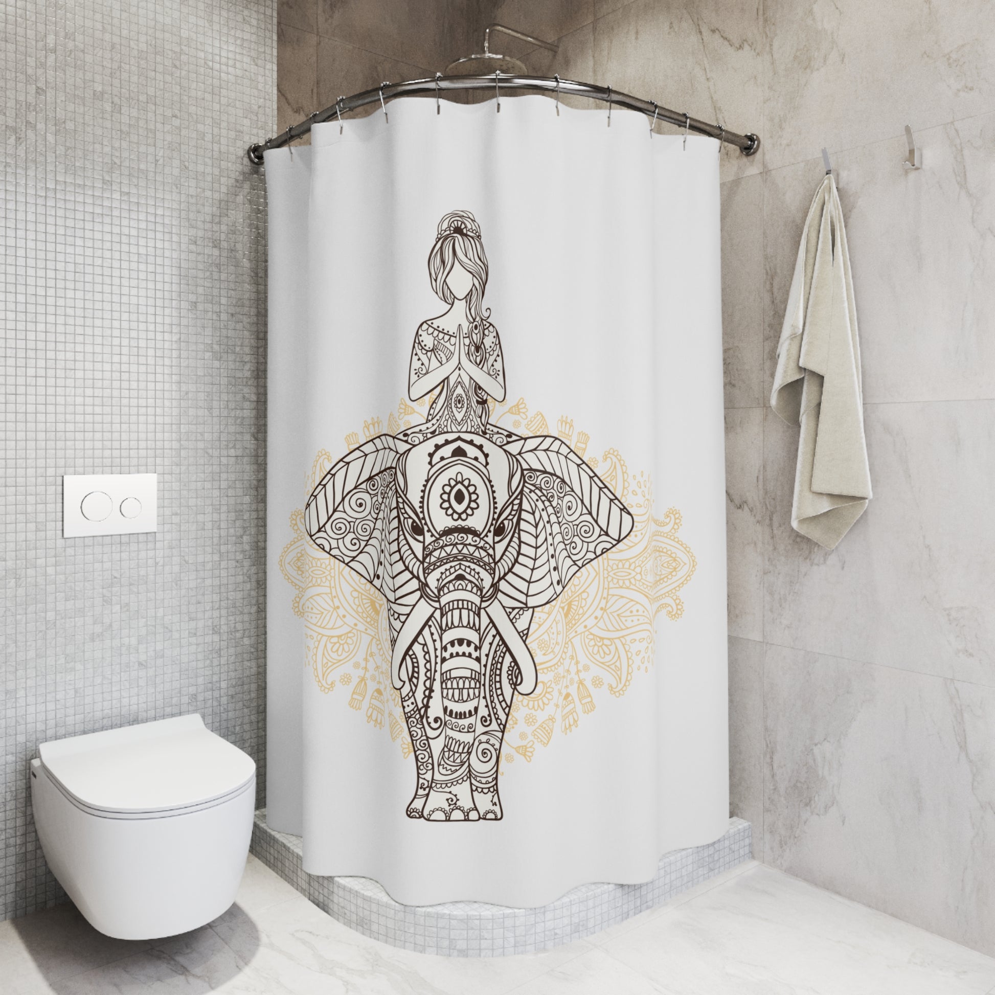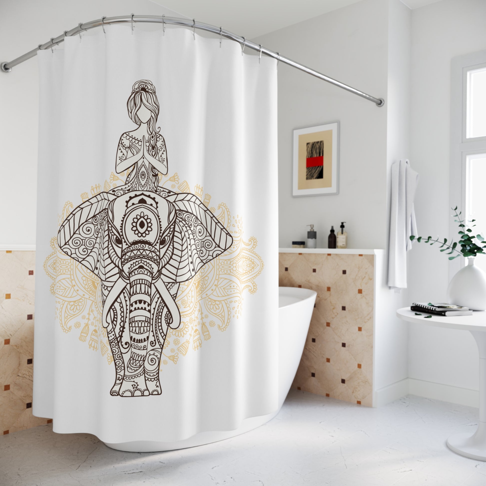 ELEFANT MANDALA - SCHÖNE FRAU • Hochwertiger, Schöner Duschvorhang 180x200 cm Weiss