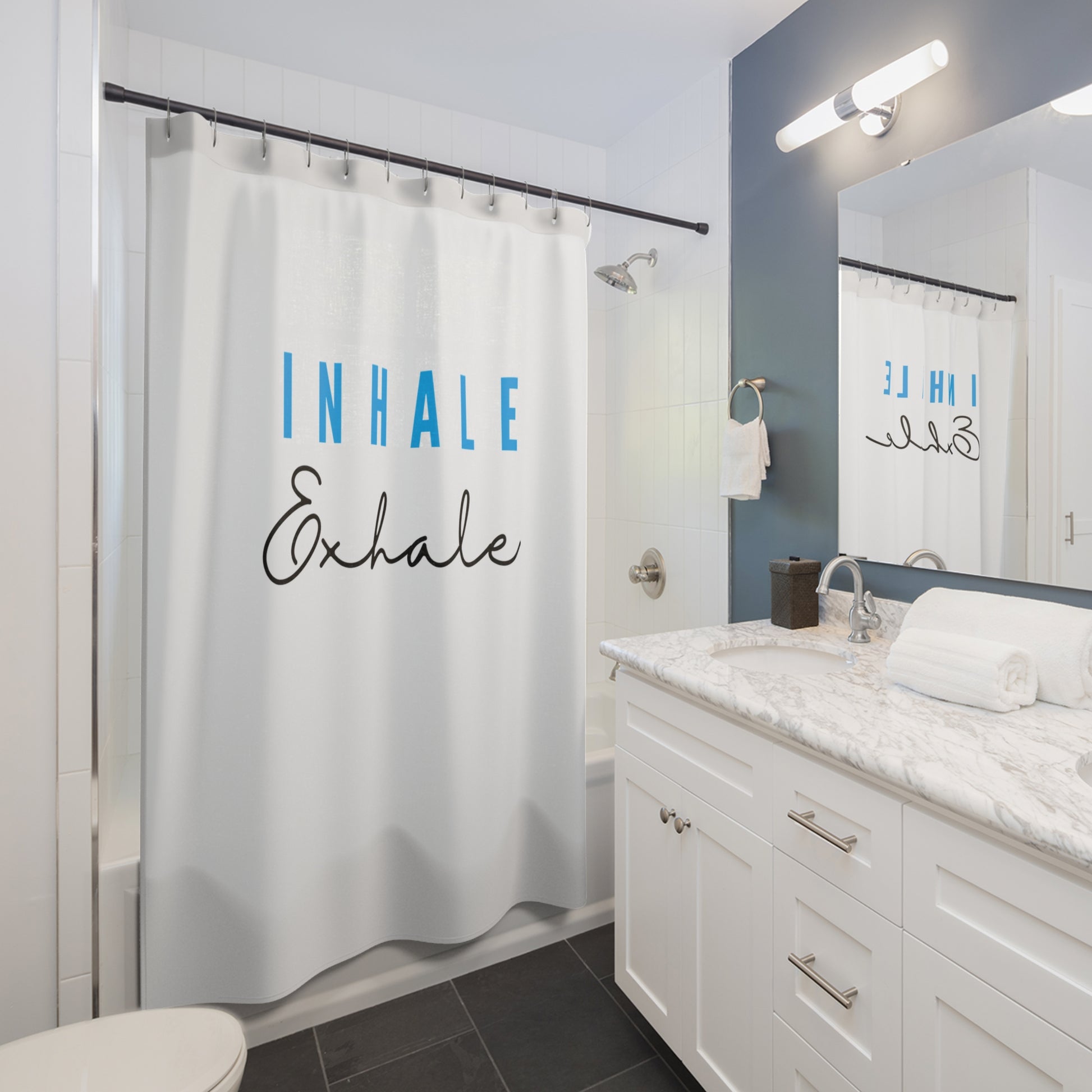 INHALE EXHALE - YOGA ATEMMEDITATION • Hochwertiger, Schöner Duschvorhang 180x200 cm Weiss