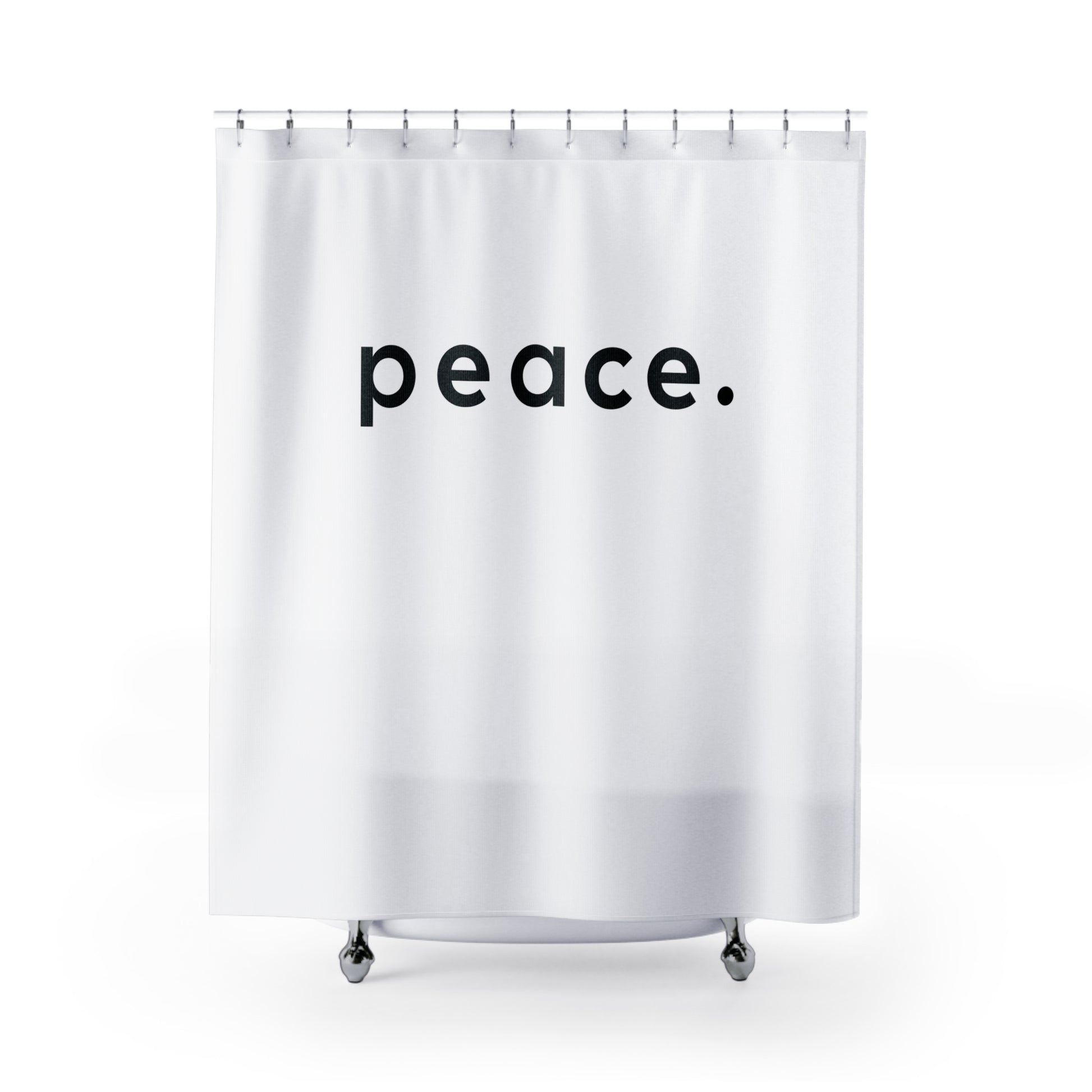 PEACE SCHRIFT FRIEDENSBOTSCHAFT • Hochwertiger, Schöner Duschvorhang 180x200 cm Weiss