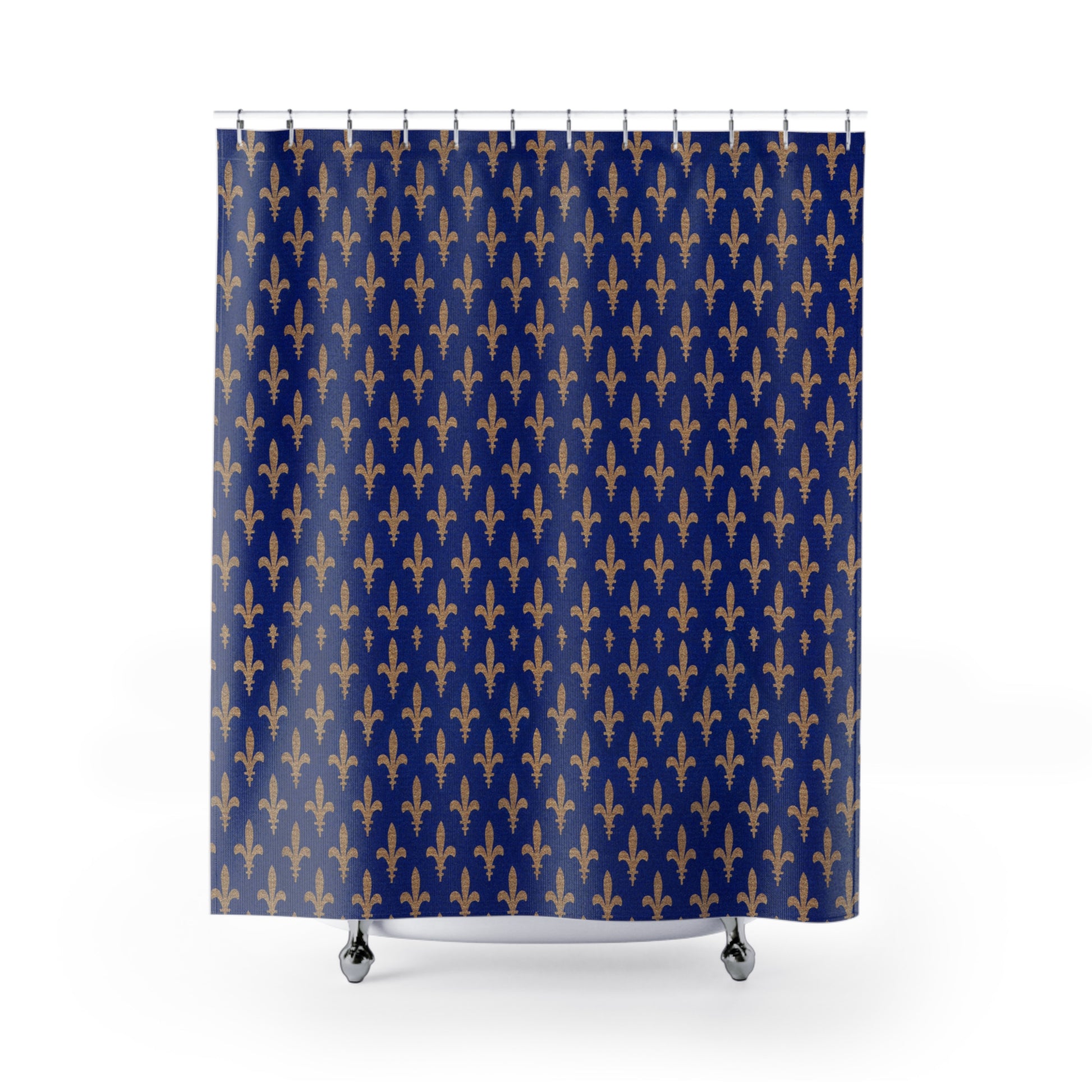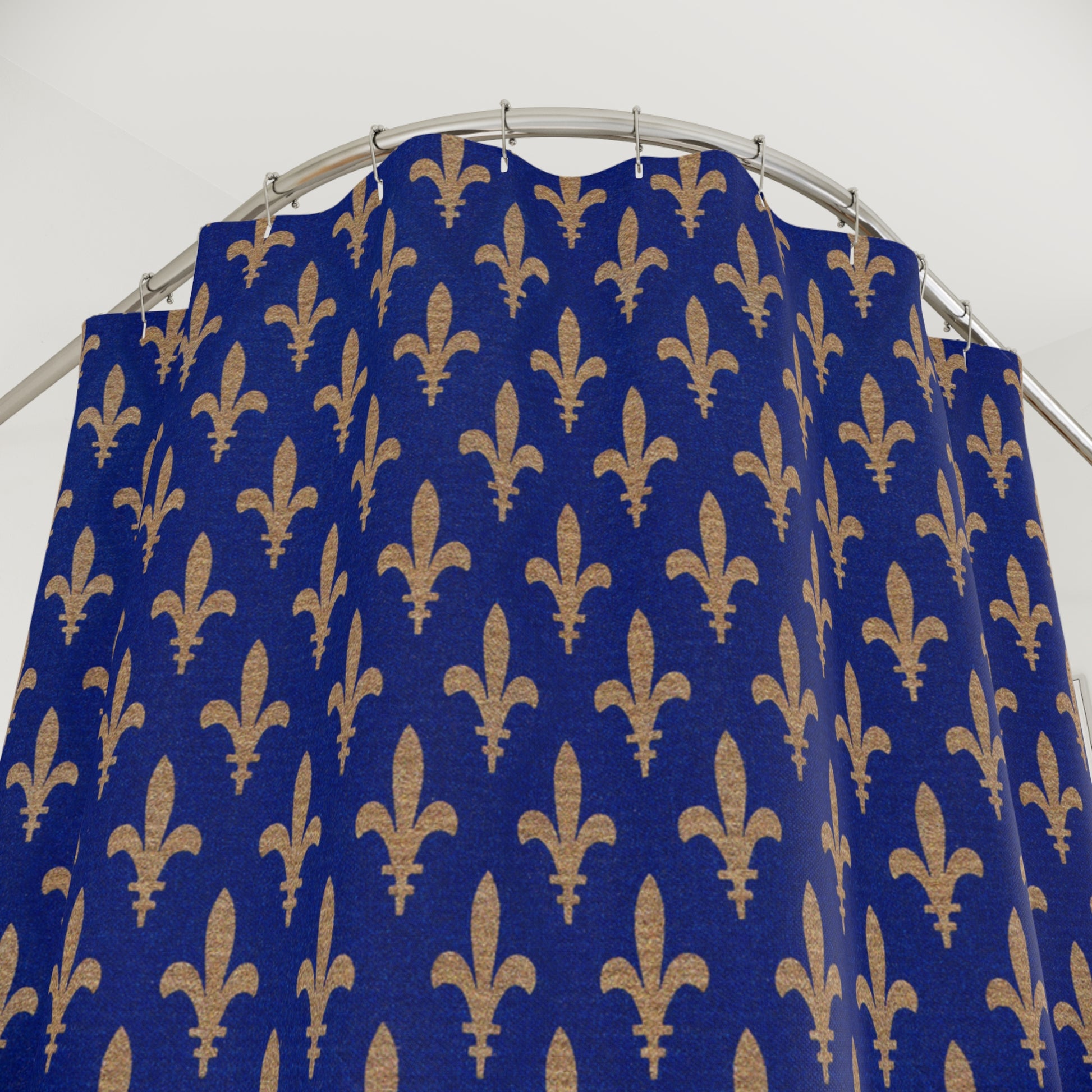 FLEUR-DE-LIS • LILIENBLÜTEN BLUMENMUSTER • DUSCHVORHANG FÜR DEIN ADEL • 180x200 cm BLAU