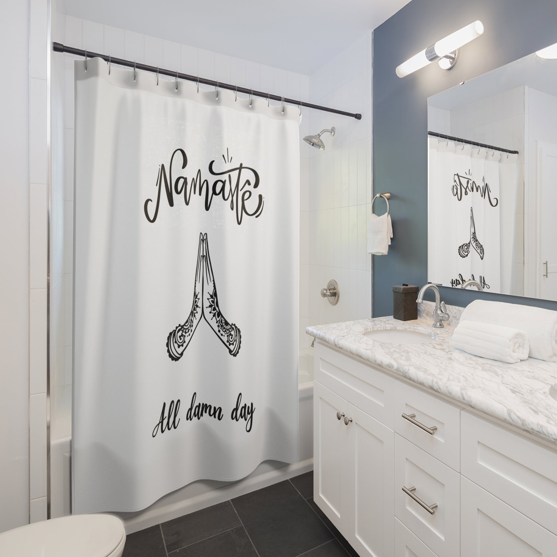 NAMASTE ALL DAMN DAY • Lustiger YOGA Duschvorhang 180x200 cm Weiss