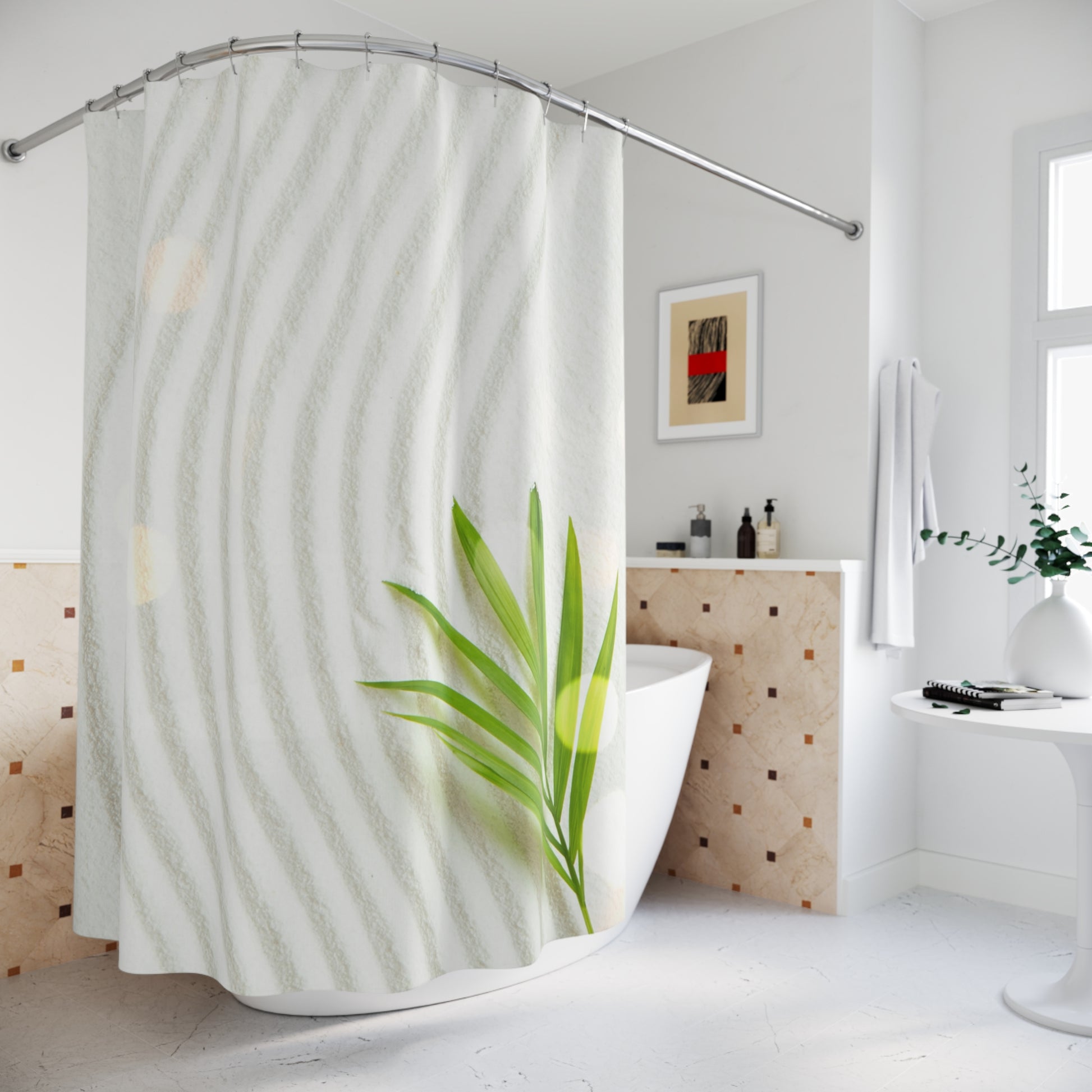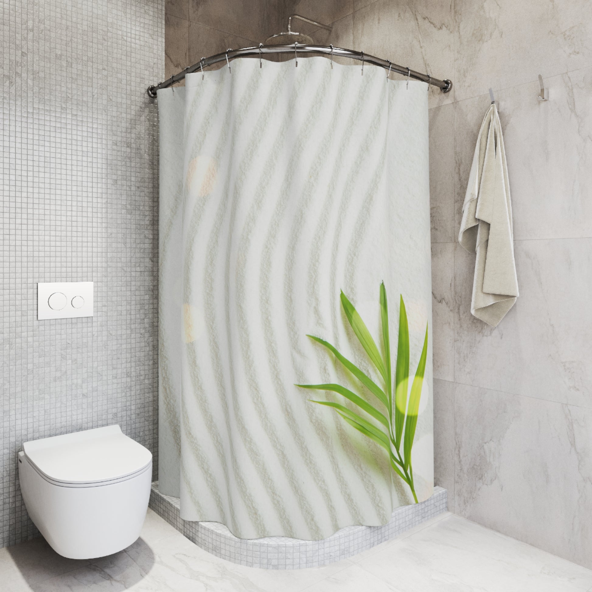 GRÜNE BLÄTTER IM ZEN GARTEN • Hochwertiger, Schöner Duschvorhang 180x200 cm Weiss