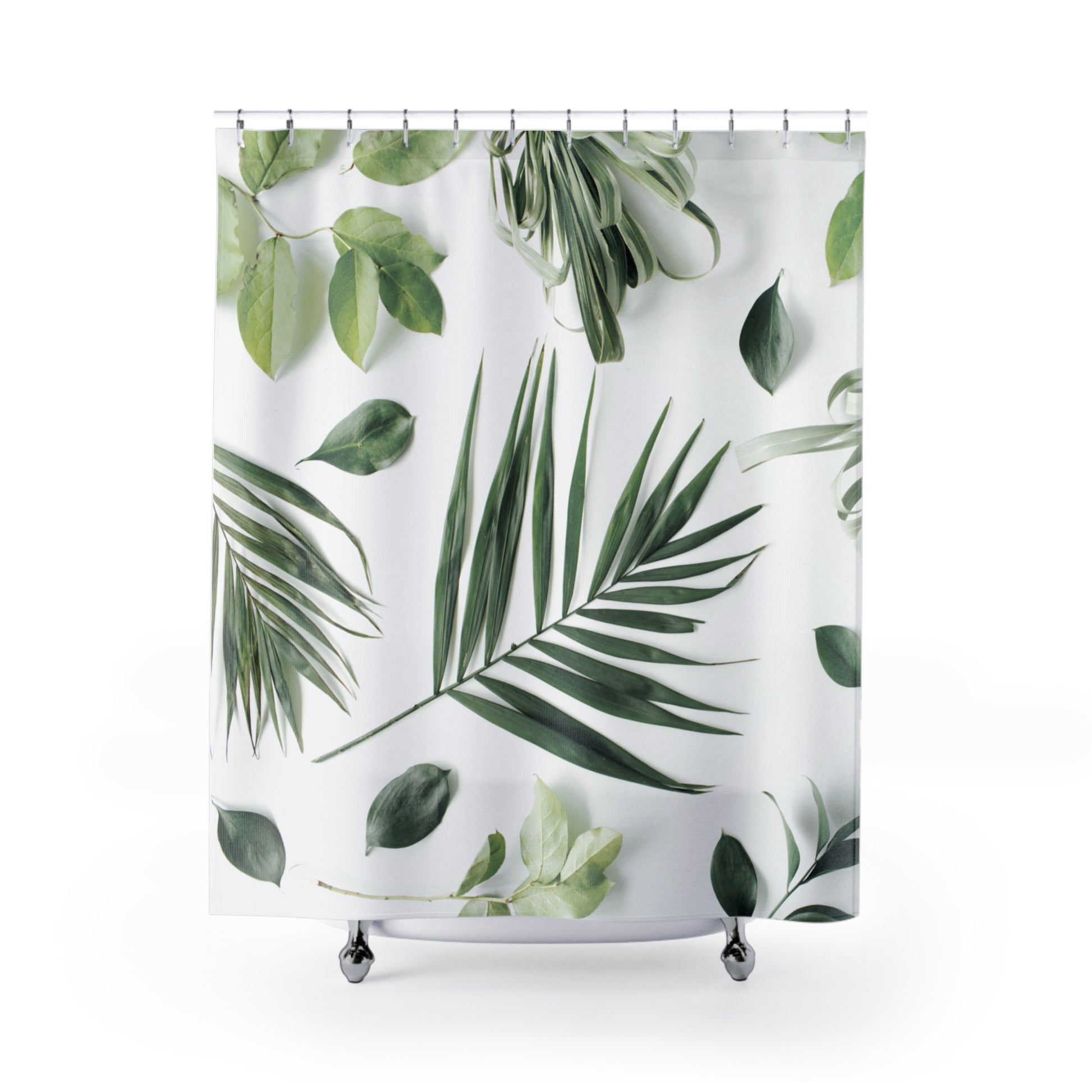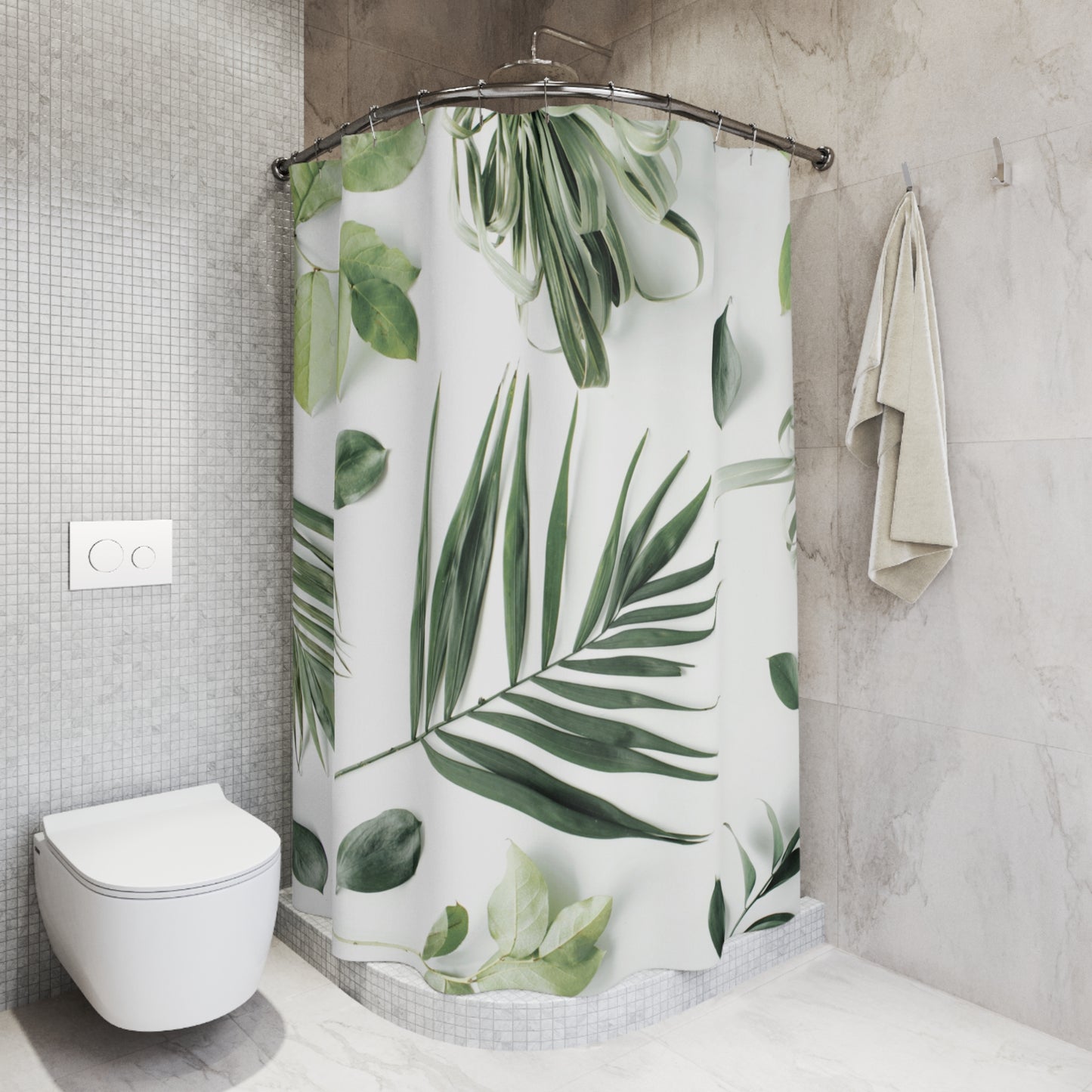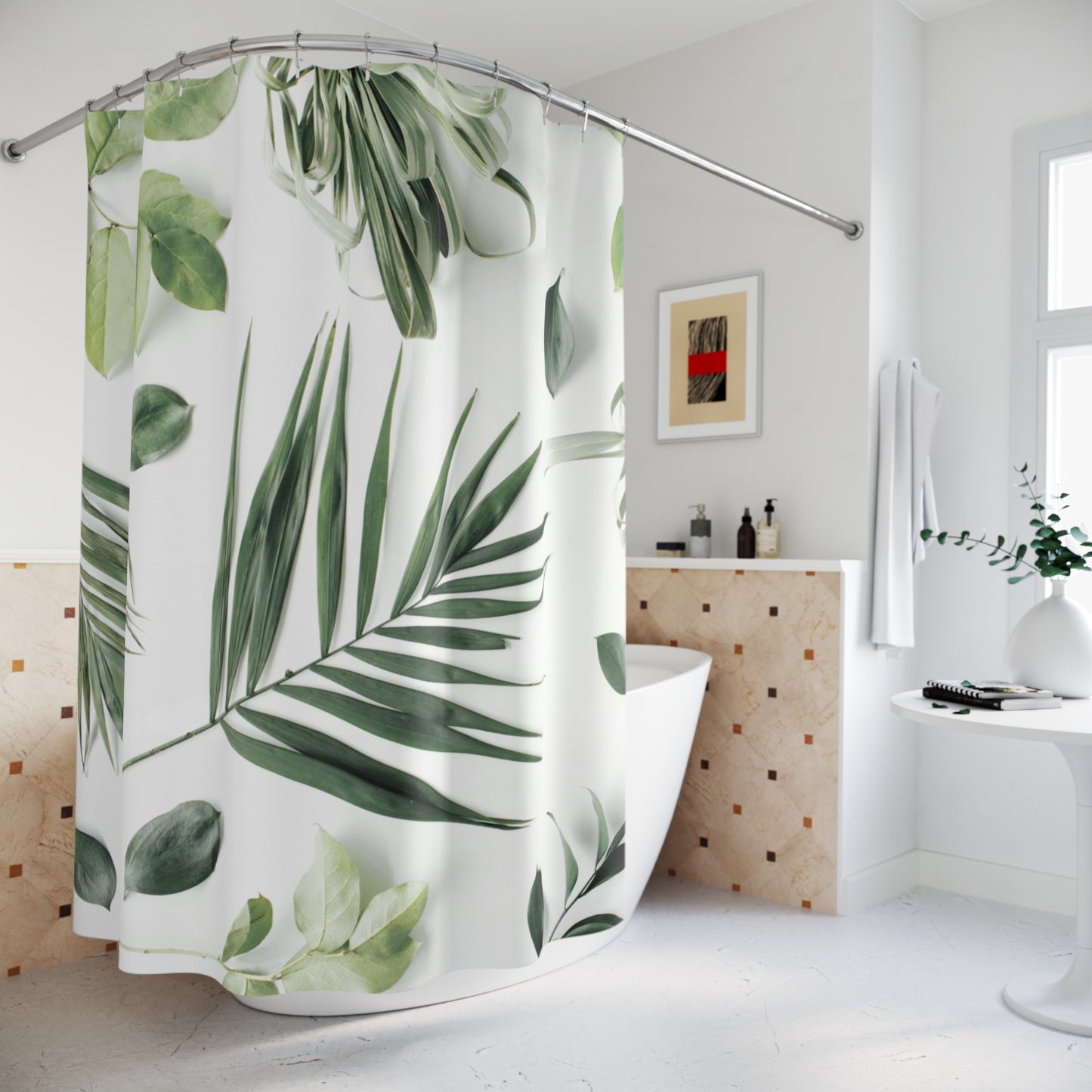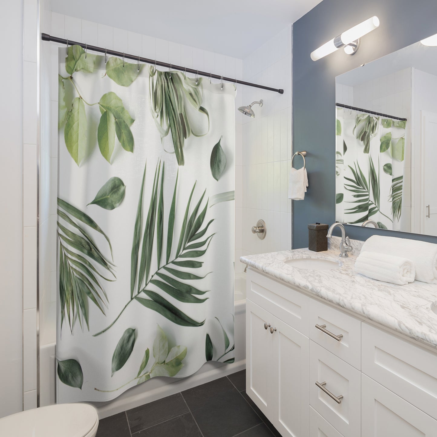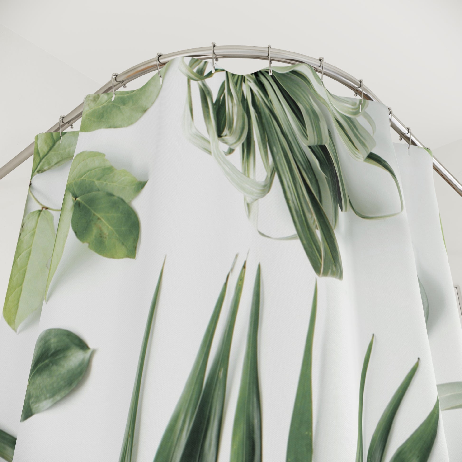 GRÜNE BLÄTTER DUSCHVORHANG • 180x200 cm Weiss