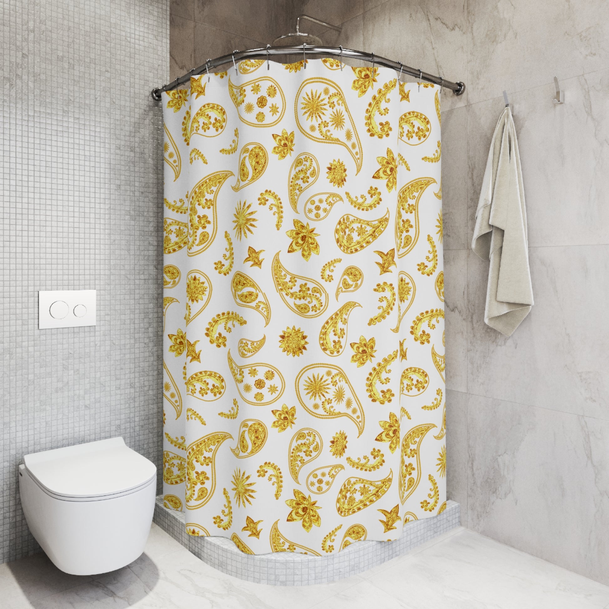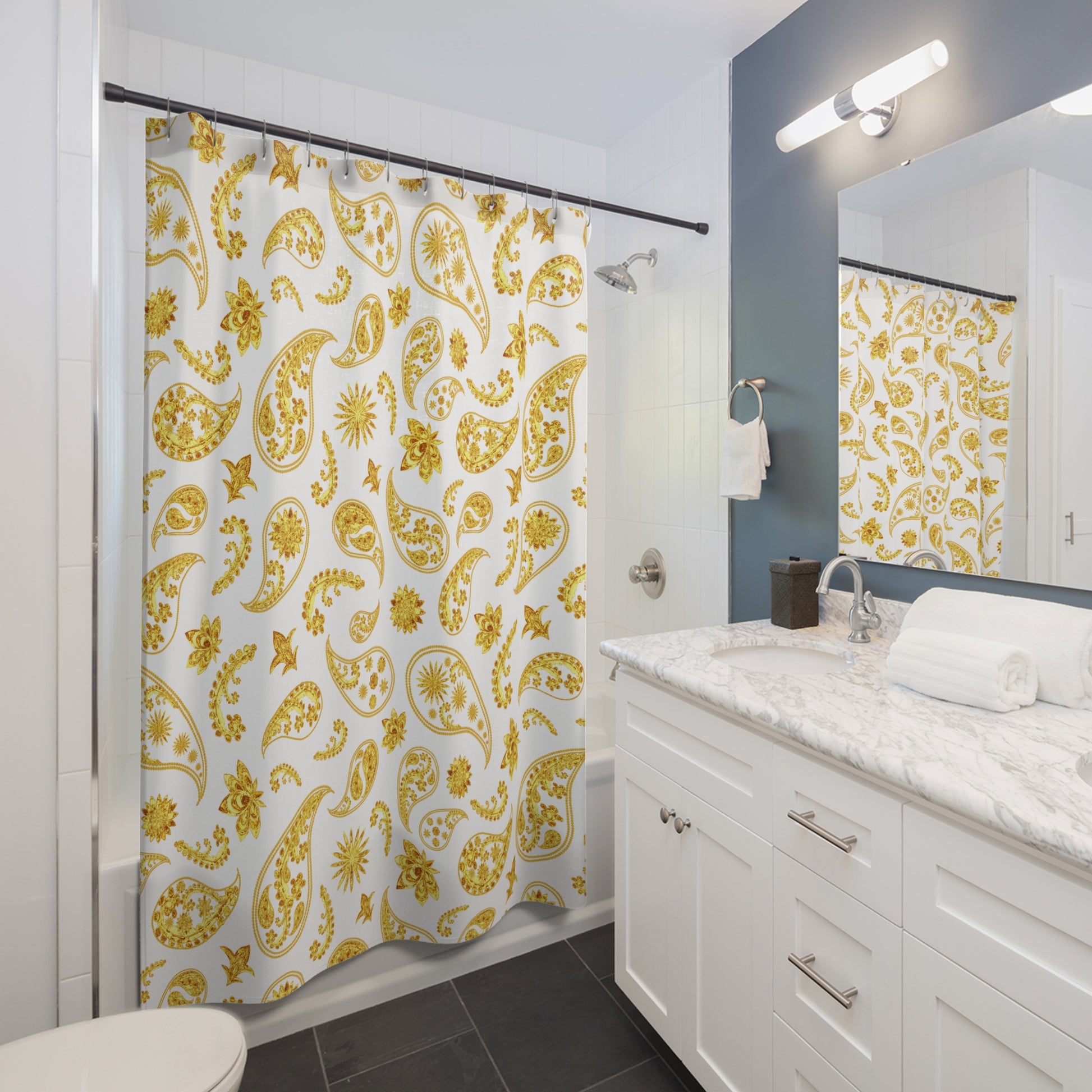 PAISLEY MUSTER GELBGOLD LUXURIÖS • Hochwertiger, Schöner Duschvorhang 180x200 cm