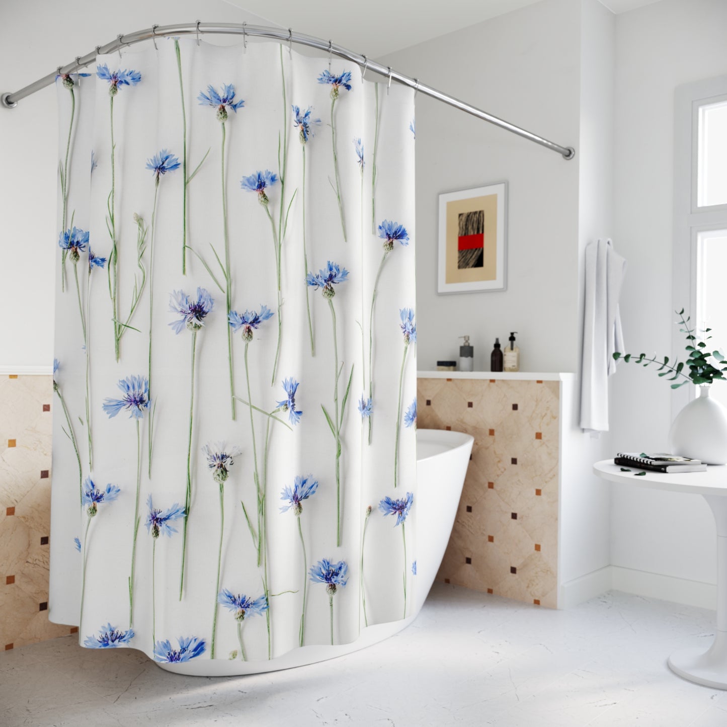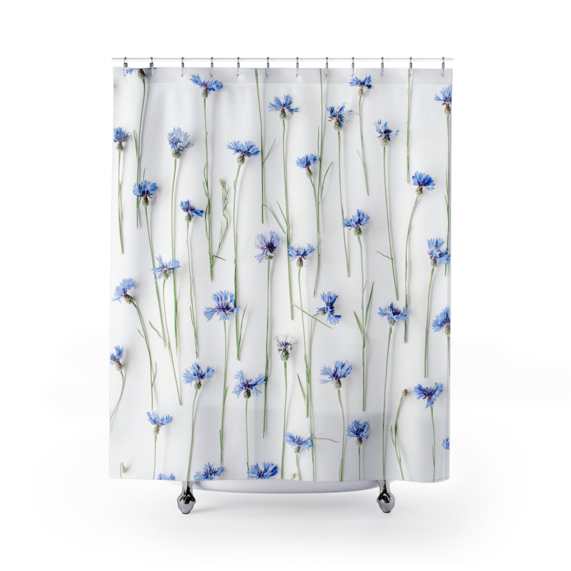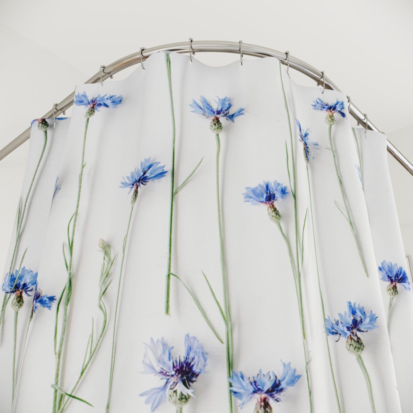 DUSCHVORHANG MIT BLUMENMUSTER - KORNBBLUMEN BLAU • Hochwertiger, Schöner Duschvorhang 180x200 cm