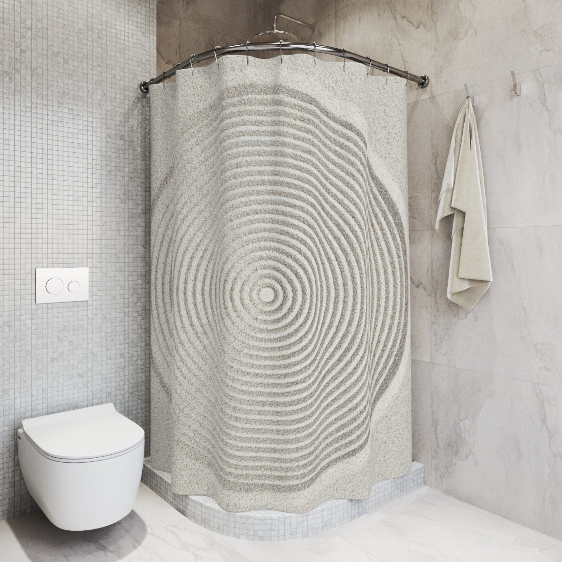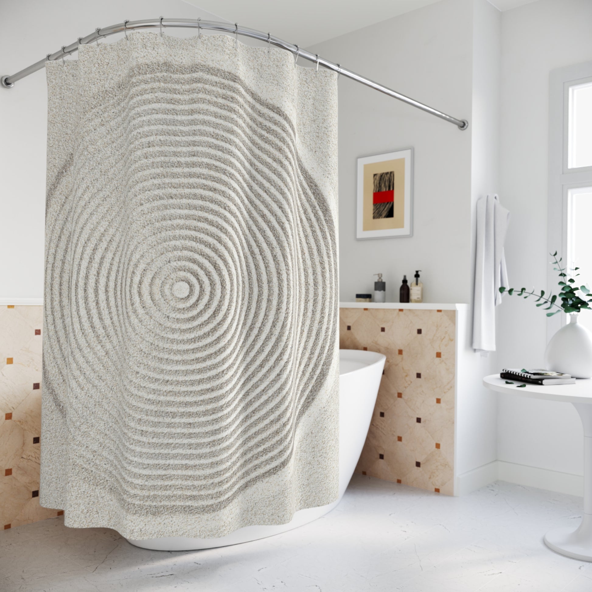 ZEN GARTEN FOTOQUALITÄT • Hochwertiger, Schöner Duschvorhang 180x200 cm CremeWeiss