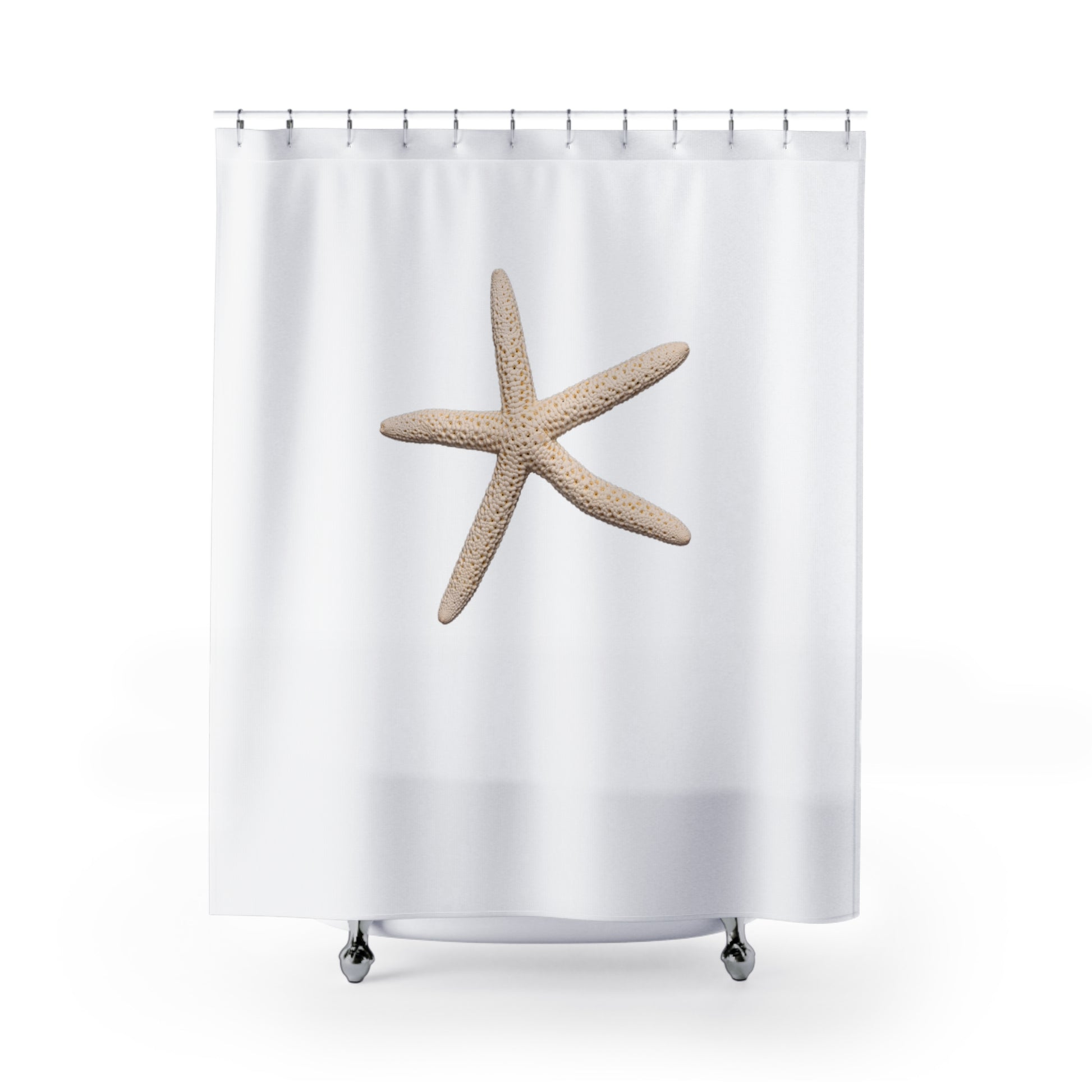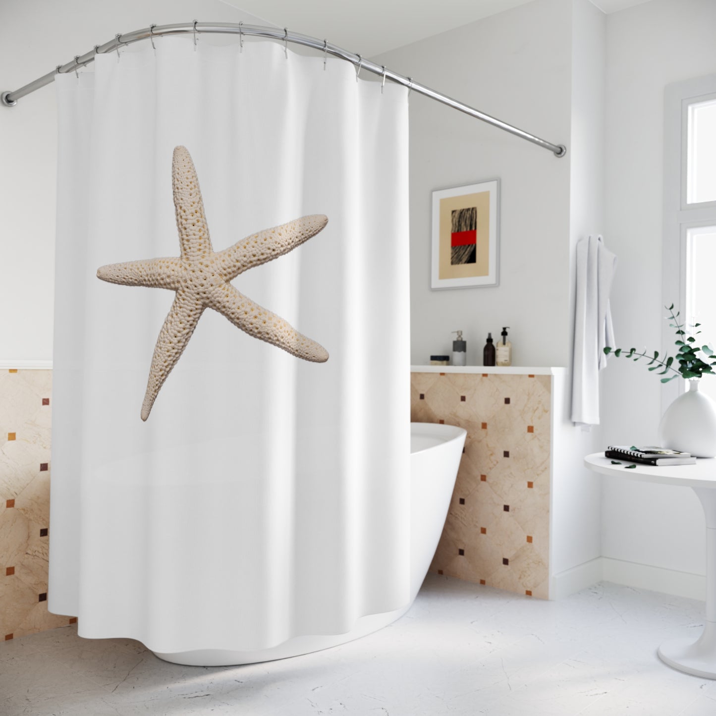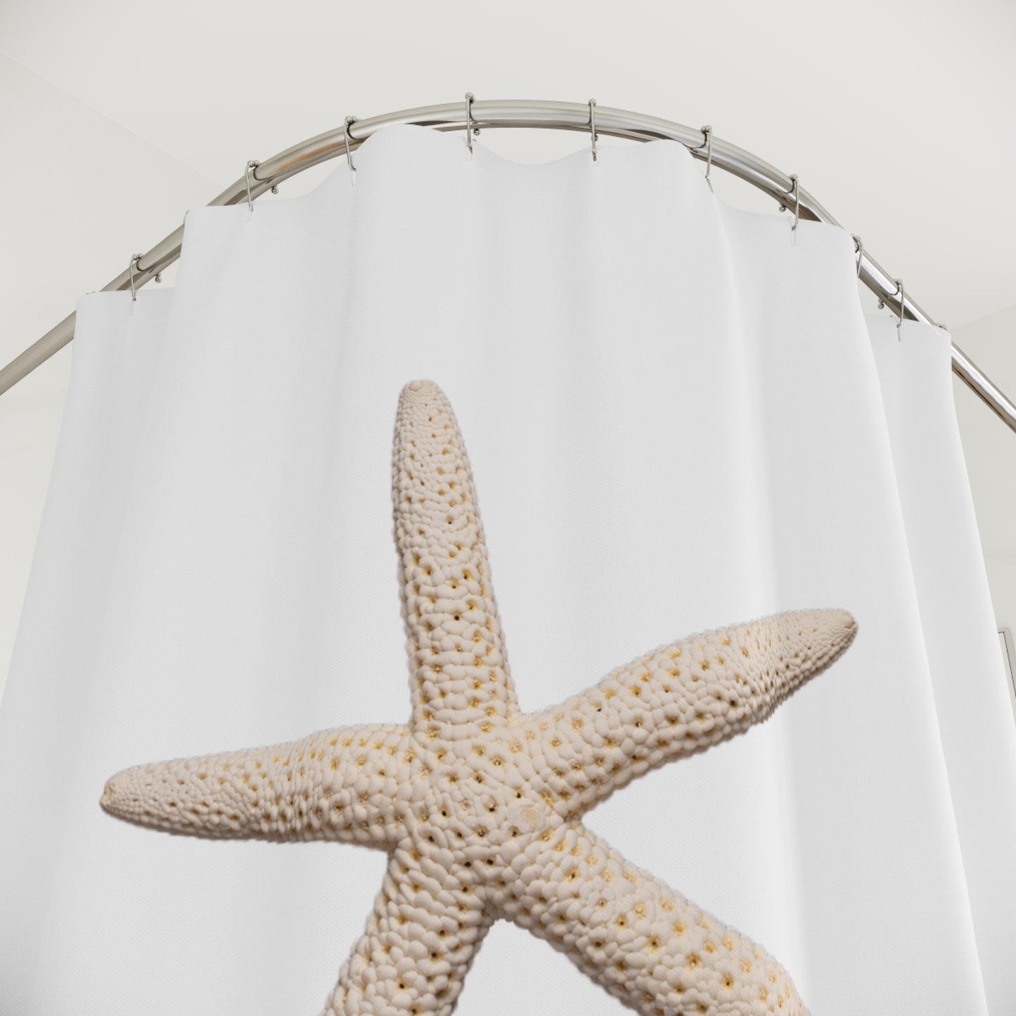 SEESTERN MEERESMOTIV • Hochwertiger, Schöner Duschvorhang 180x200 cm Weiss