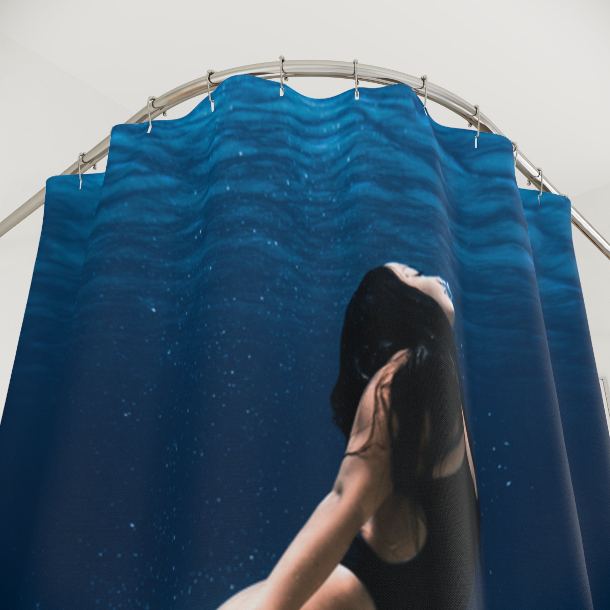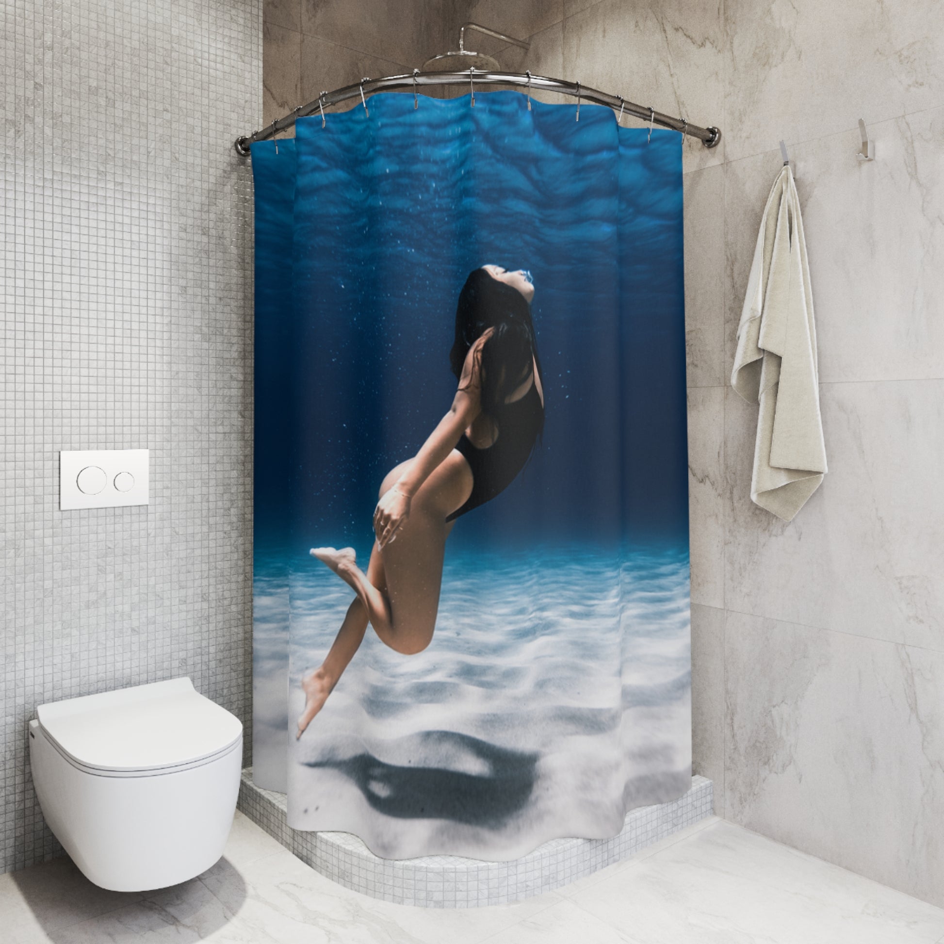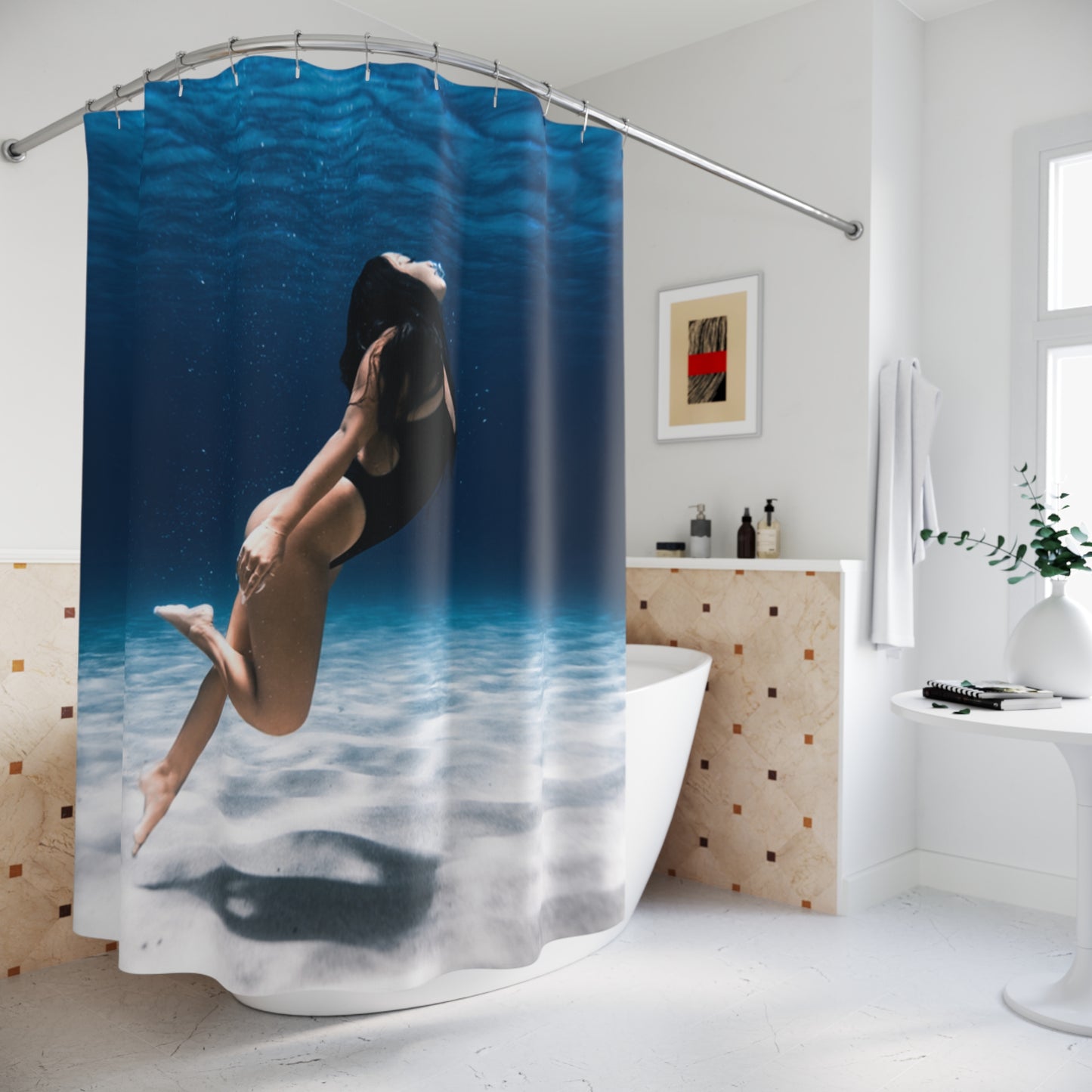 SCHÖNE FRAU UNTERWASSER Urlaubsmotiv • Hochwertiger, Schöner Duschvorhang 180x200 cm Weiss