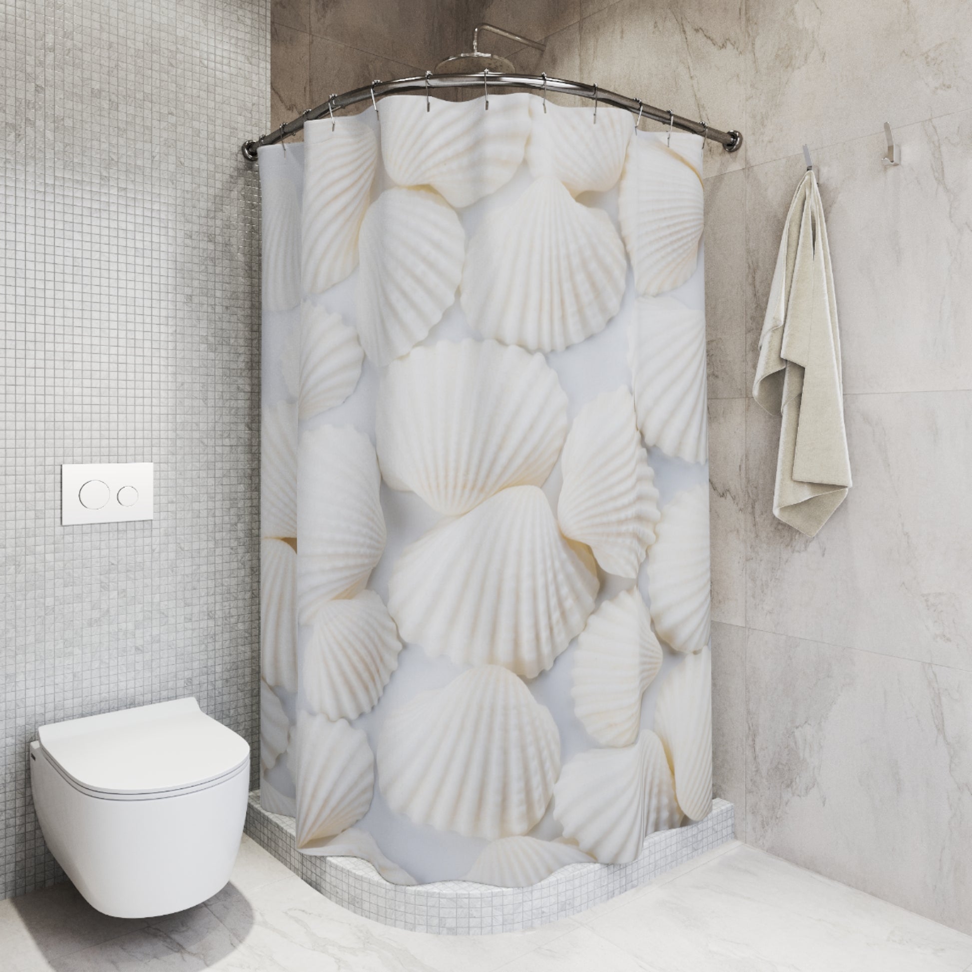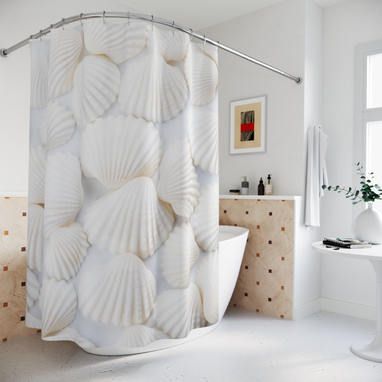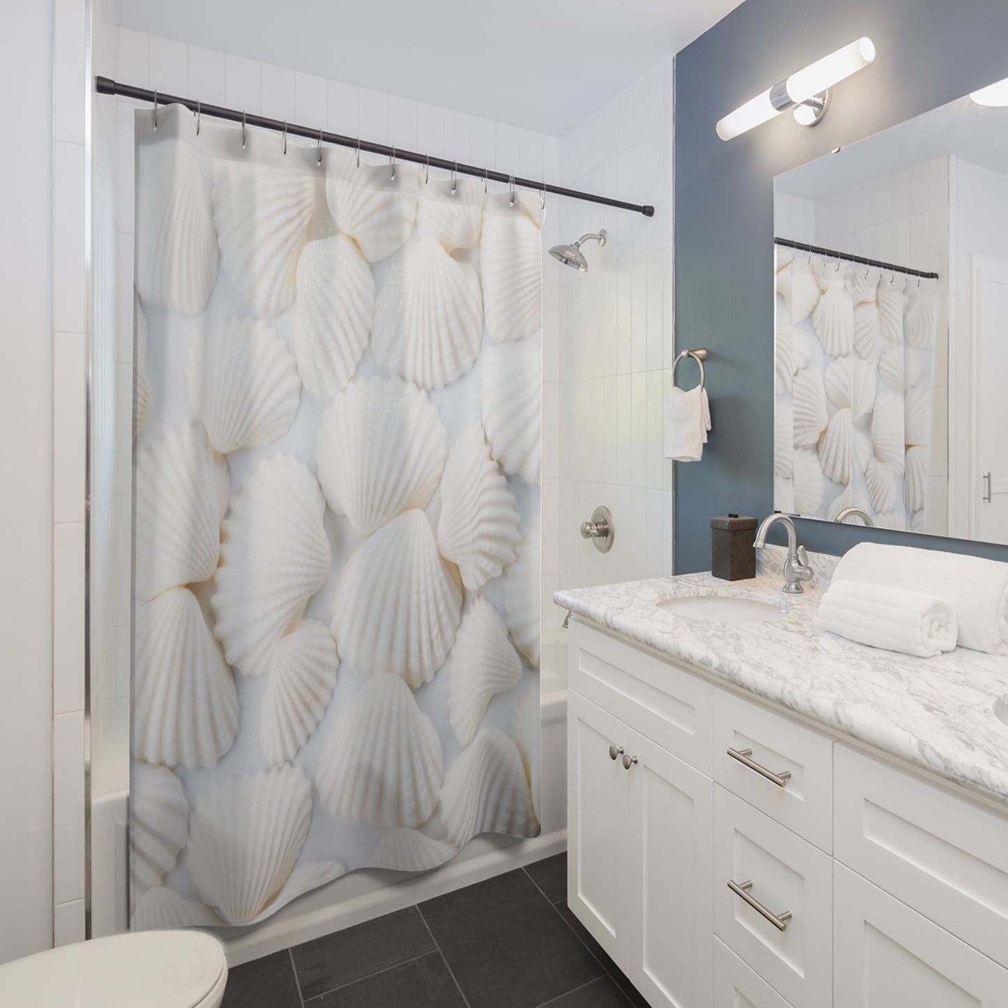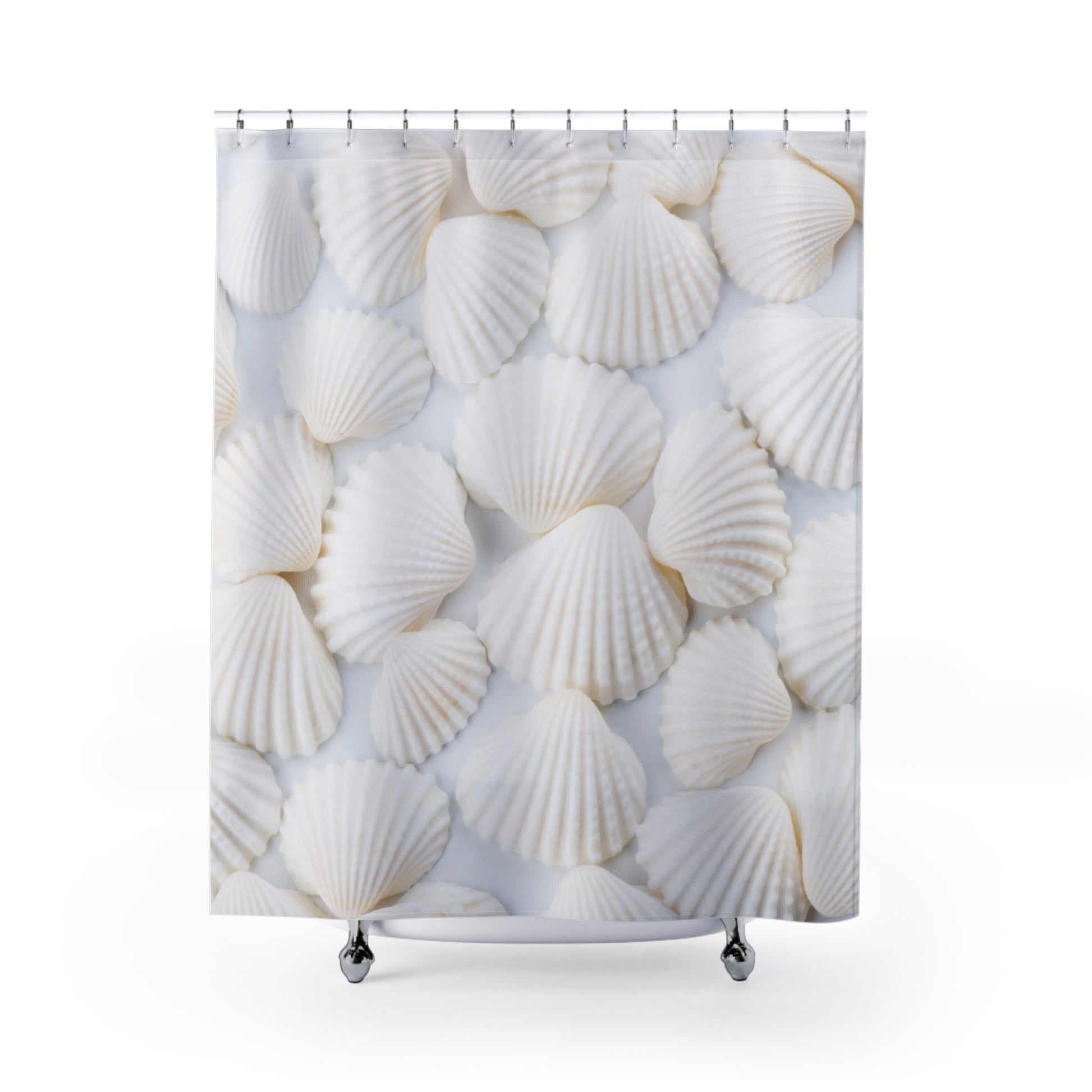 MUSCHELN MEER STRANDMOTIV • Hochwertiger, Schöner Duschvorhang 180x200 cm Weiss