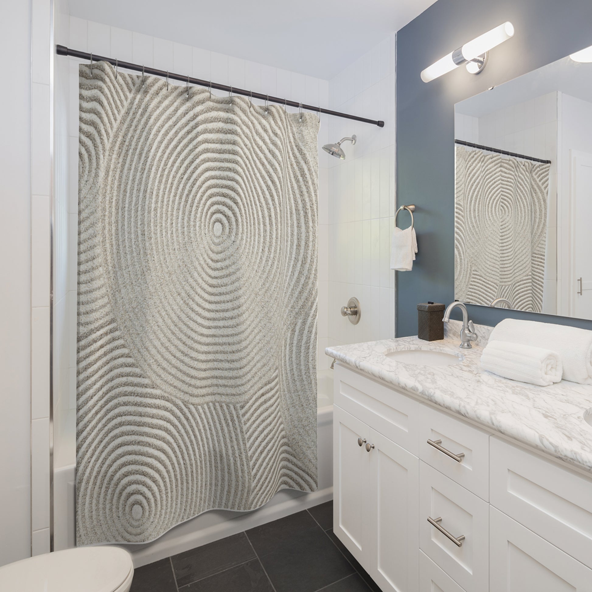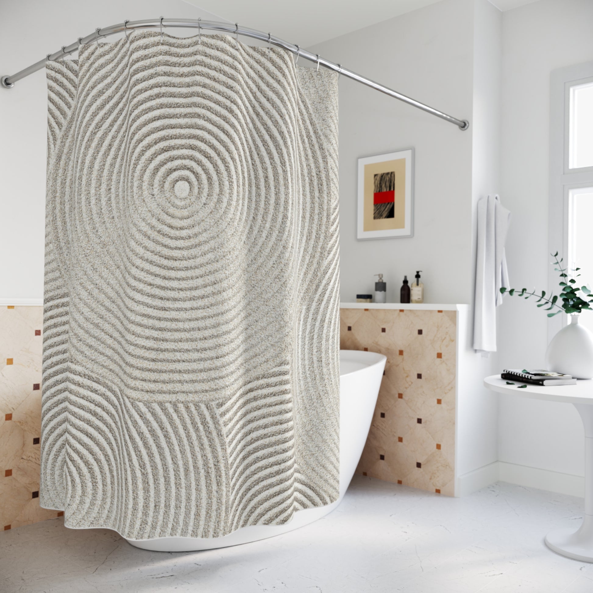 ZEN GARDEN • Hochwertiger, Schöner Duschvorhang 180x200 cm CremeWeiss