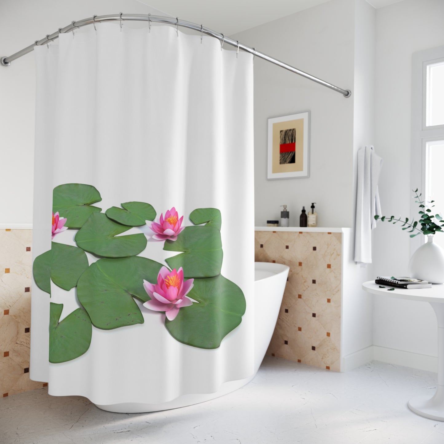 LOTUSBLÜTEN BLUMENBLÄTTER • Hochwertiger, Schöner Duschvorhang 180x200 cm Weiss