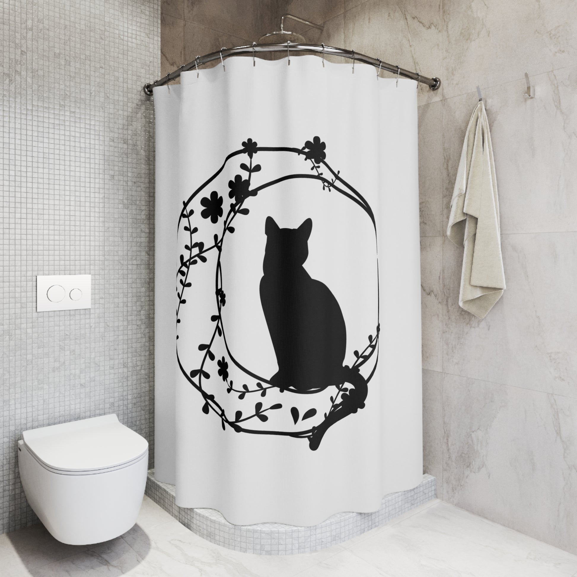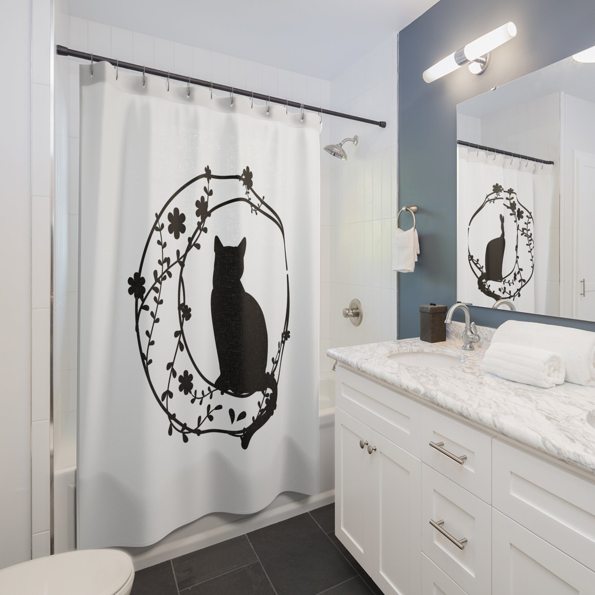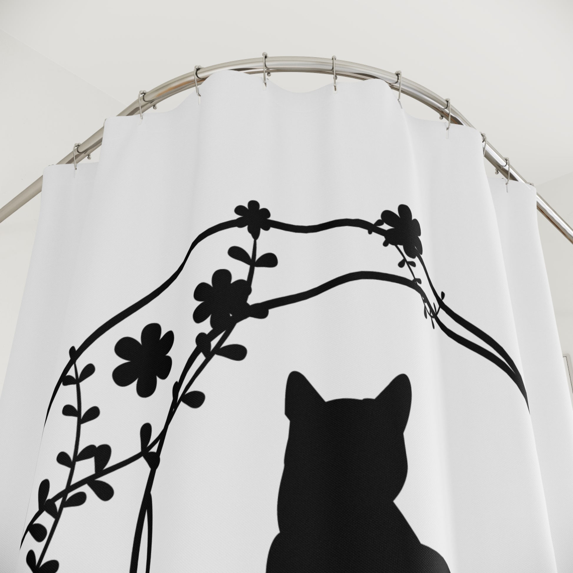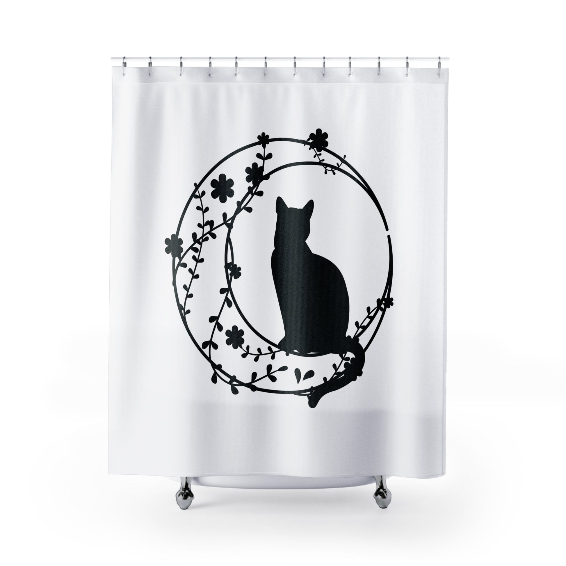 KATZE IM MOND • Hochwertiger, Schöner Duschvorhang 180x200 cm Weiss