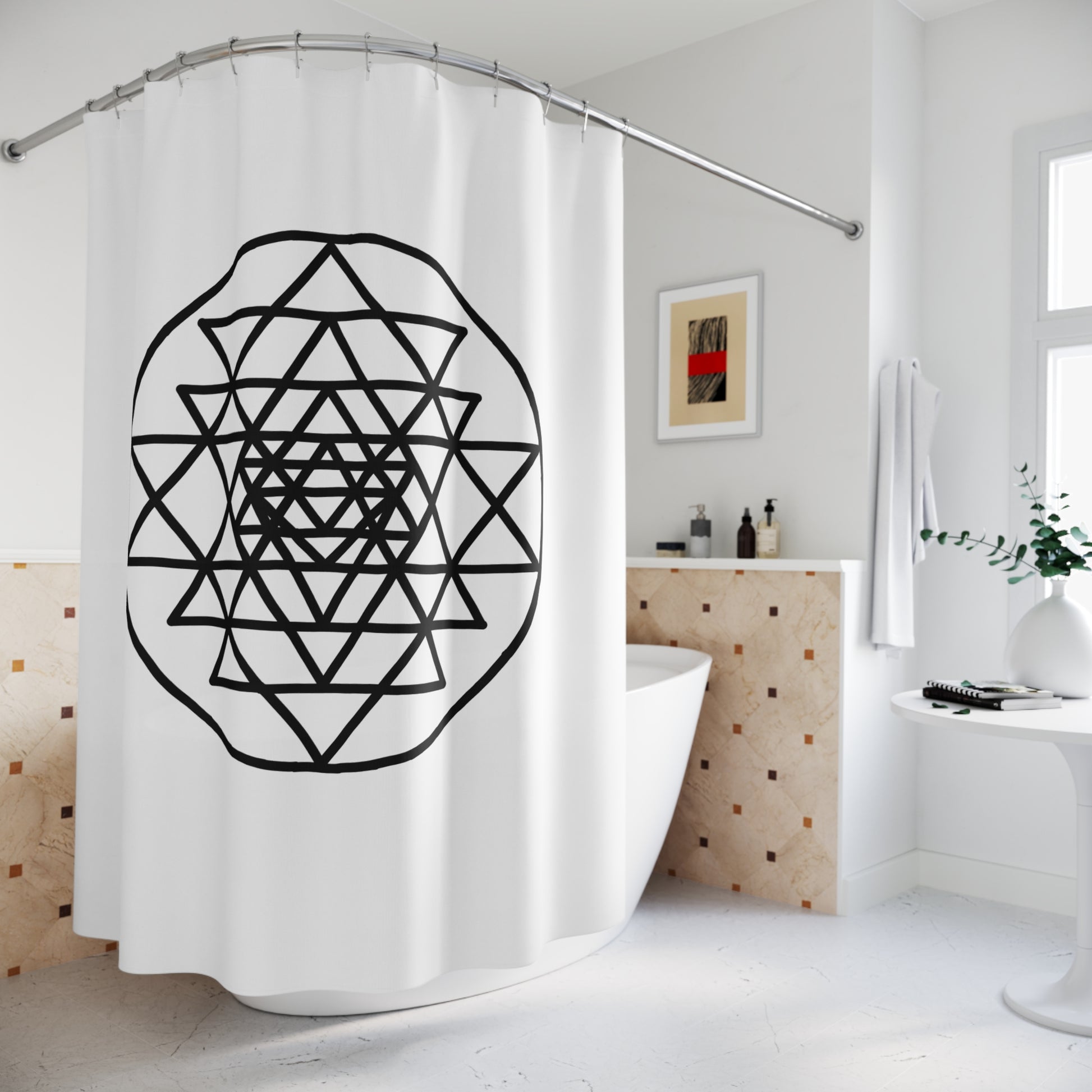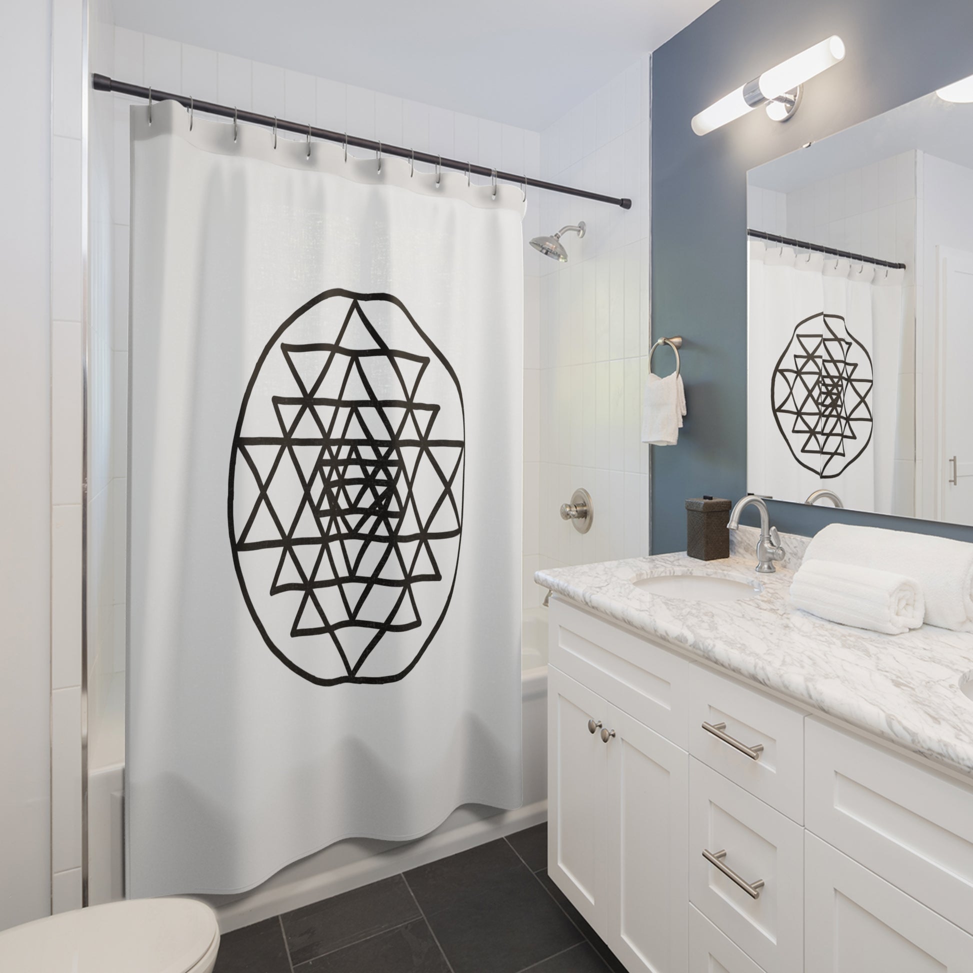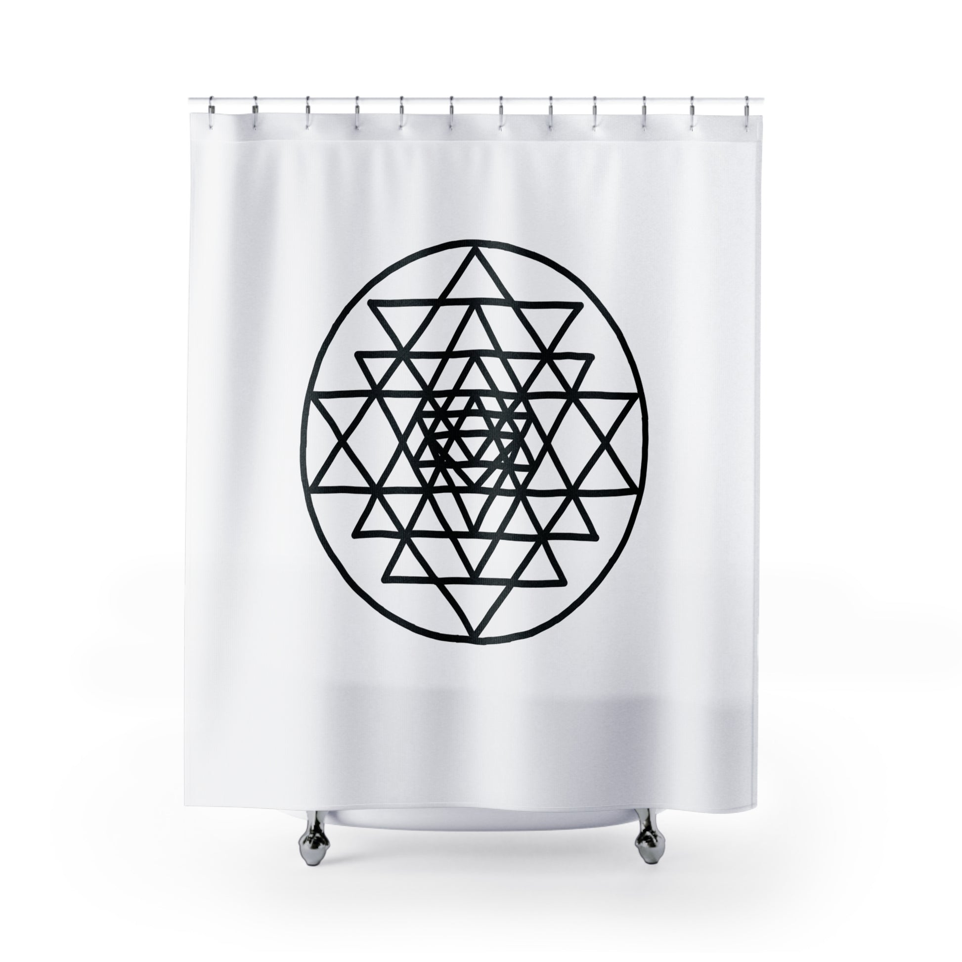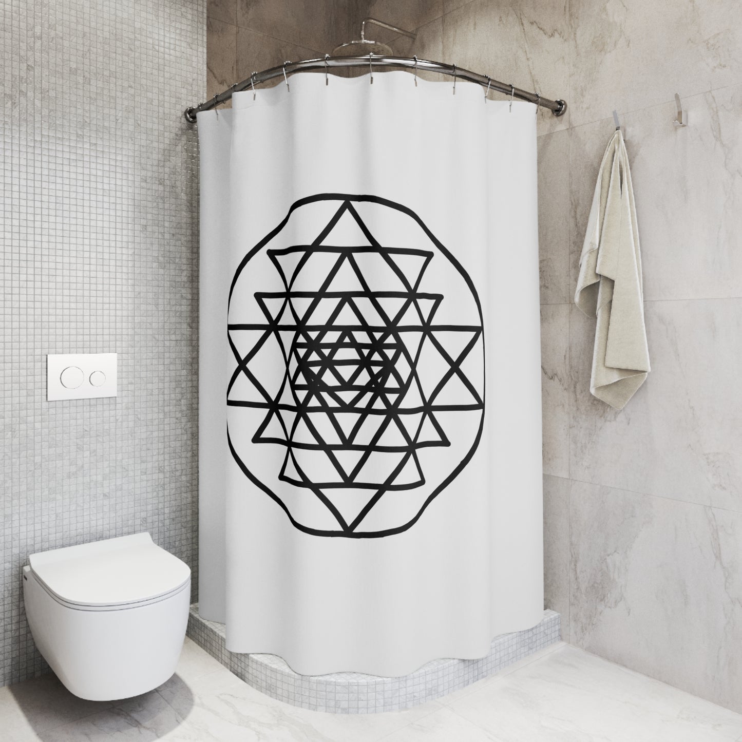Sri Yantra, ein heiliges geometrisches Symbol Hinduistismus / Tantra • Duschvorhang 180x200 cm Weiss