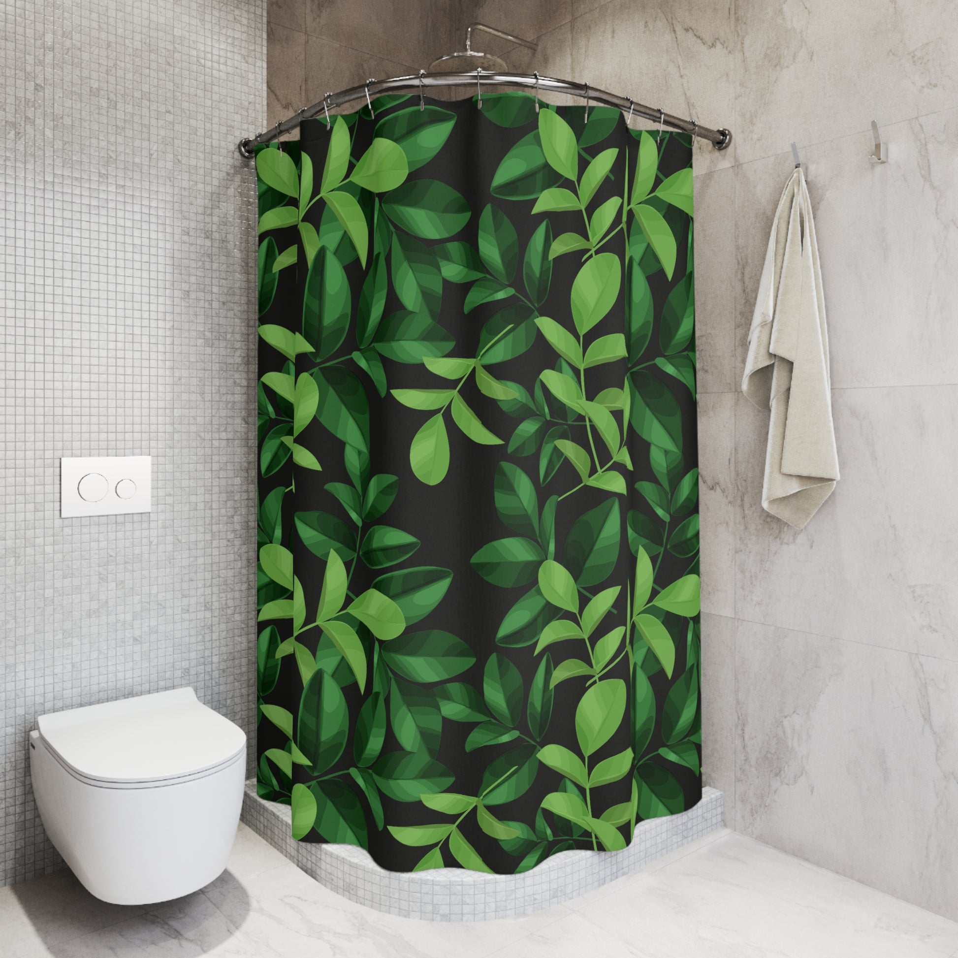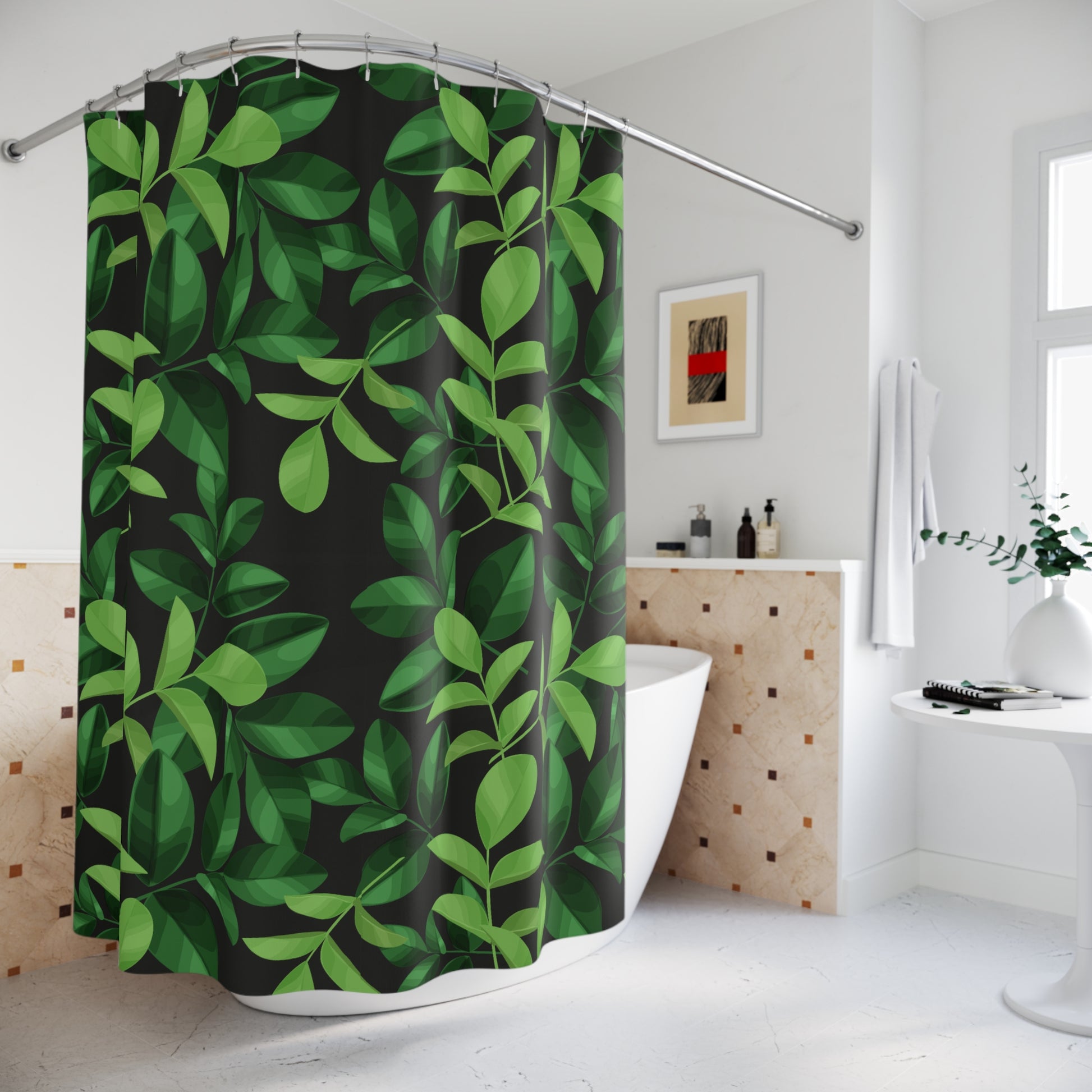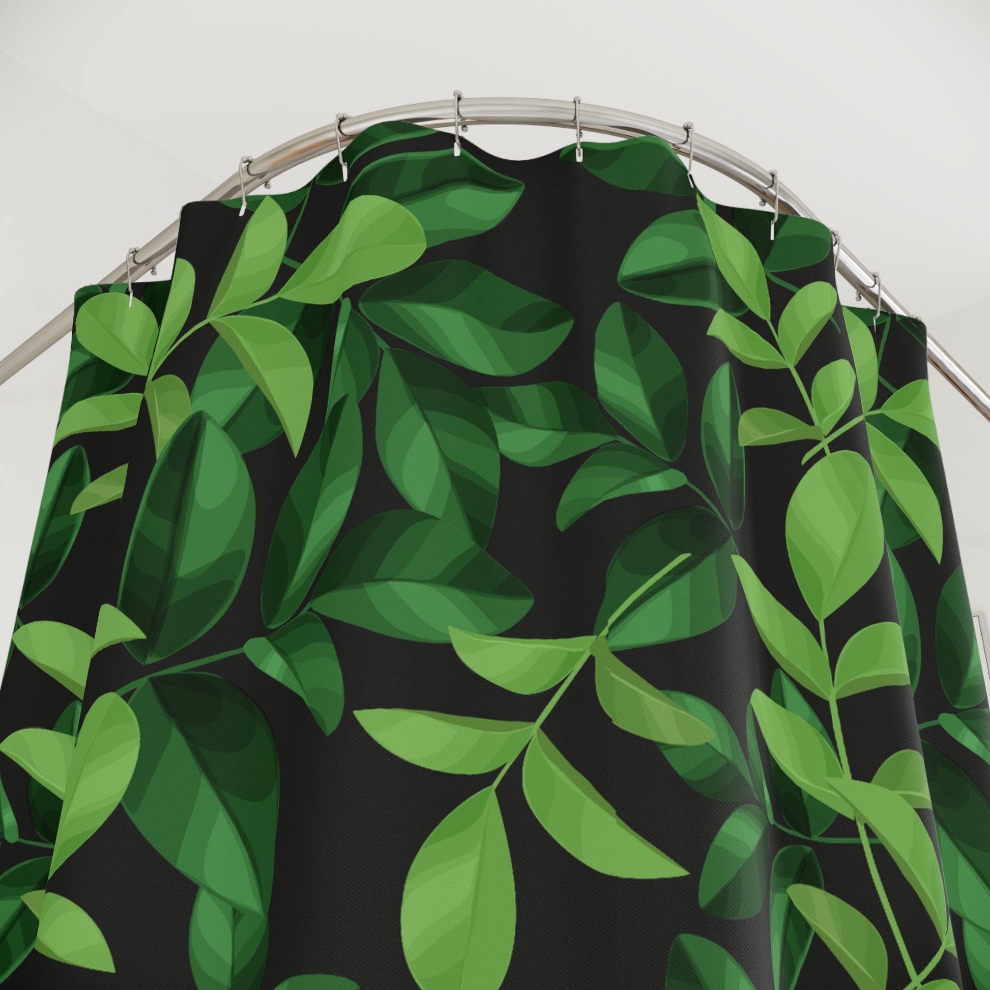 GRÜNE BLÄTTER • Hochwertiger, Schöner Duschvorhang 180x200 cm SCHWARZ GRÜN