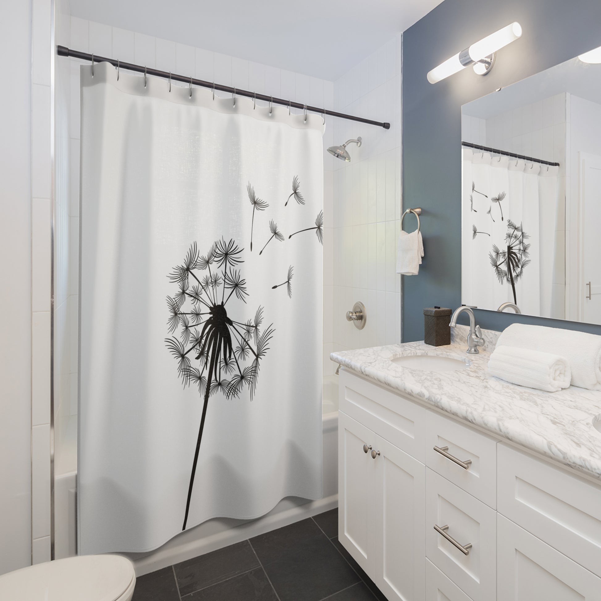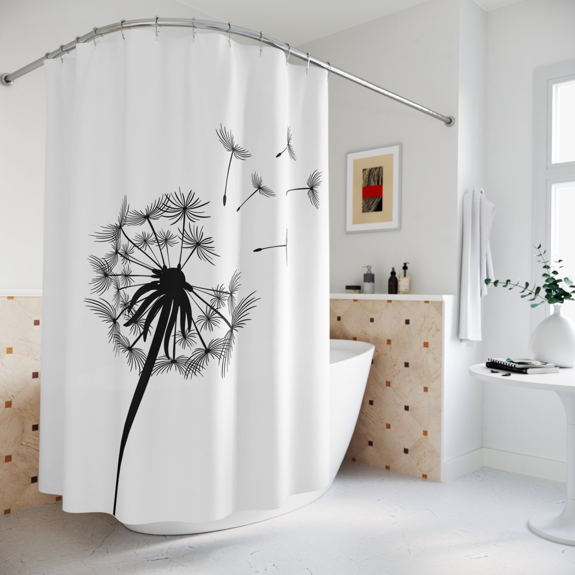 PUSTEBLUME ÄSTHETISCH • Hochwertiger, Schöner Duschvorhang 180x200 cm Weiss
