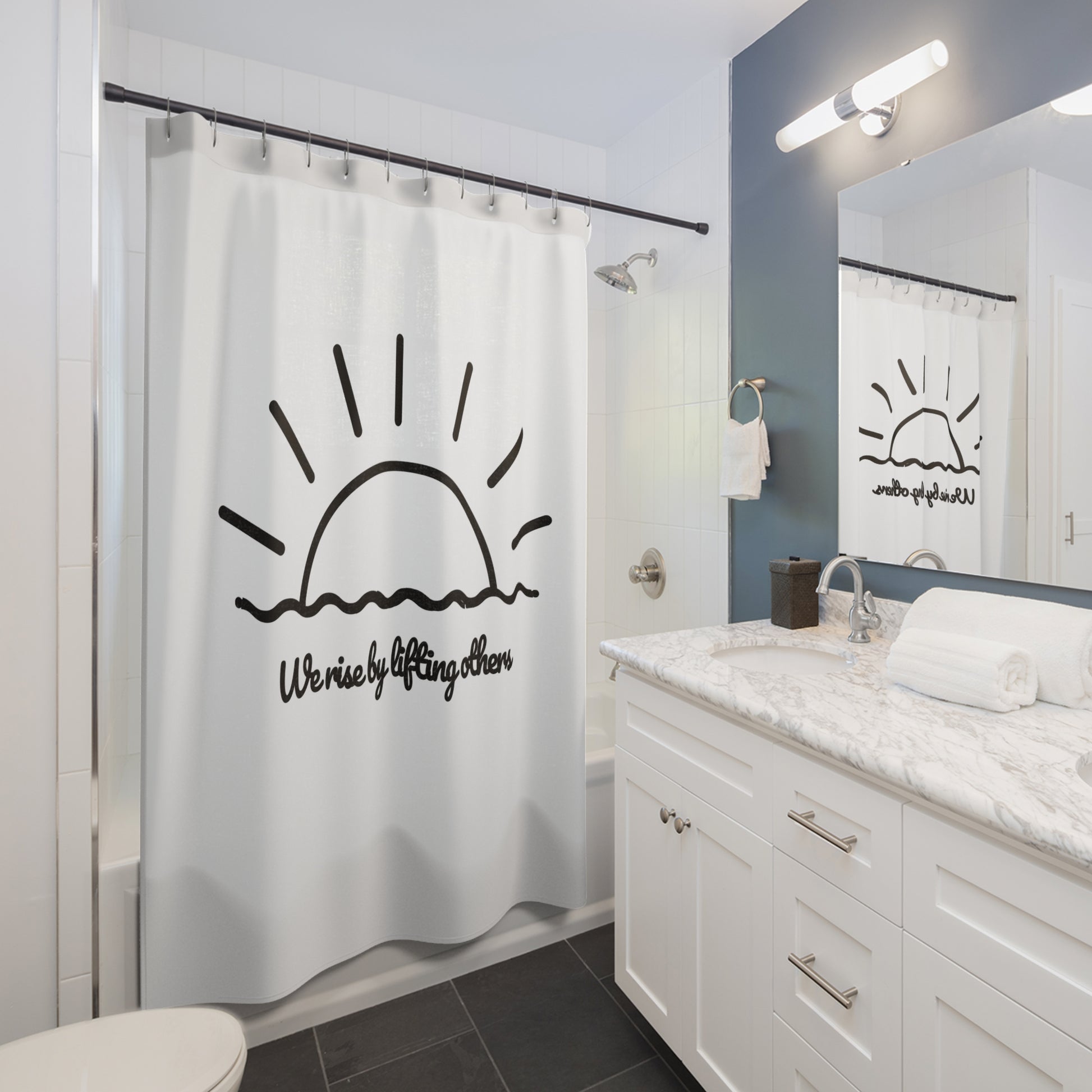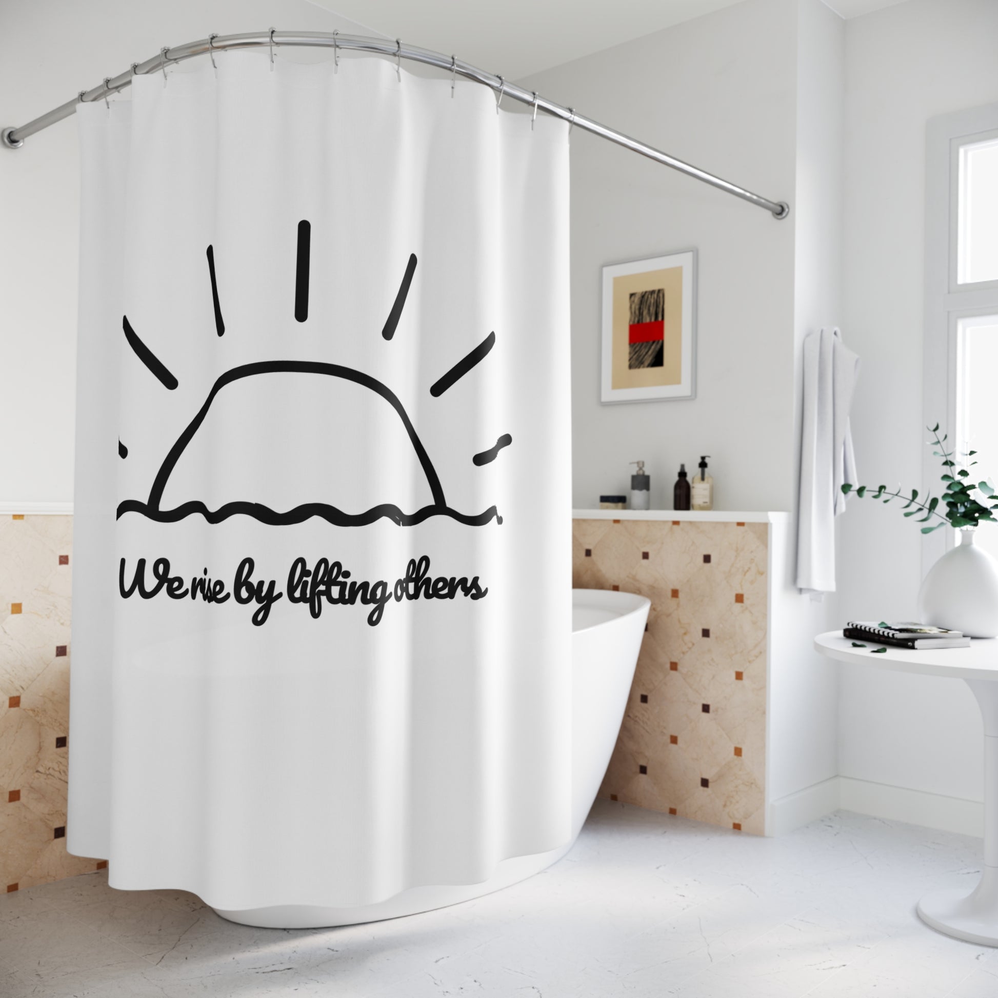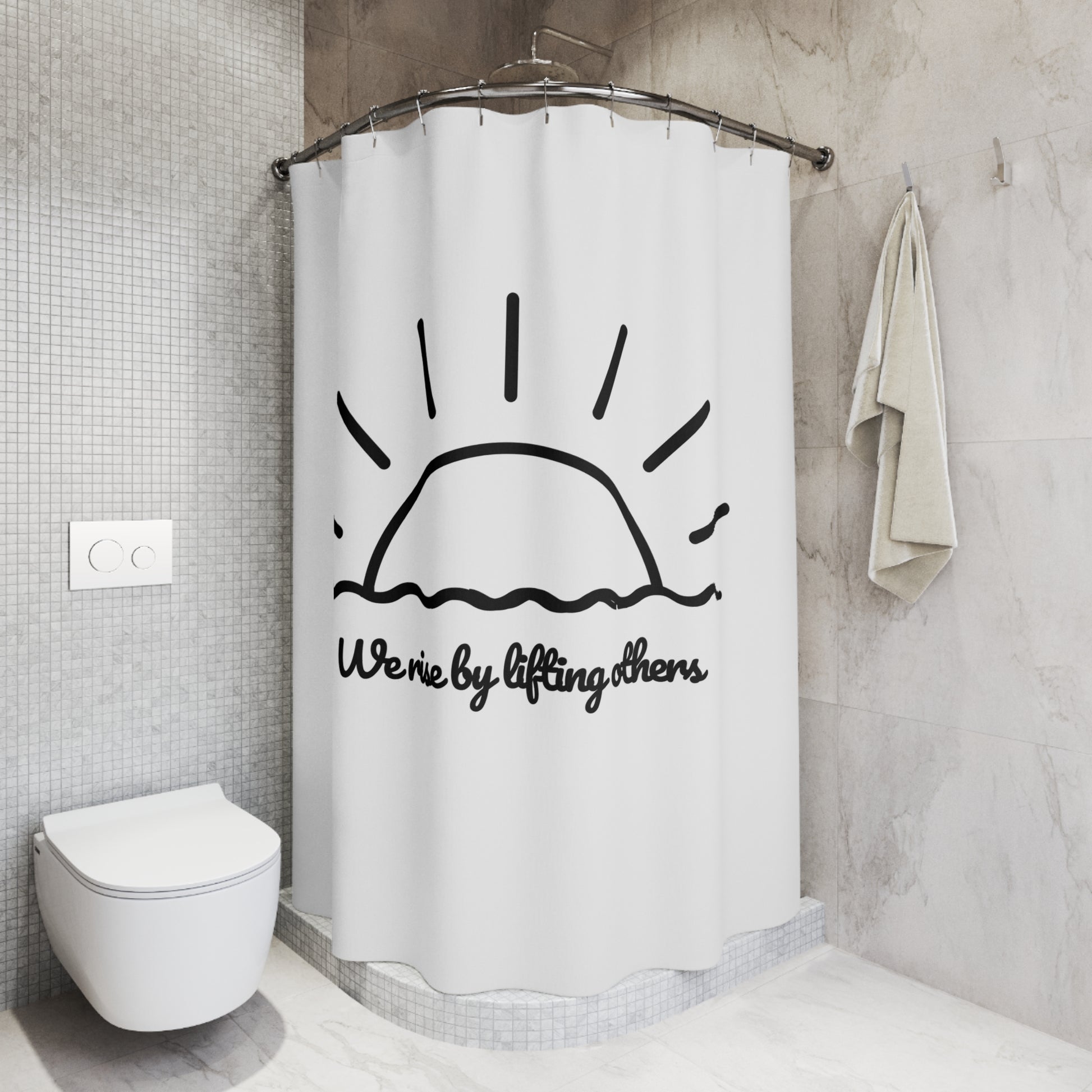 WE RISE BY LIFTING OTHERS - MEER, SONNEAUFGANG • Duschvorhang 180x200 cm Weiss