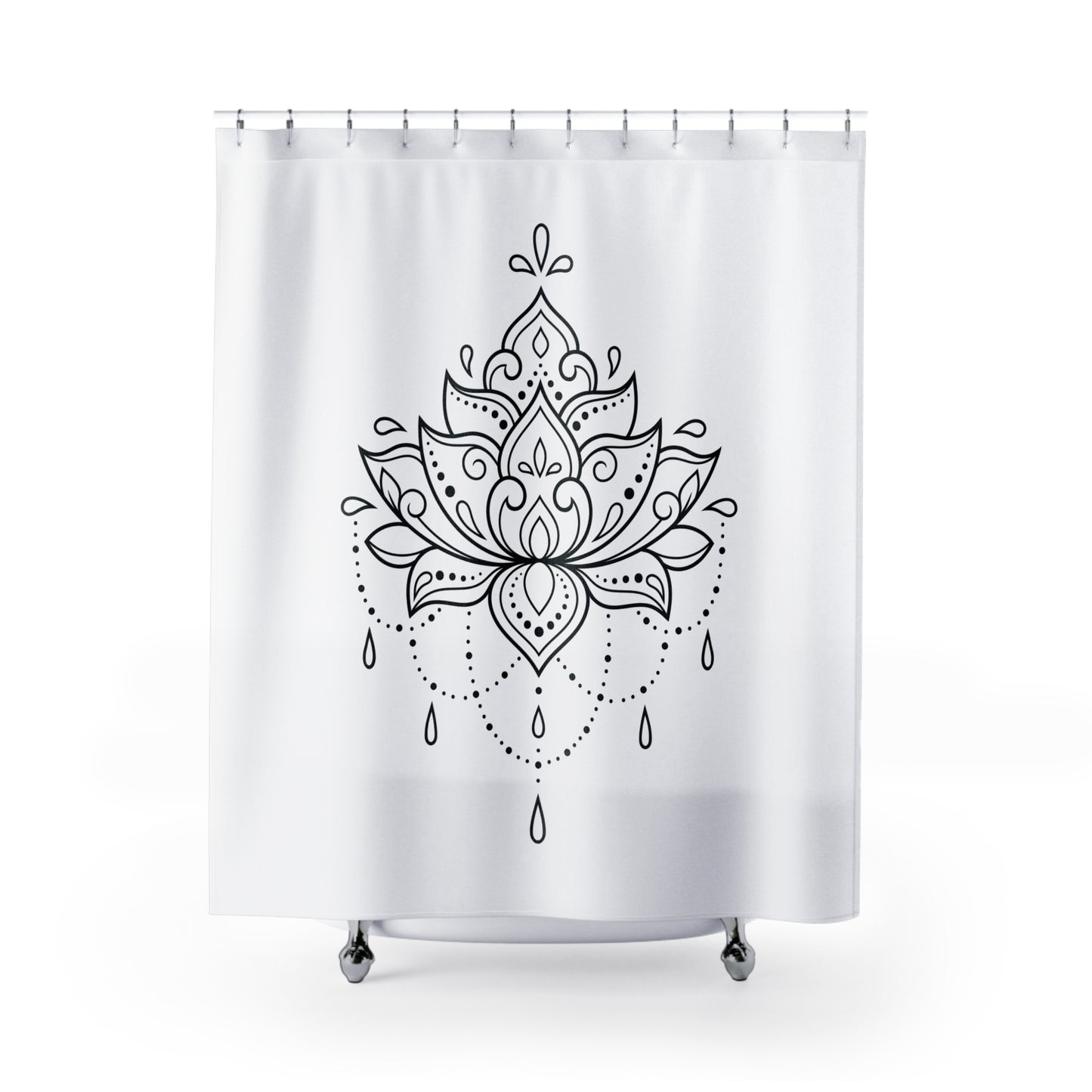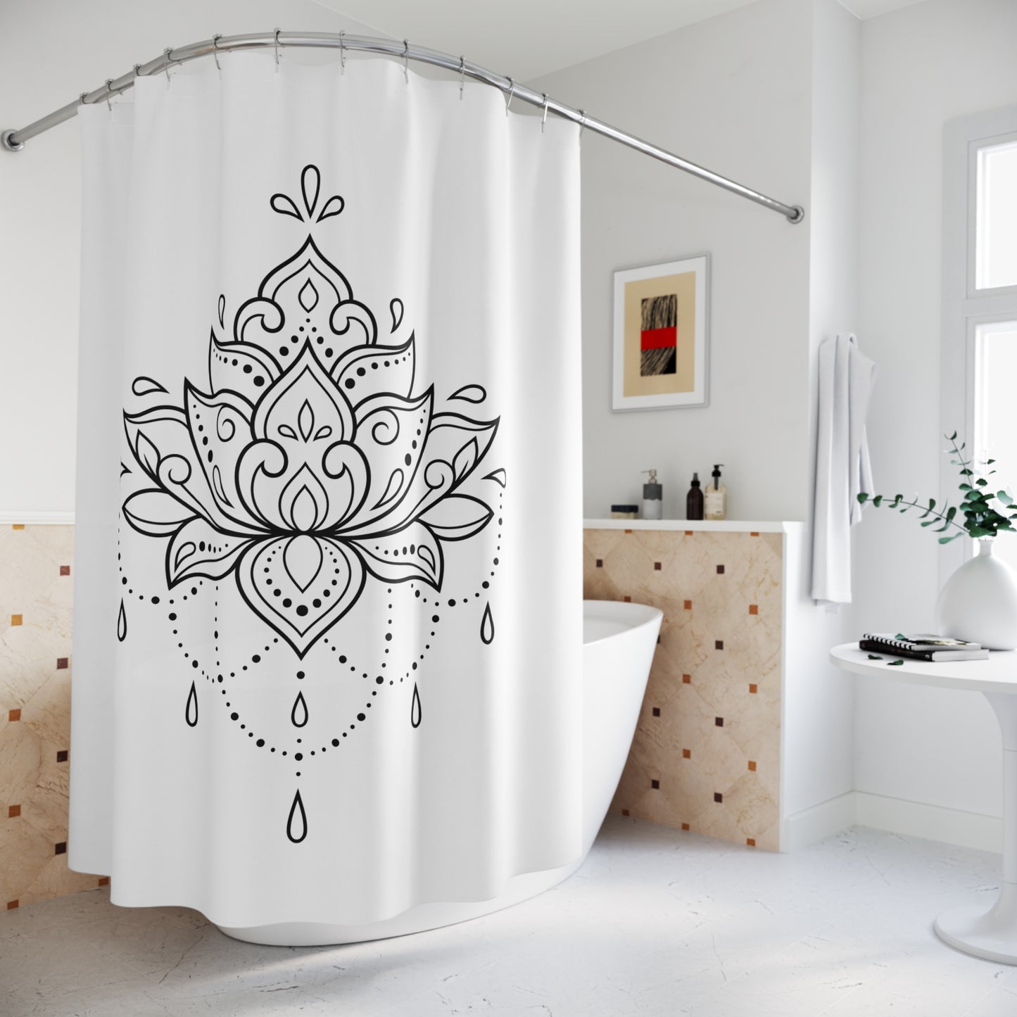 LOTUSBLUME ÄSTETISCH • Hochwertiger, Schöner Duschvorhang 180x200 cm Weiss