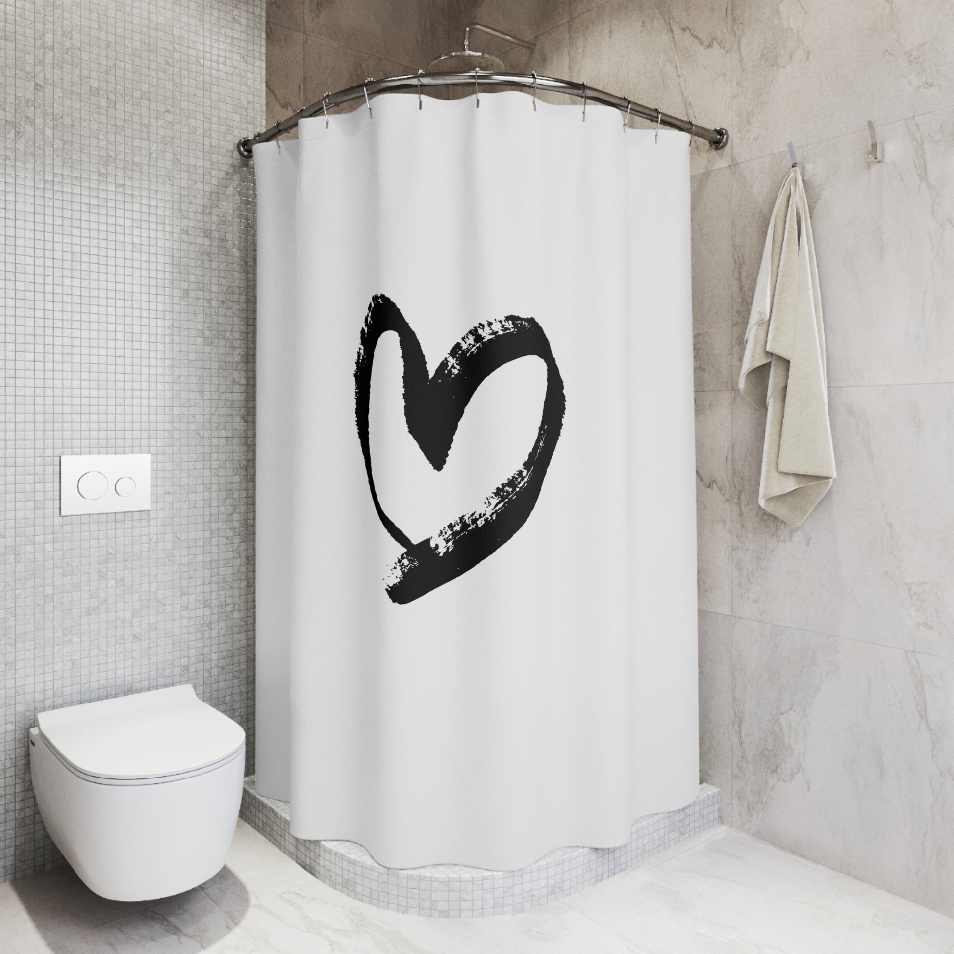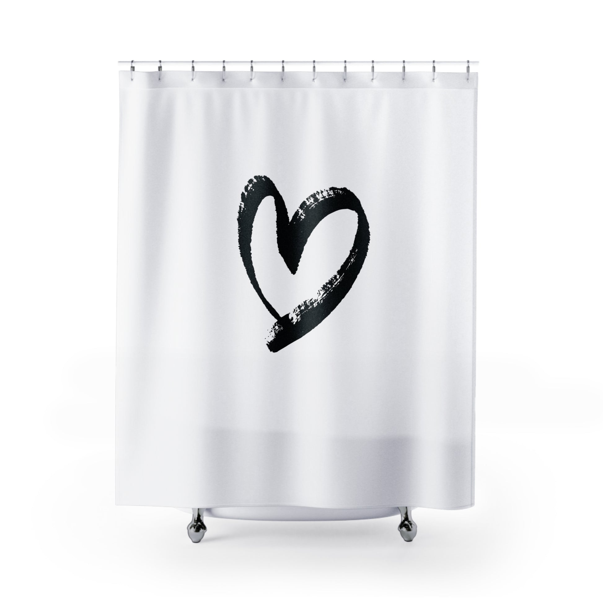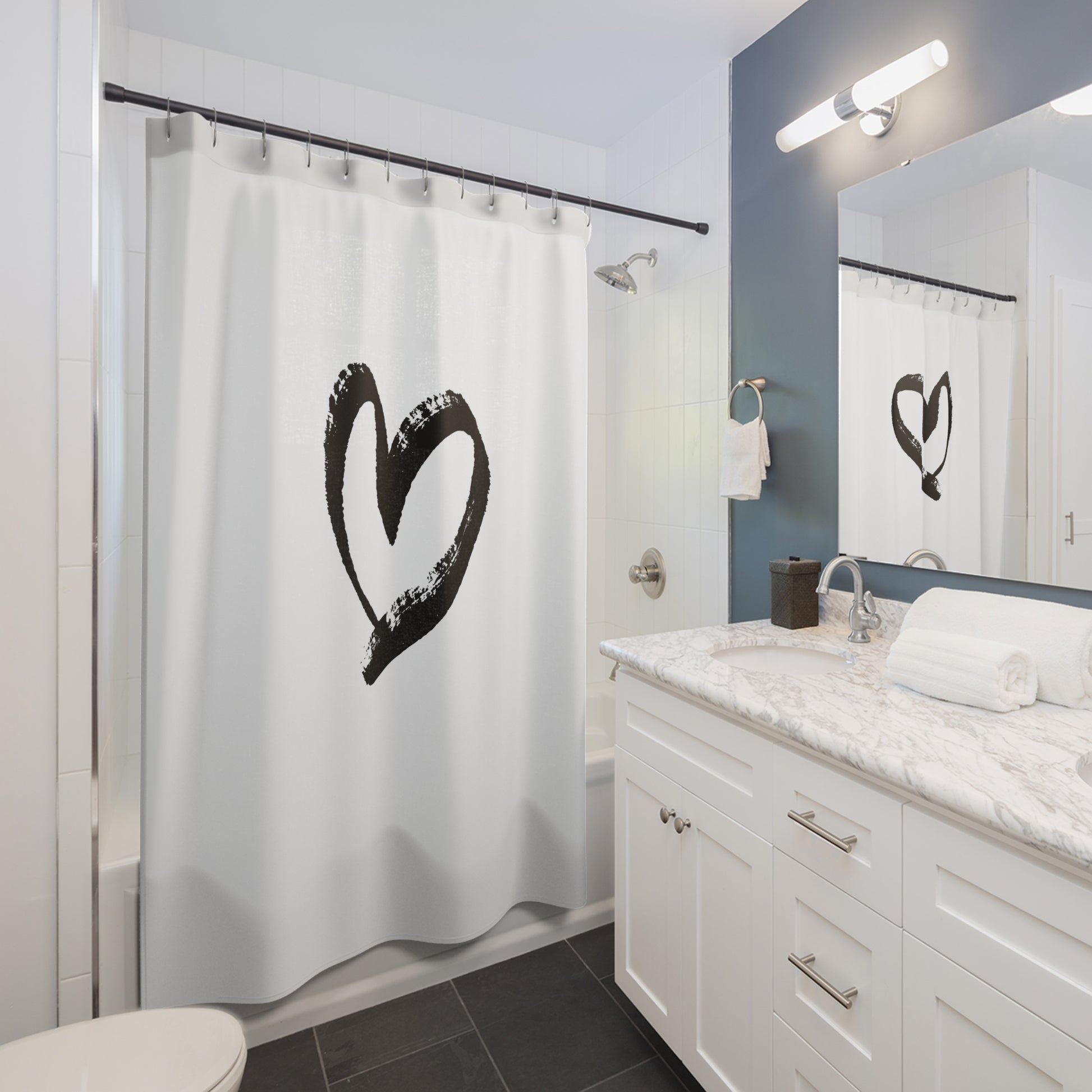 HERZ ZEICHNUNG • Liebesbeweis Geschenk, LOVE Liebesbotschaft • Duschvorhang 180x200 cm Weiss