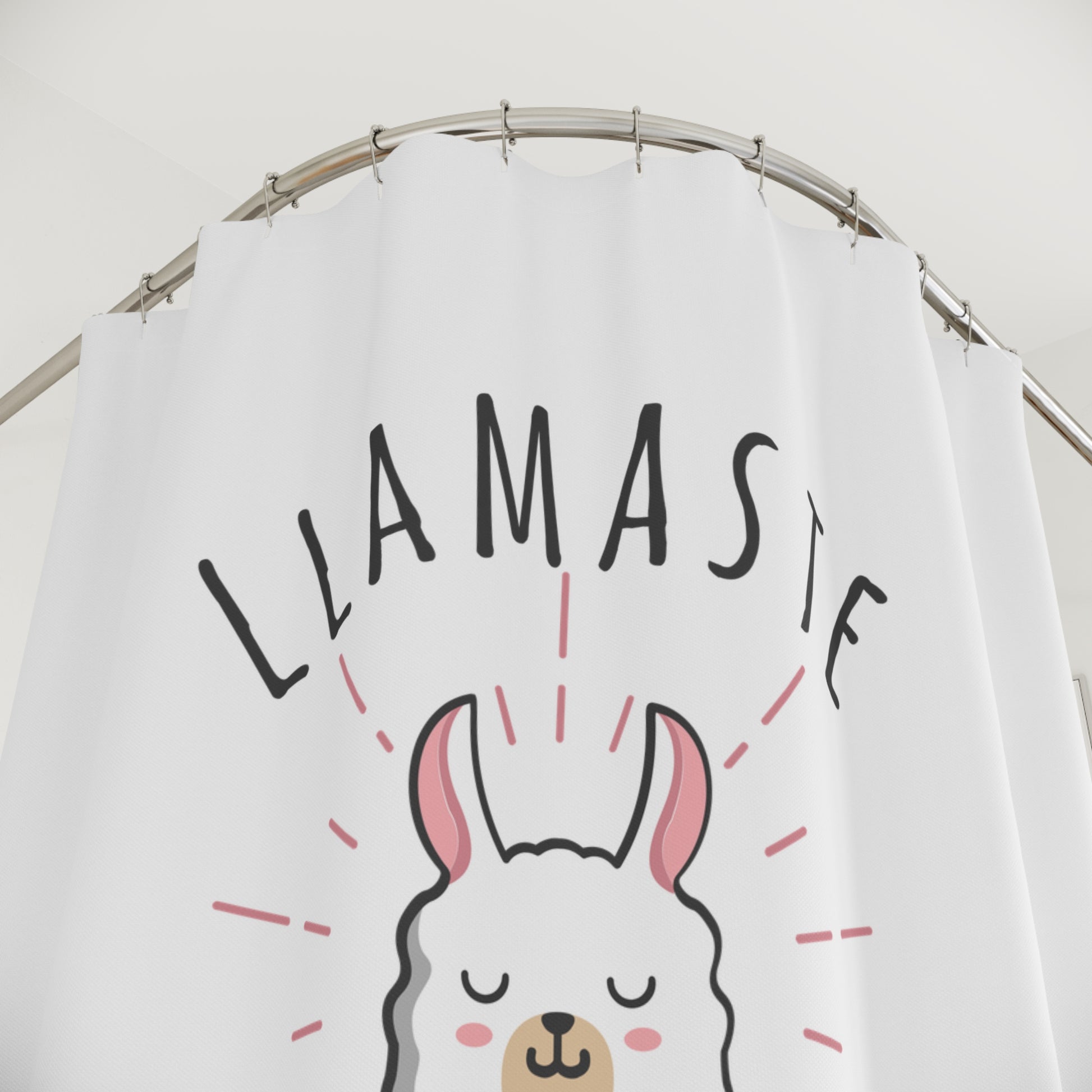 LLAMASTE LUSTIGES LAMA YOGA MEDITATION POSE • Duschvorhang 180x200 cm Weiss