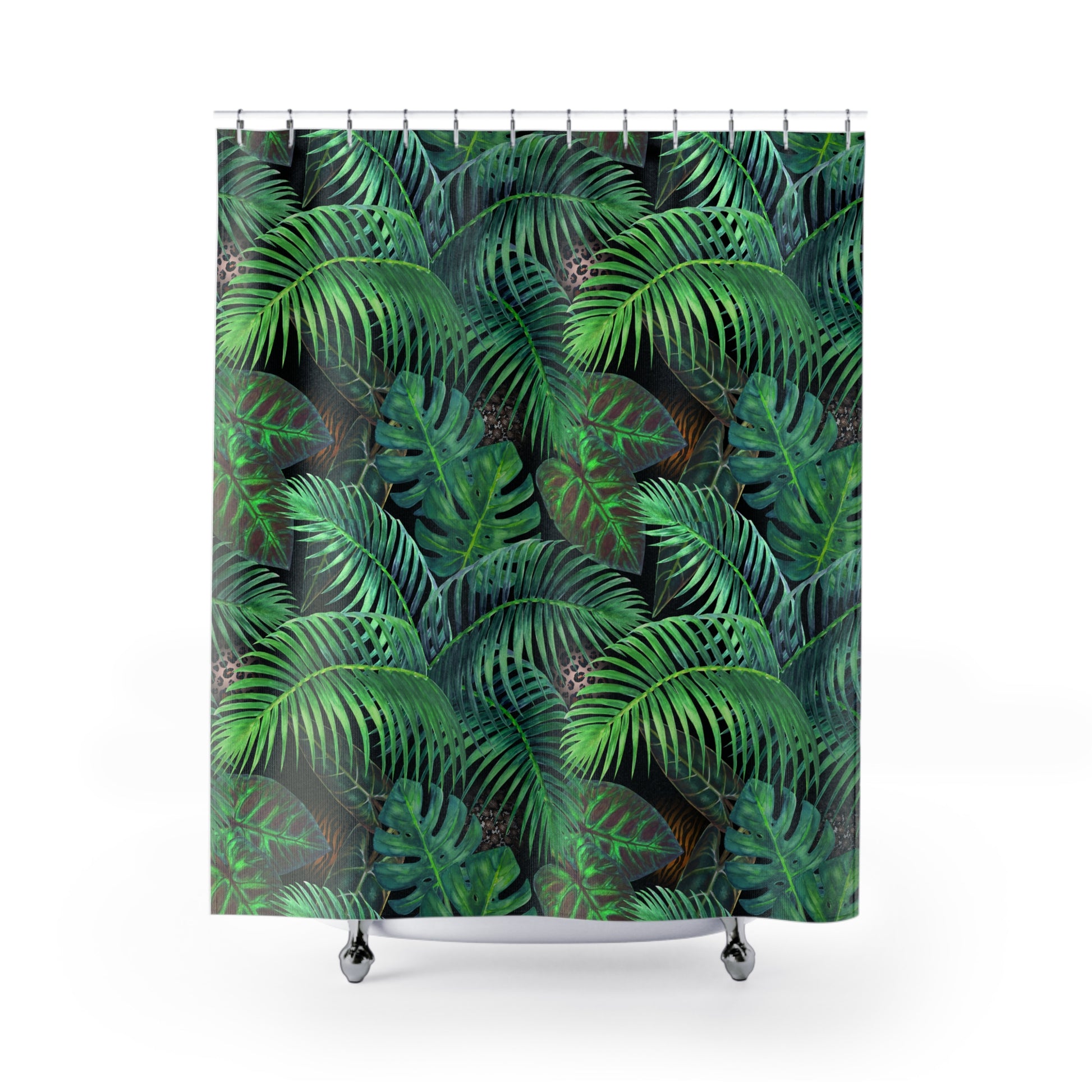 GRÜNE BLÄTTER DSCHUNGEL FARN • Hochwertiger, Schöner Duschvorhang 180x200 cm Weiss